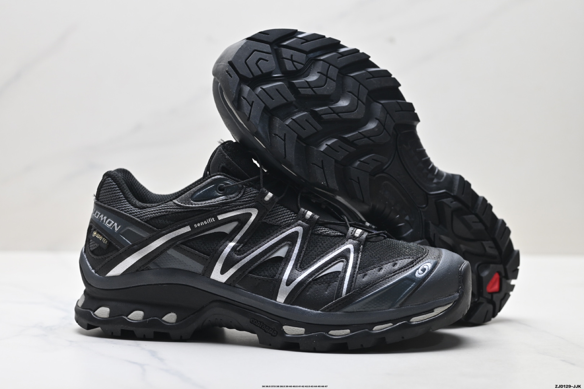 鞋面采用SENSIFIT贴合技术 全方位贴合包裹脚型 鞋跟部鞋底牵引设计 提供强大的抓地性能 更适应野外崎岖不平的道路 其3D ADVANCED CHASSIS底盘 材料轻量大化 钉齿设计更具稳定性 防护性 鞋底易磨损区运用CONTAGRIP高耐磨材料 应对城市硬质路面长距离跑考验