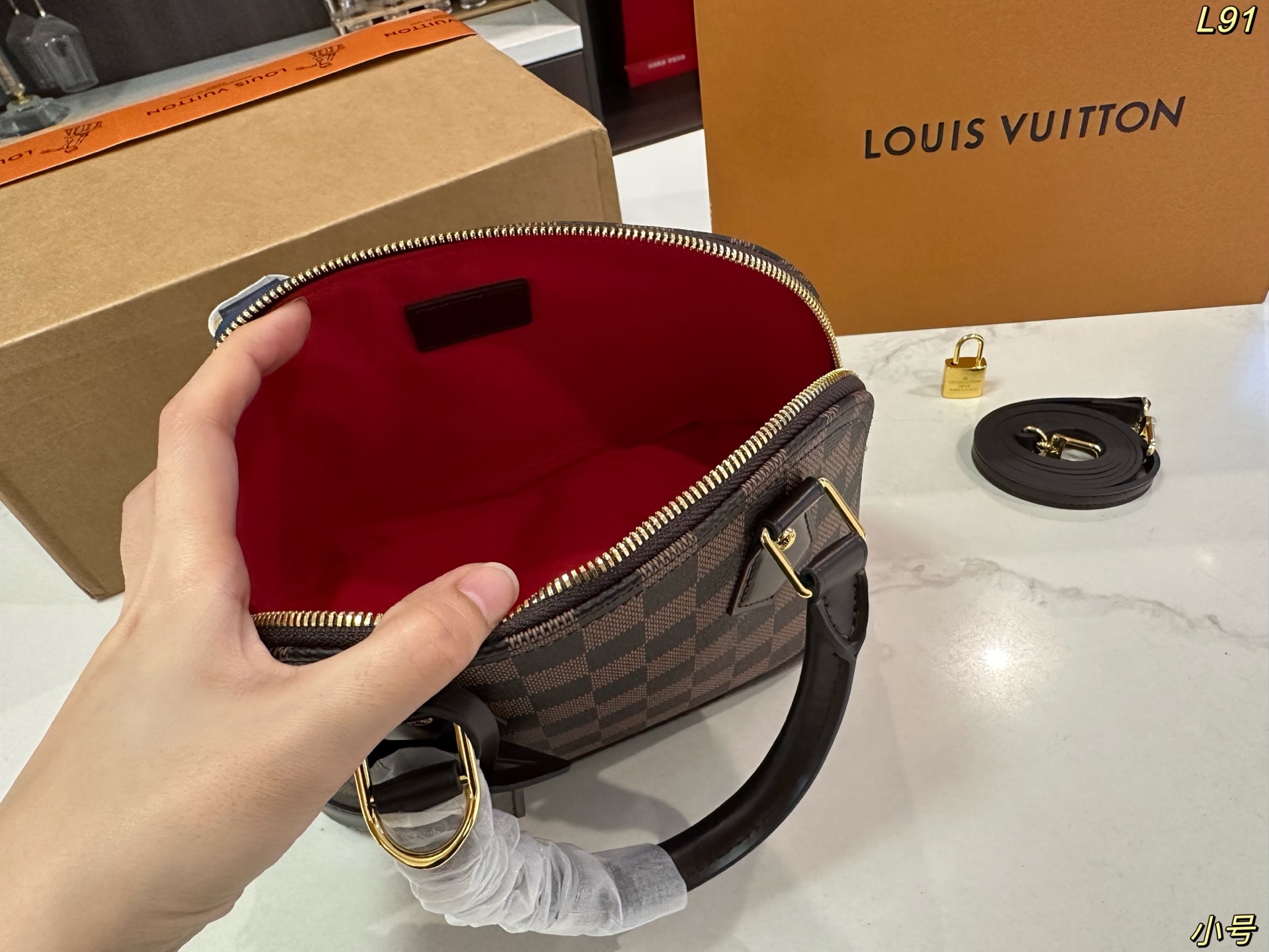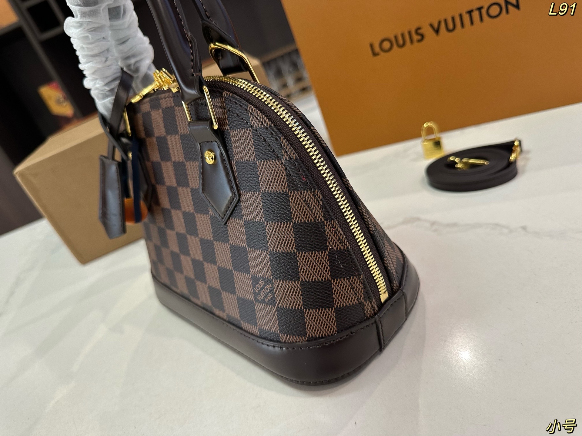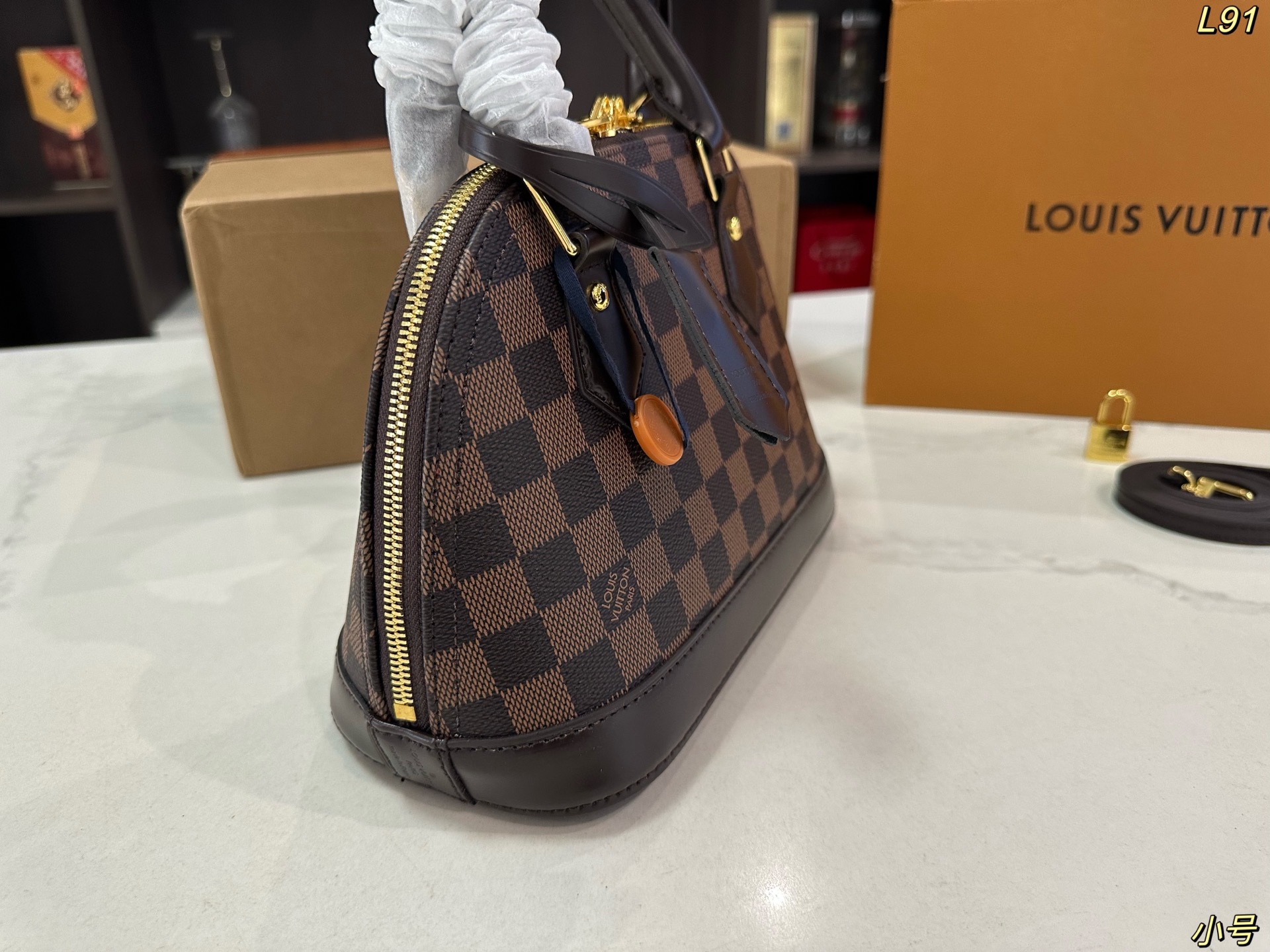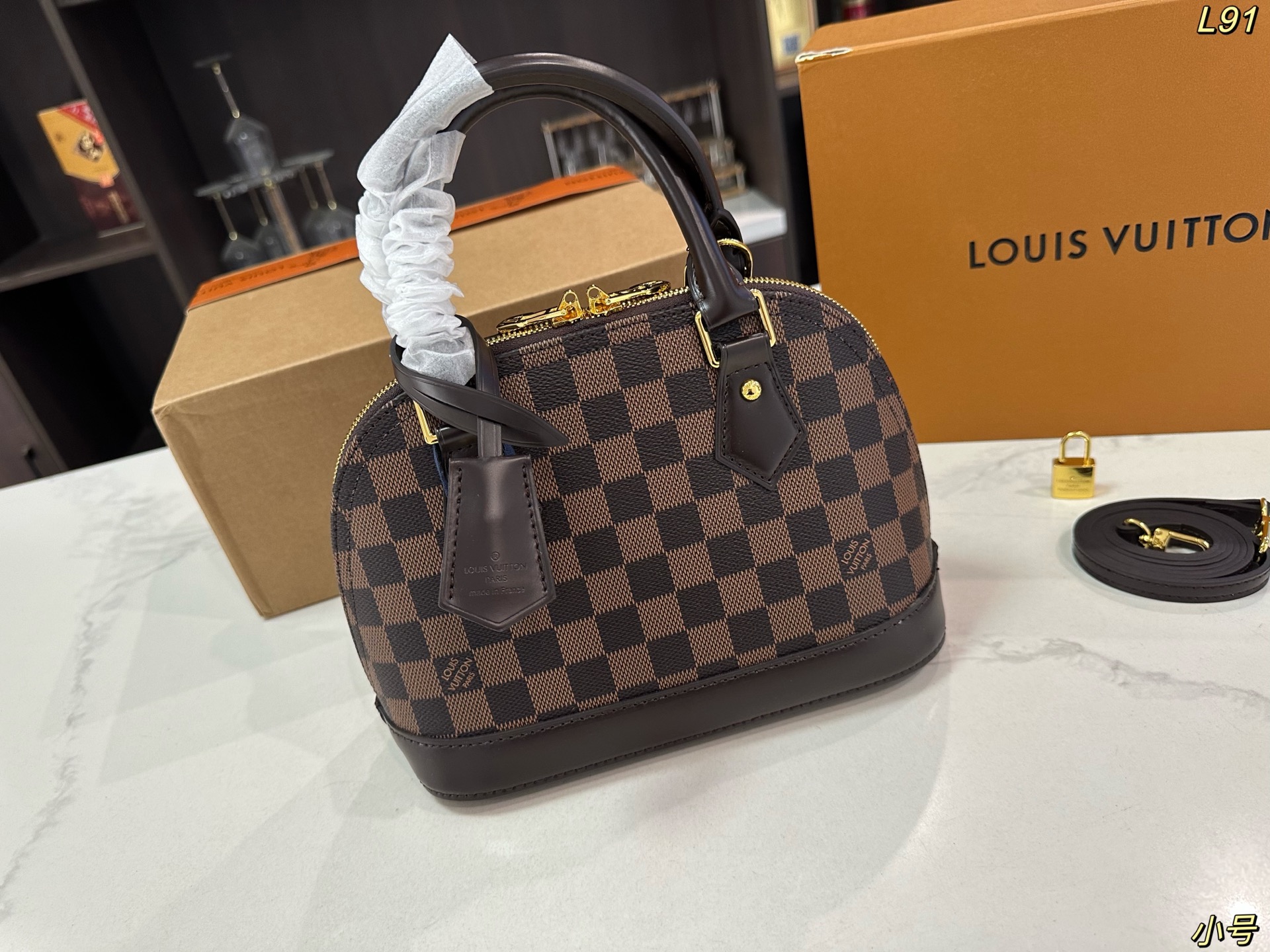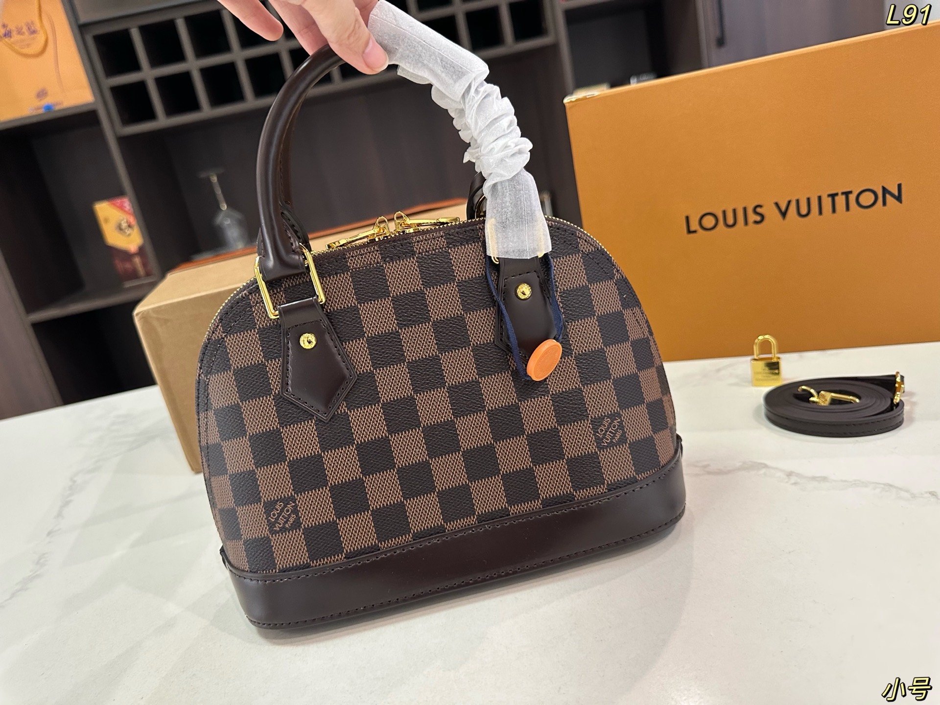 Lv lv alma bb mini贝壳包 原版高品质 包包这款Retiro 手袋以标志性的老花面料制成 经典永恒 优雅低调的外形设计和宽敞的包身更加入了实用性 使用说明 变色牛皮饰边 闪亮的纯钢金色五金配件 可调节肩带 配有树糕皮的肩垫 拉链闭合 超细纤维内衬