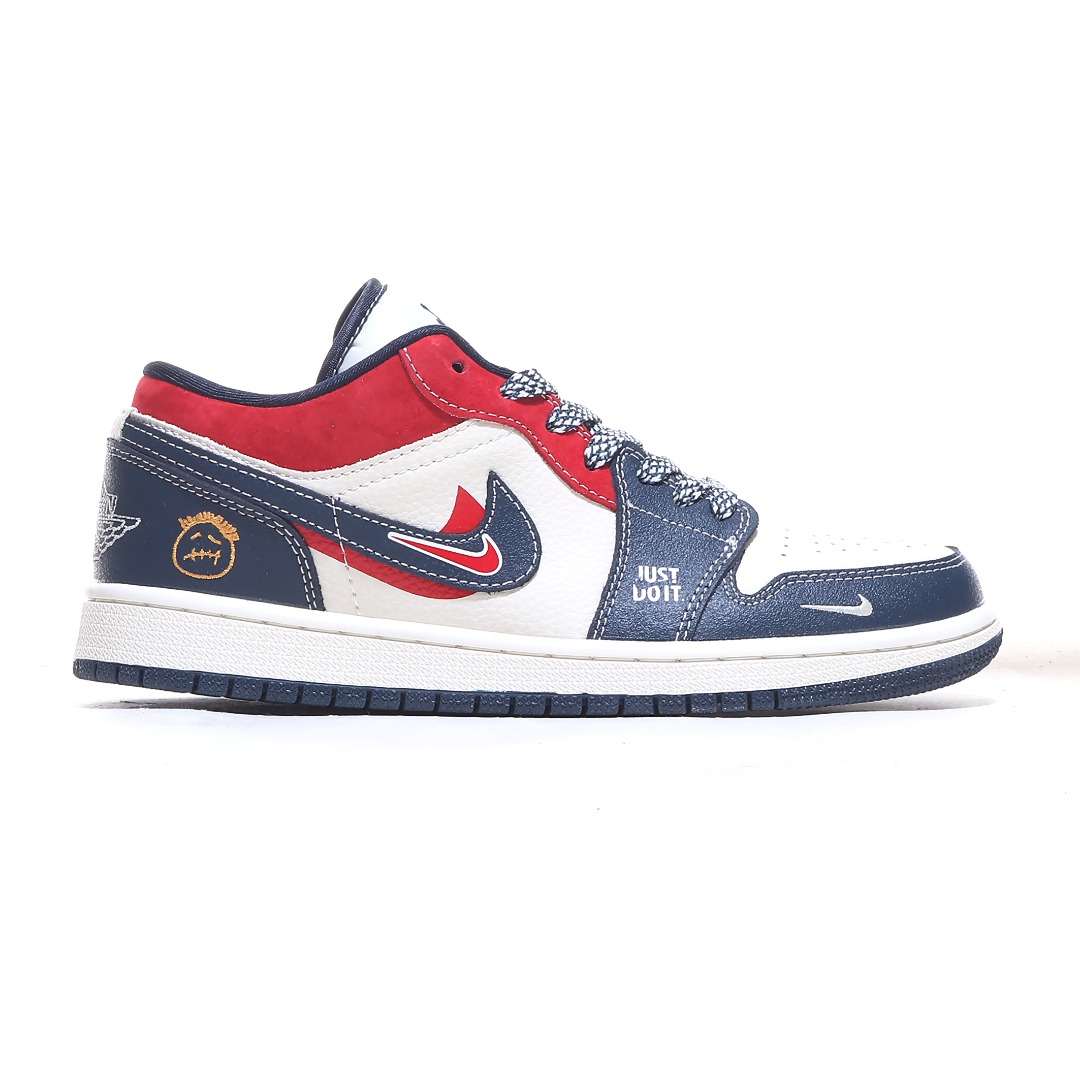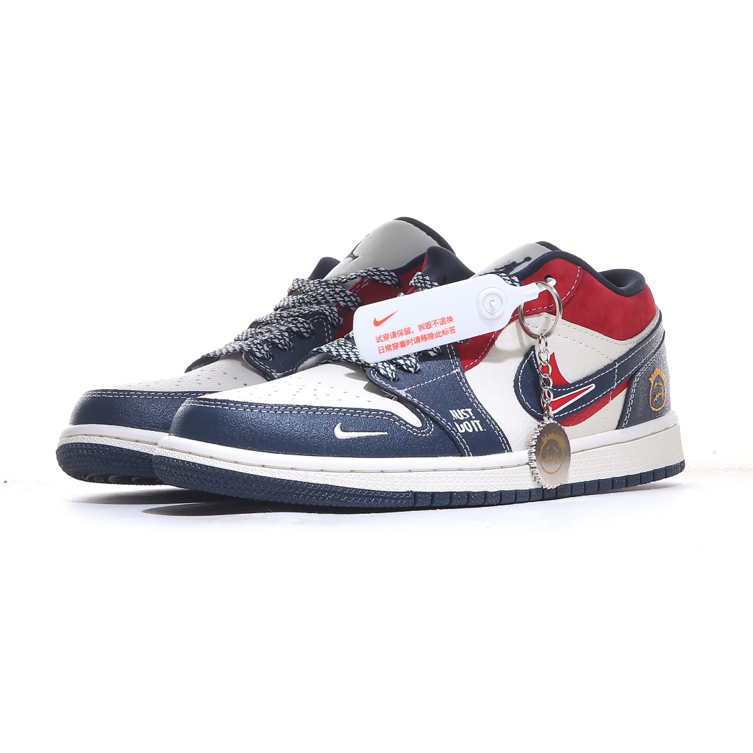 海外爆款限量发售 Nike Jordan Air Jordan 1 红蓝双勾 高端定制 低帮 复古 减震 防滑 耐磨 篮球鞋 定制鞋盒 大厂纯原品质出货 超高清洁度 皮料切割干净无任何毛边 细节完美
