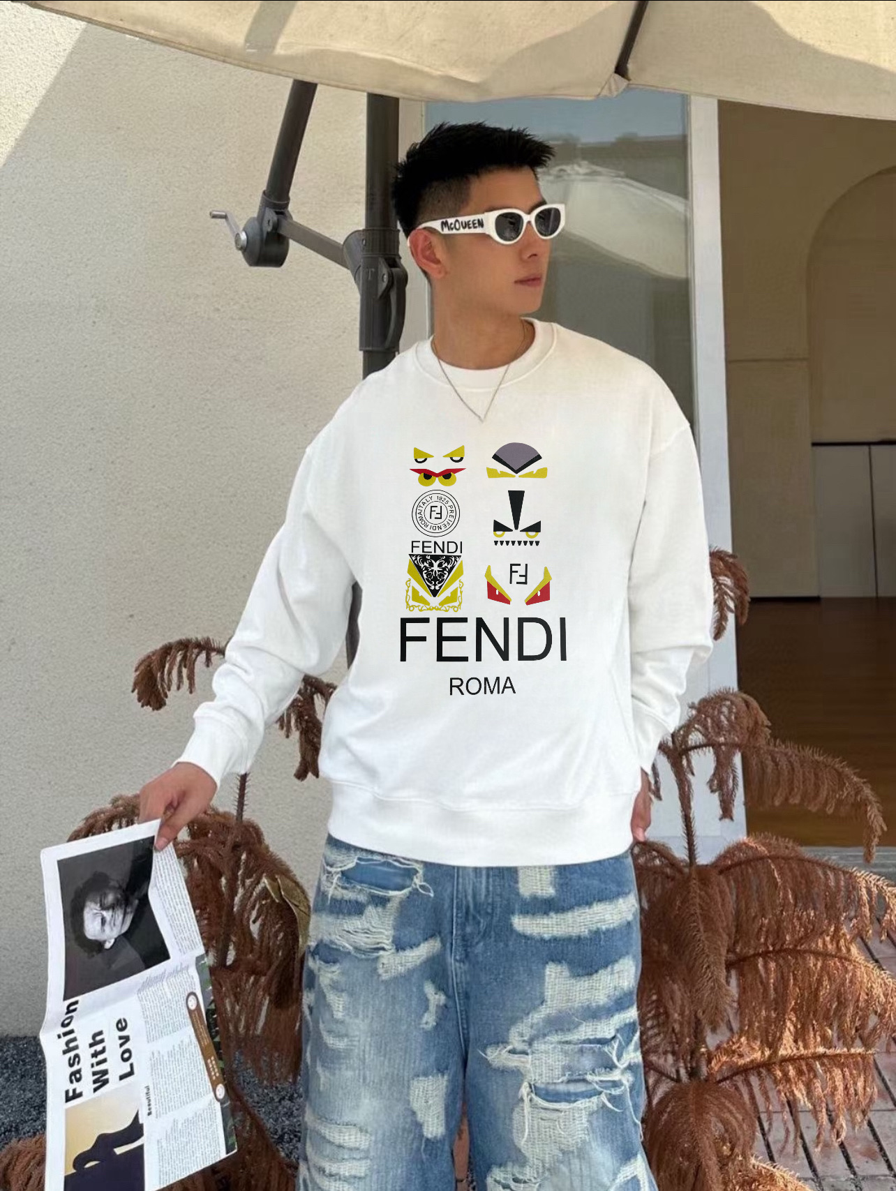 FENDI 芬迪 2025SS秋冬季欧洲专柜新款 顶级原单时尚休闲长袖印花T恤卫衣