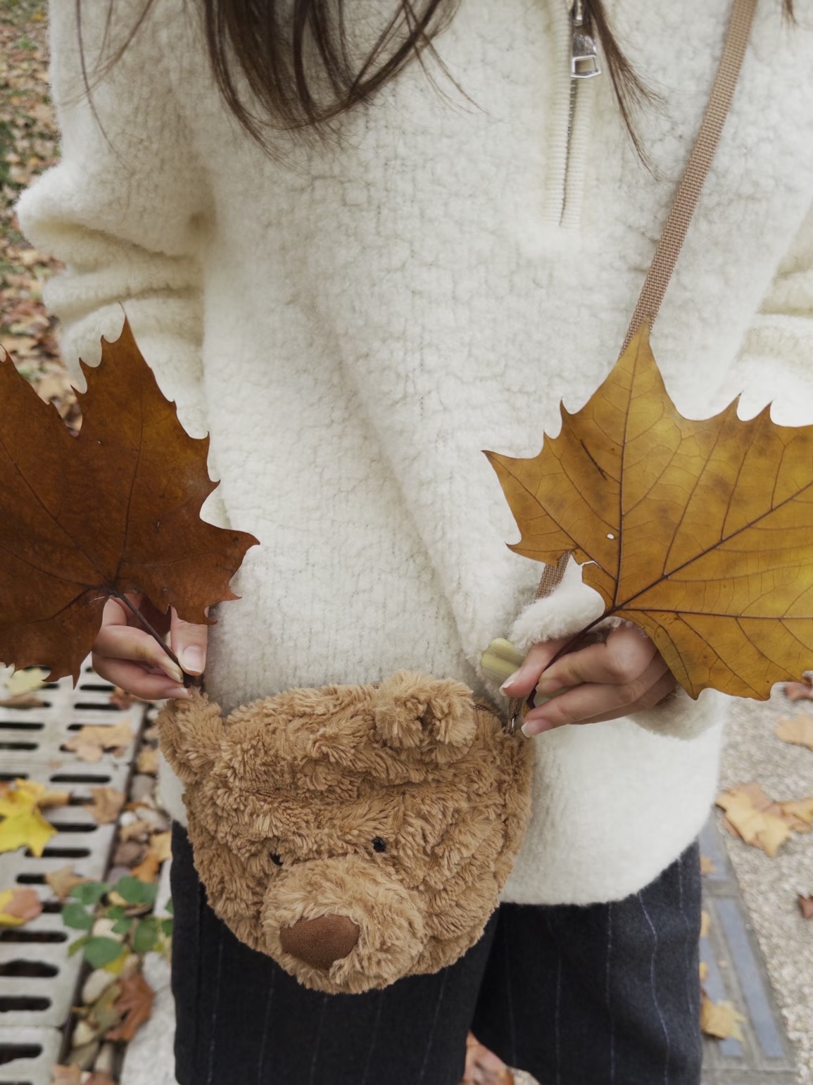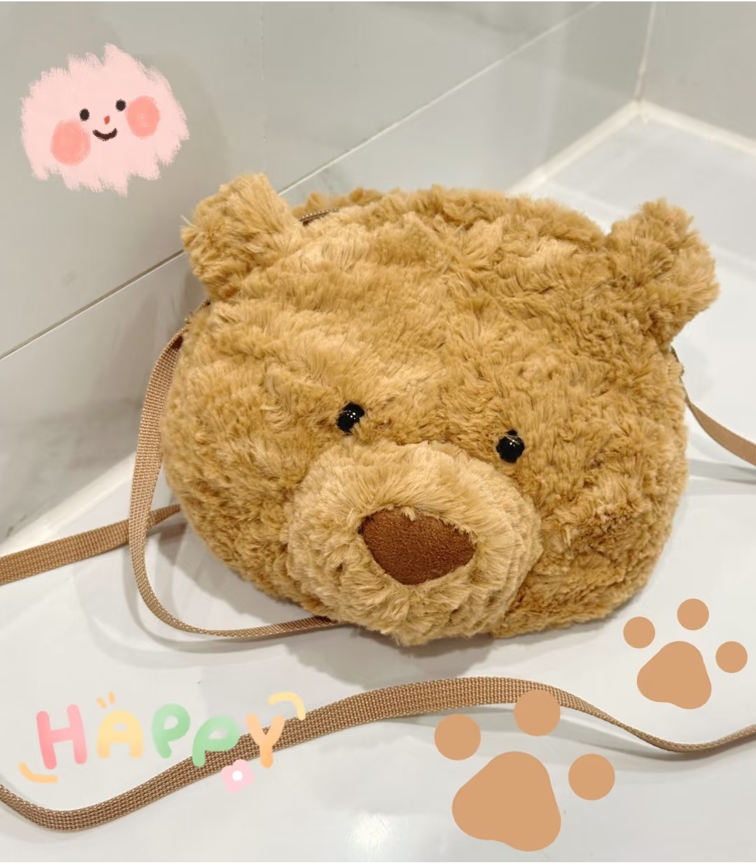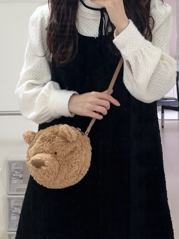 jc 露丝同款哦明星巴塞罗那熊形象 呆萌的样子深入人心 憨萌憨萌的 非常柔软 无愧胖嘟嘟熊的美名 真的是越看喜越欢越摸越上瘾的铁憨憨 眼睛其实很大 就是毛毛 挡住了 有需要的妹纸可以自行修剪一下哈 size 宽18cm 高16cm 肩带可自行打结调配长度