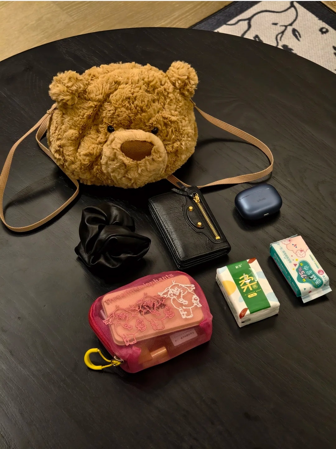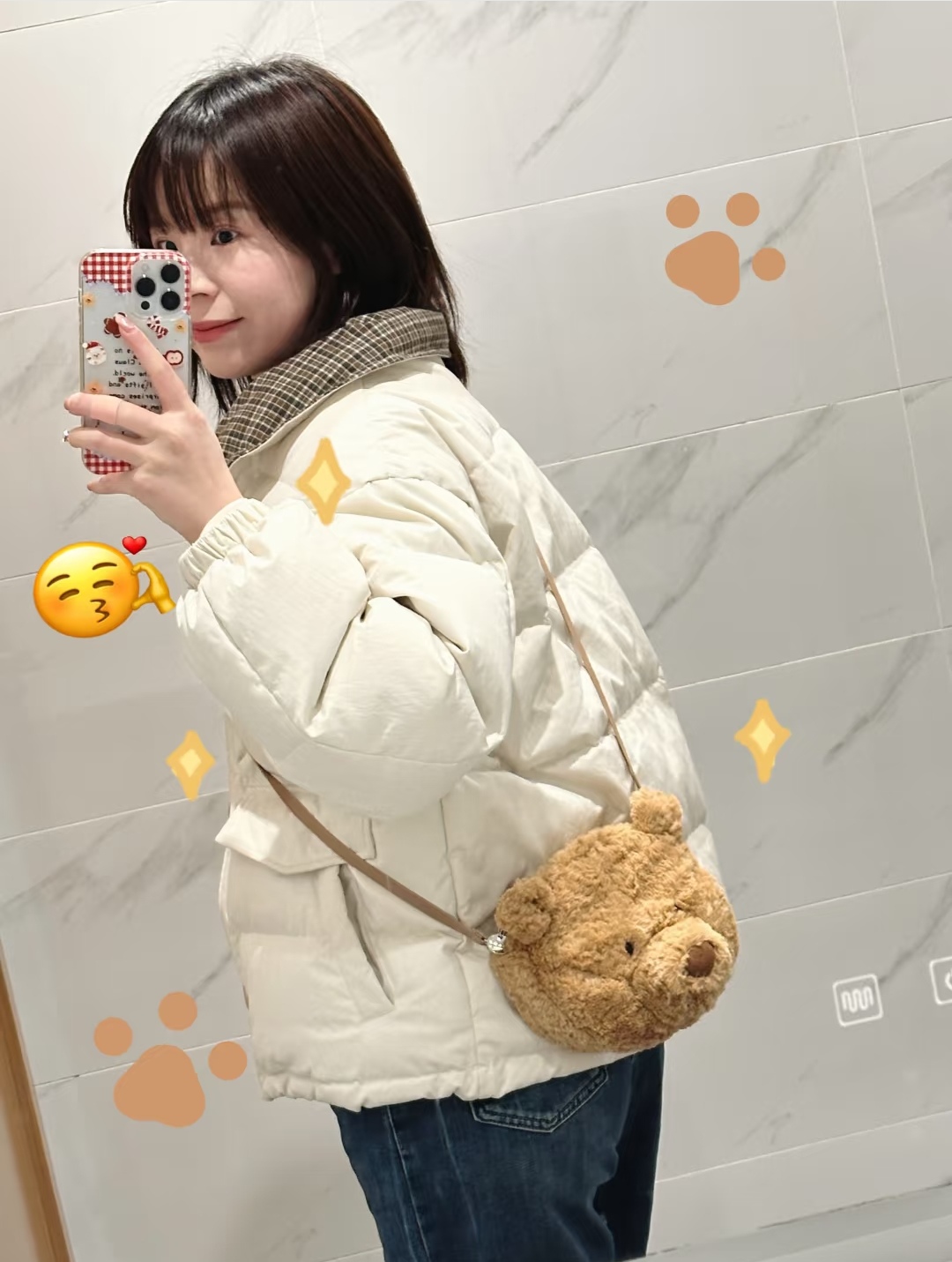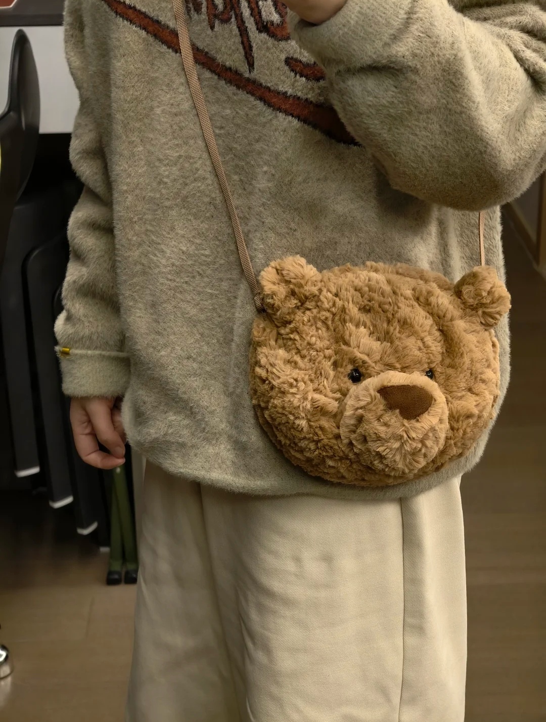 jc 露丝同款哦明星巴塞罗那熊形象 呆萌的样子深入人心 憨萌憨萌的 非常柔软 无愧胖嘟嘟熊的美名 真的是越看喜越欢越摸越上瘾的铁憨憨 眼睛其实很大 就是毛毛 挡住了 有需要的妹纸可以自行修剪一下哈 size 宽18cm 高16cm 肩带可自行打结调配长度