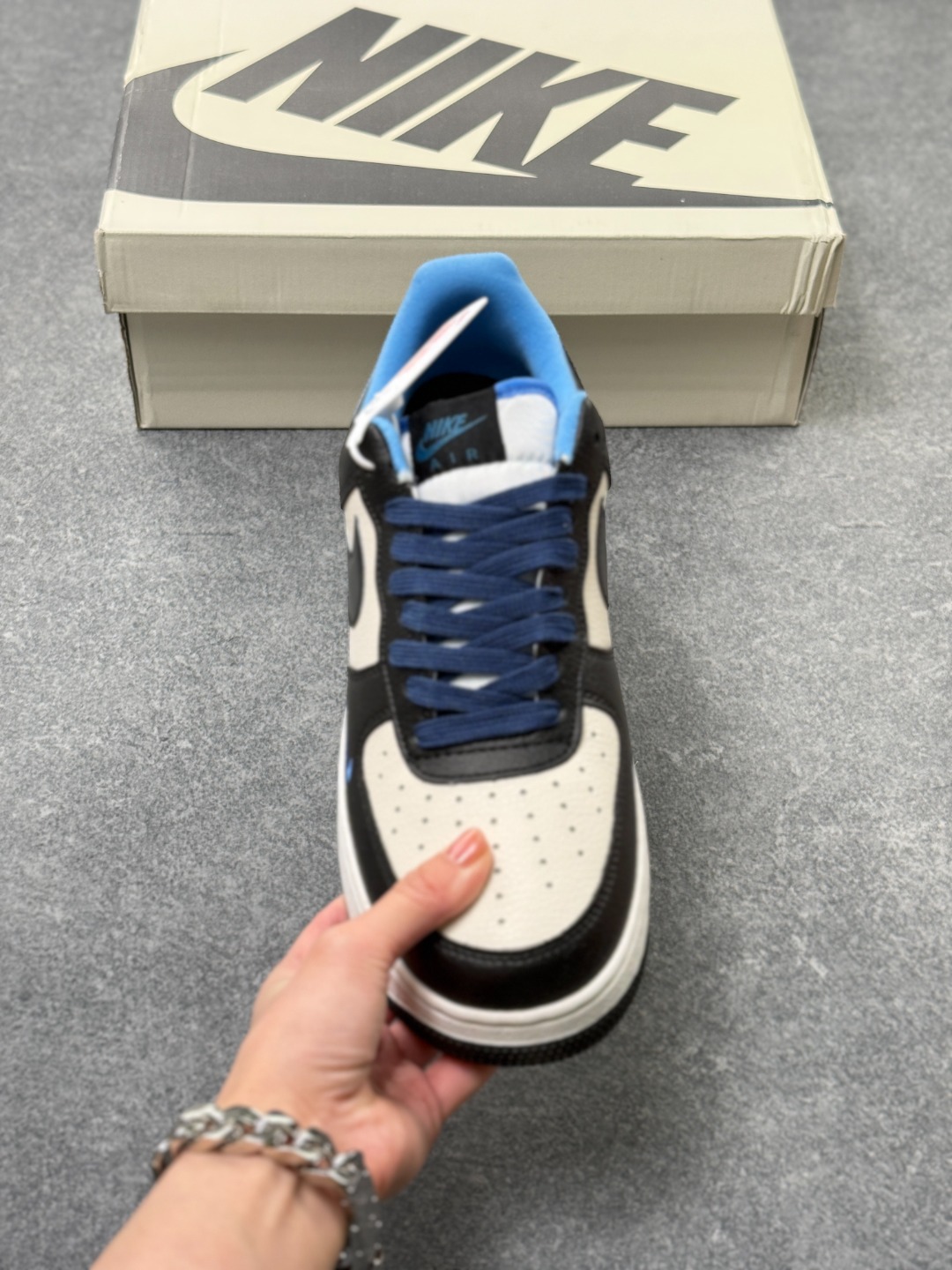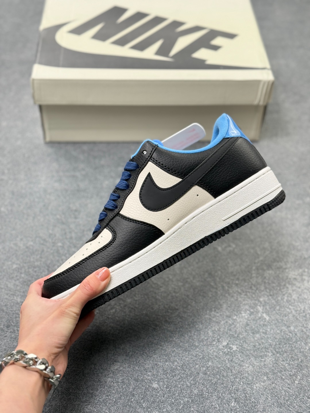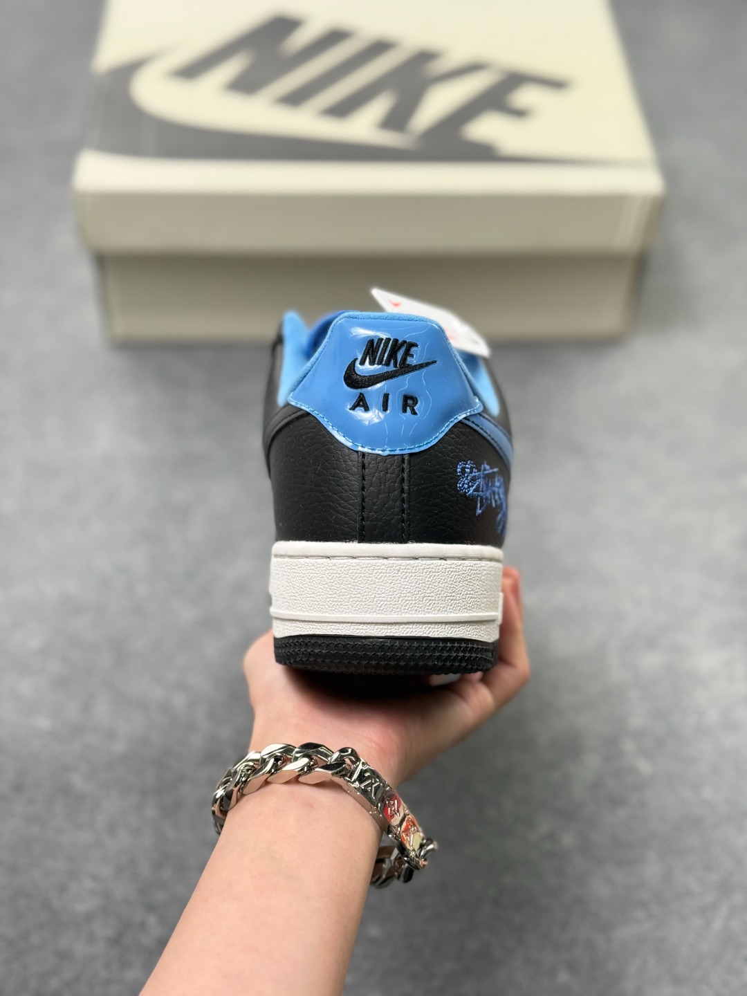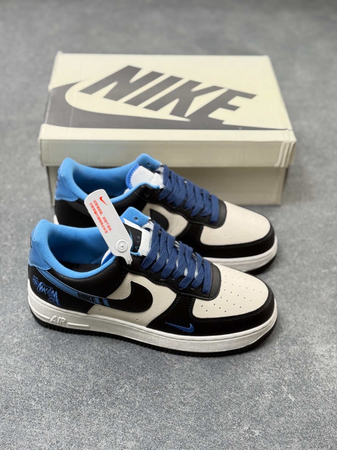 海外爆款限量发售 公司级Nike Air Force 1 07 Low 斯图西联名 NIKE白黑蓝 空军一号 高端定制 低帮 运动鞋 休闲鞋 折边针车 工艺难度大 原楦头原纸板 原装鞋盒 定制五金配件 内置全掌气垫 原厂鞋底