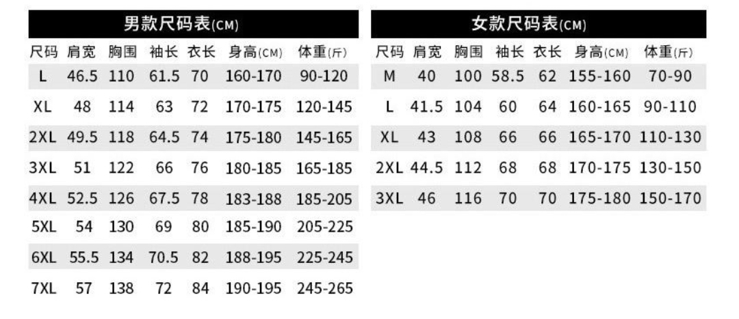 尺码 M 7XL