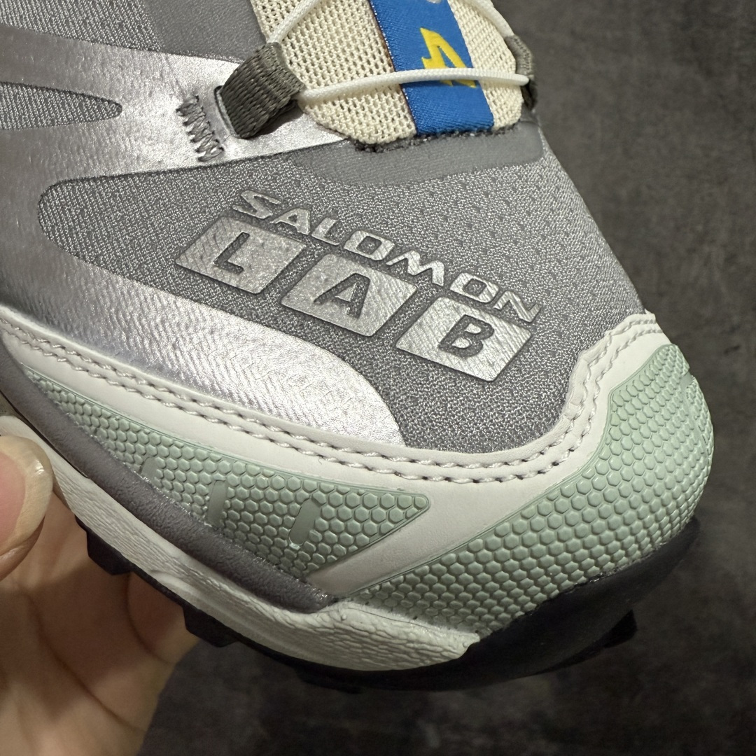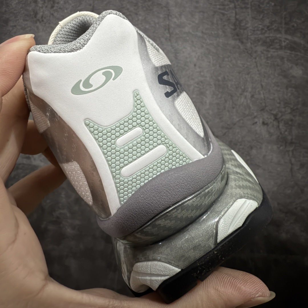 鞋舌处附有迷你网眼袋收纳鞋绳以及下方的多色 Logo 标签 接着搭载奶油色 ACS 技术中底以及金色 TPU 塑料部件提升鞋款耐用性 中底与鞋面之间饰有海蓝色条状细节有效增添鞋款层次 最后应用黑色 Contragrip Chevron 外底完成鞋款设计 这次配色颇为高调 两款配色均以绚丽的渐变设计呈现 一款以粉紫渐变主打 另一款以黄绿渐变呈现 视觉效果相当吸睛 鞋面的使用玻璃纤维覆盖物加固 并通过细绳扣系带系统进行锁定 Salomon 的品牌logo 出现在脚后跟和前掌部位 中底虽然偏薄 但非常耐用 与模压塑料ACS 框架以及致密AC2 Muscle 鞋底单元结合 能够提供出色的支撑力和缓冲性