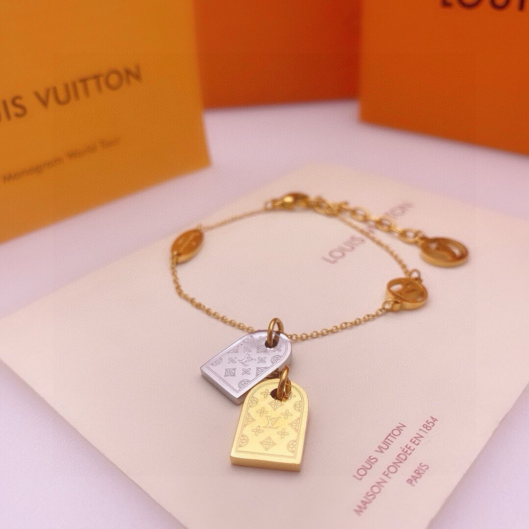 70227072 - Lv路易威登小双排金银双牌手链 专柜1 1专柜一致材质代购品 429314
