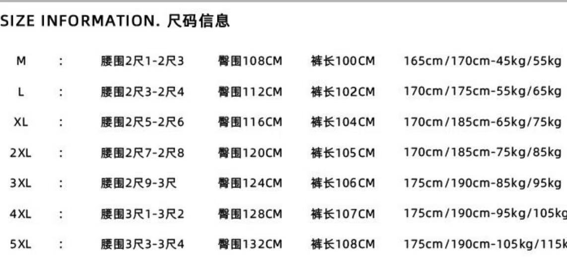 尺码 M 5XL