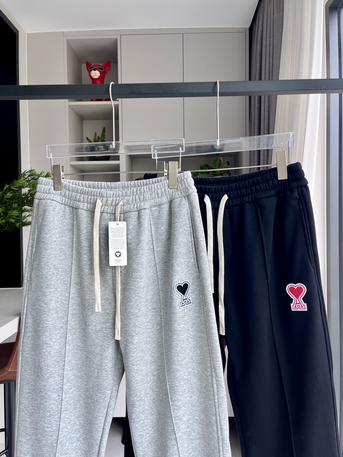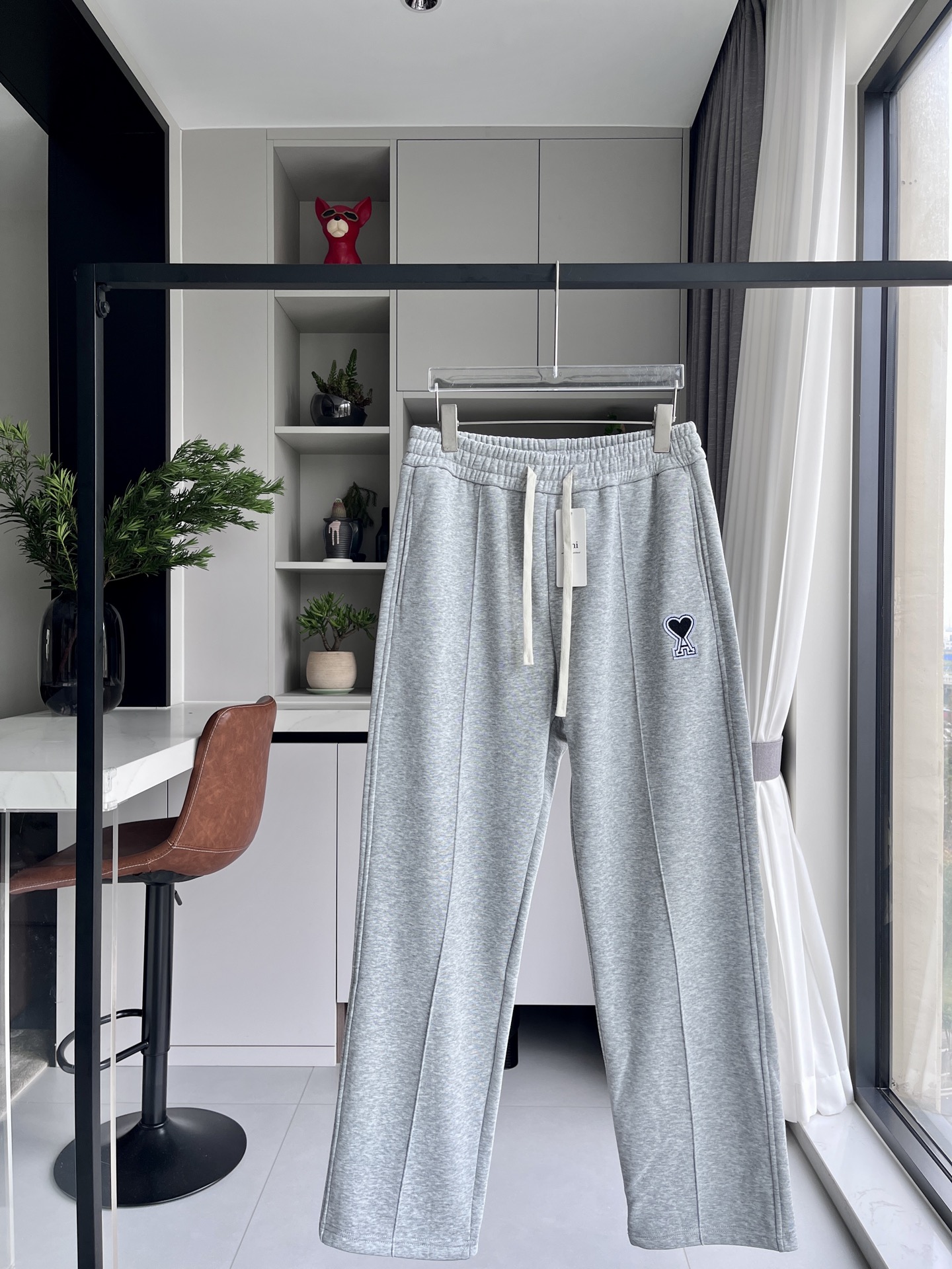 ami刺绣休闲直筒裤卫裤 超好穿 松紧腰设计 搭配T恤卫衣都妥妥的好穿 好看又百搭的裤子真的是爱了爱了 怎么搭配都不会踩雷的 衣橱里必备的一条直筒裤卫裤 男女同款情侣可搭