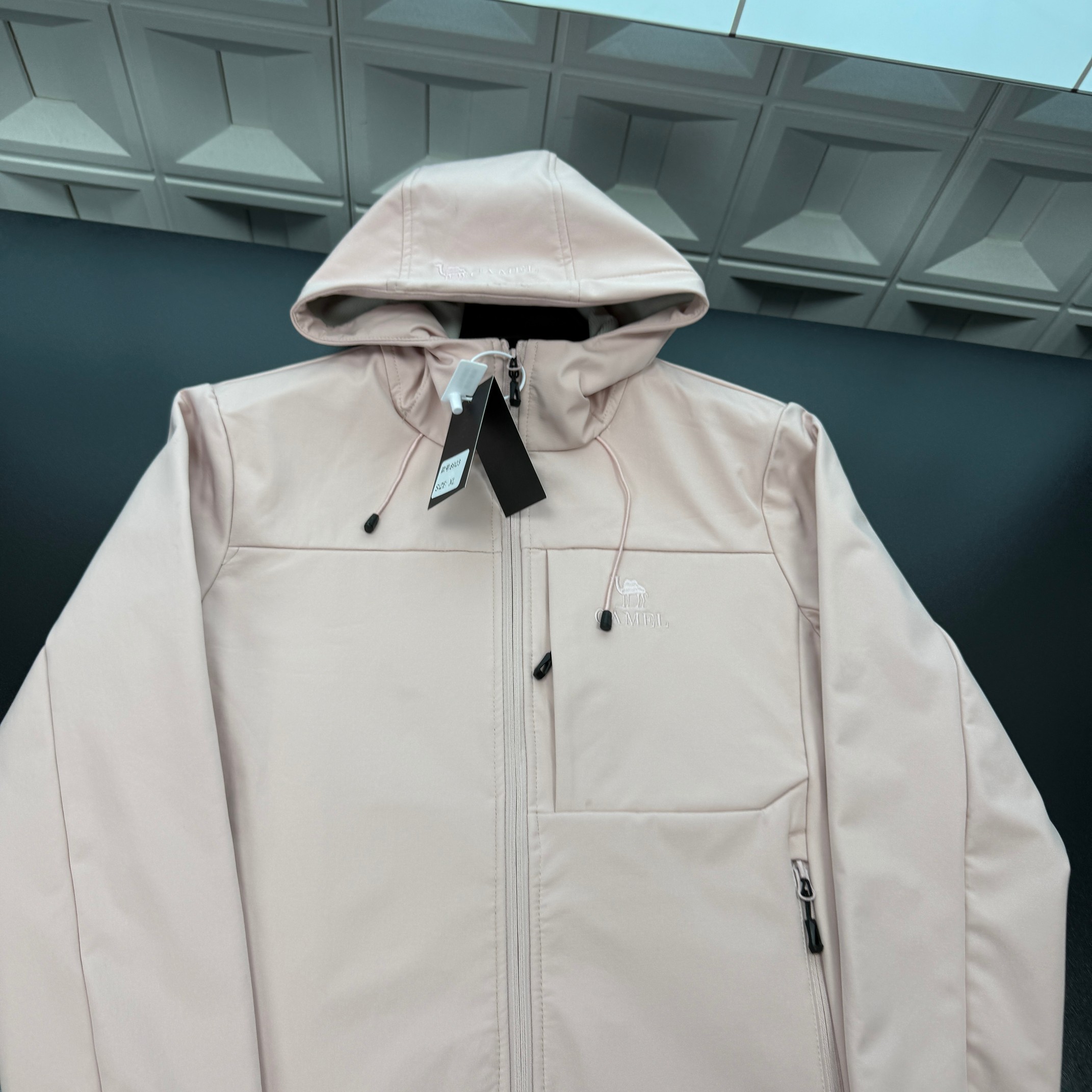 春季新款上新爆炸输出骆驼连帽冲锋衣外套 胸前刺绣骆驼图案 侧边小口袋拉链 纯色机能软壳冲锋衣 三标齐全官网一致 放大看细节原相机实物拍摄 颜色 粉色 尺码 L 4xl L 80 105斤 XL 105 120斤 2XL 120 140斤 3XL 140 160斤 4XL 160 180斤