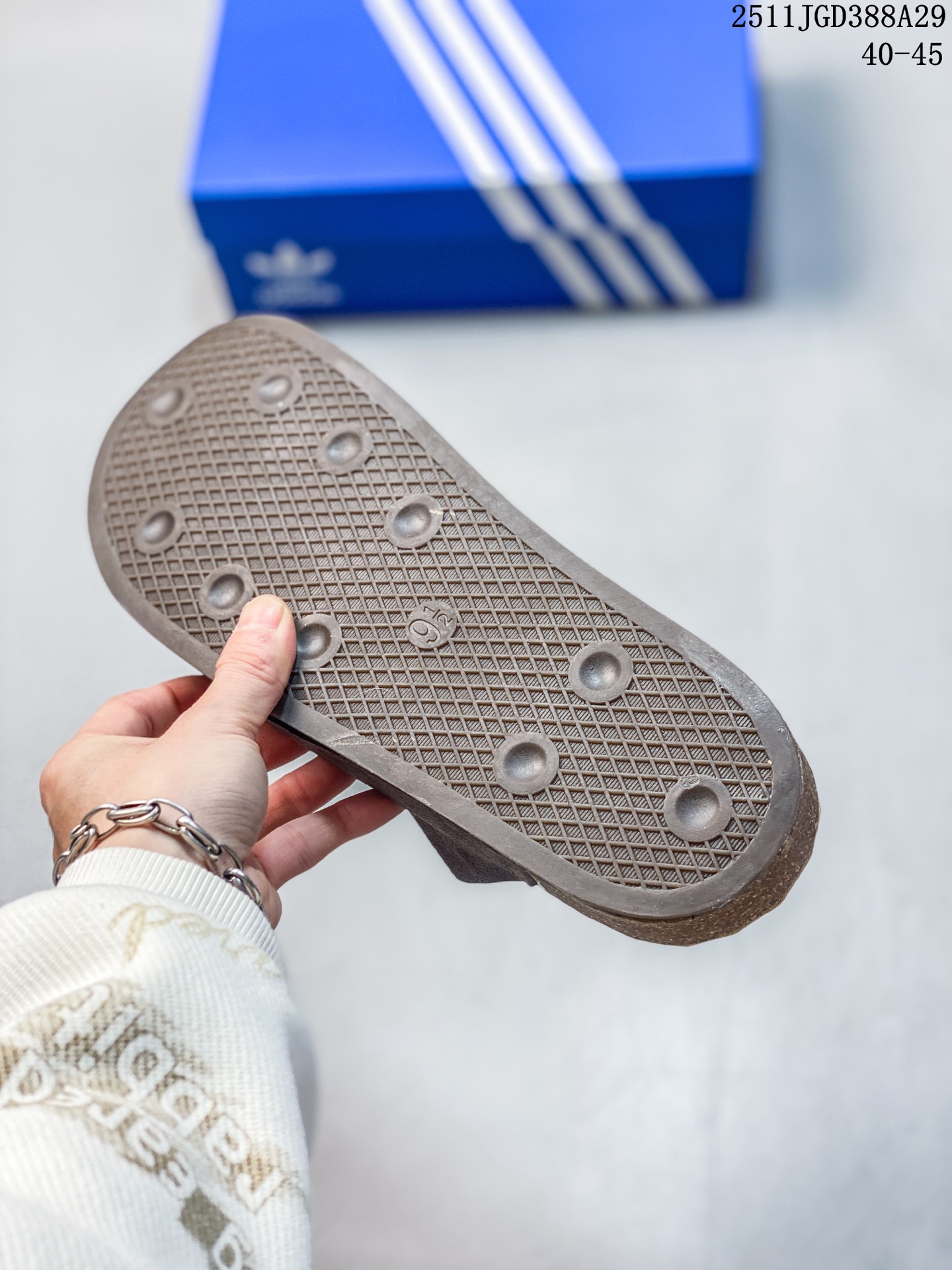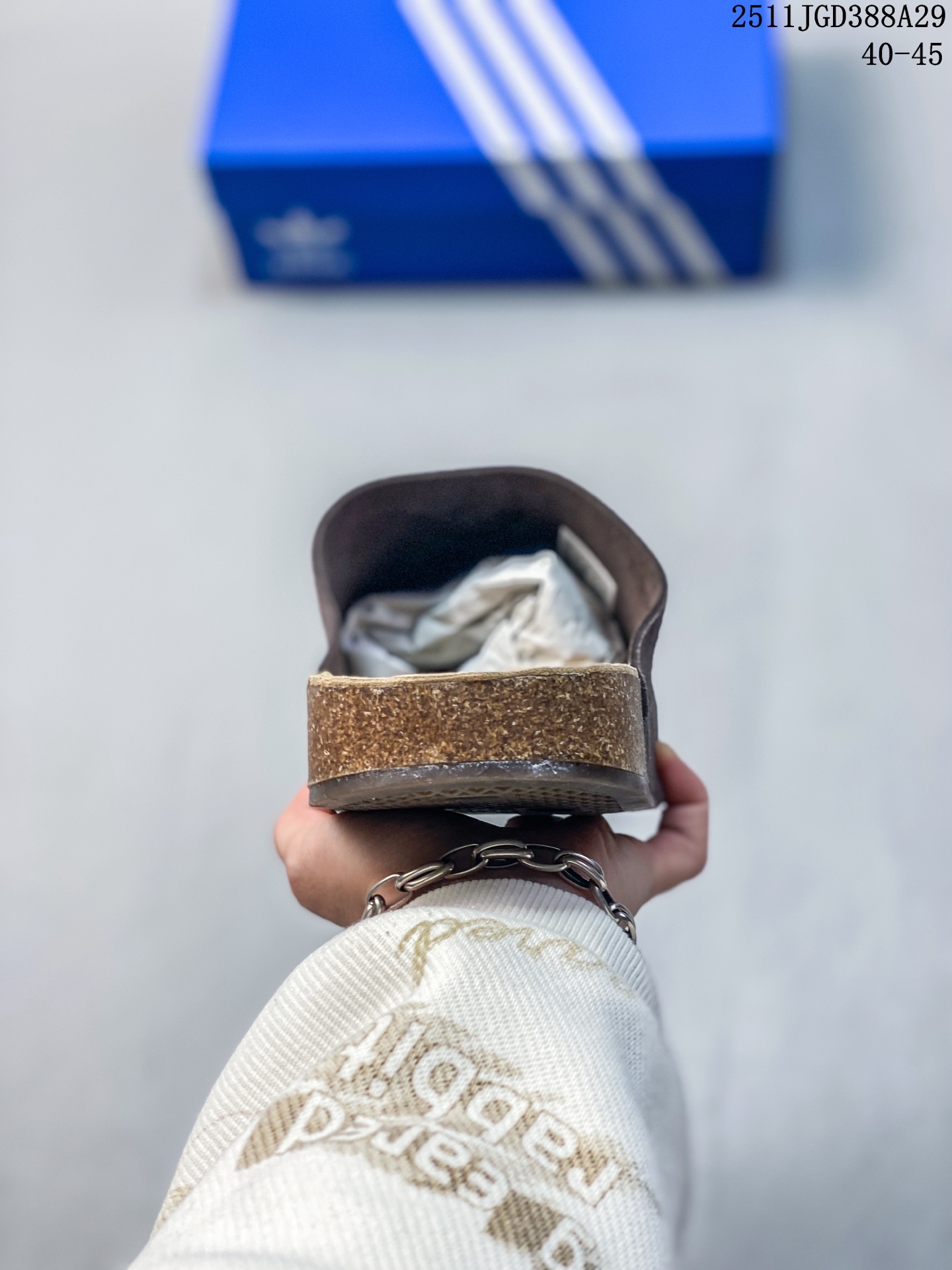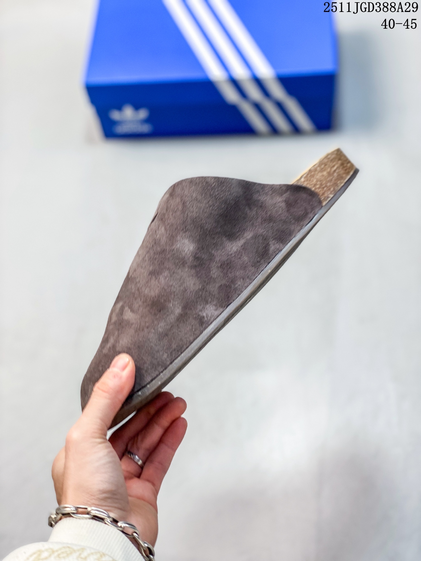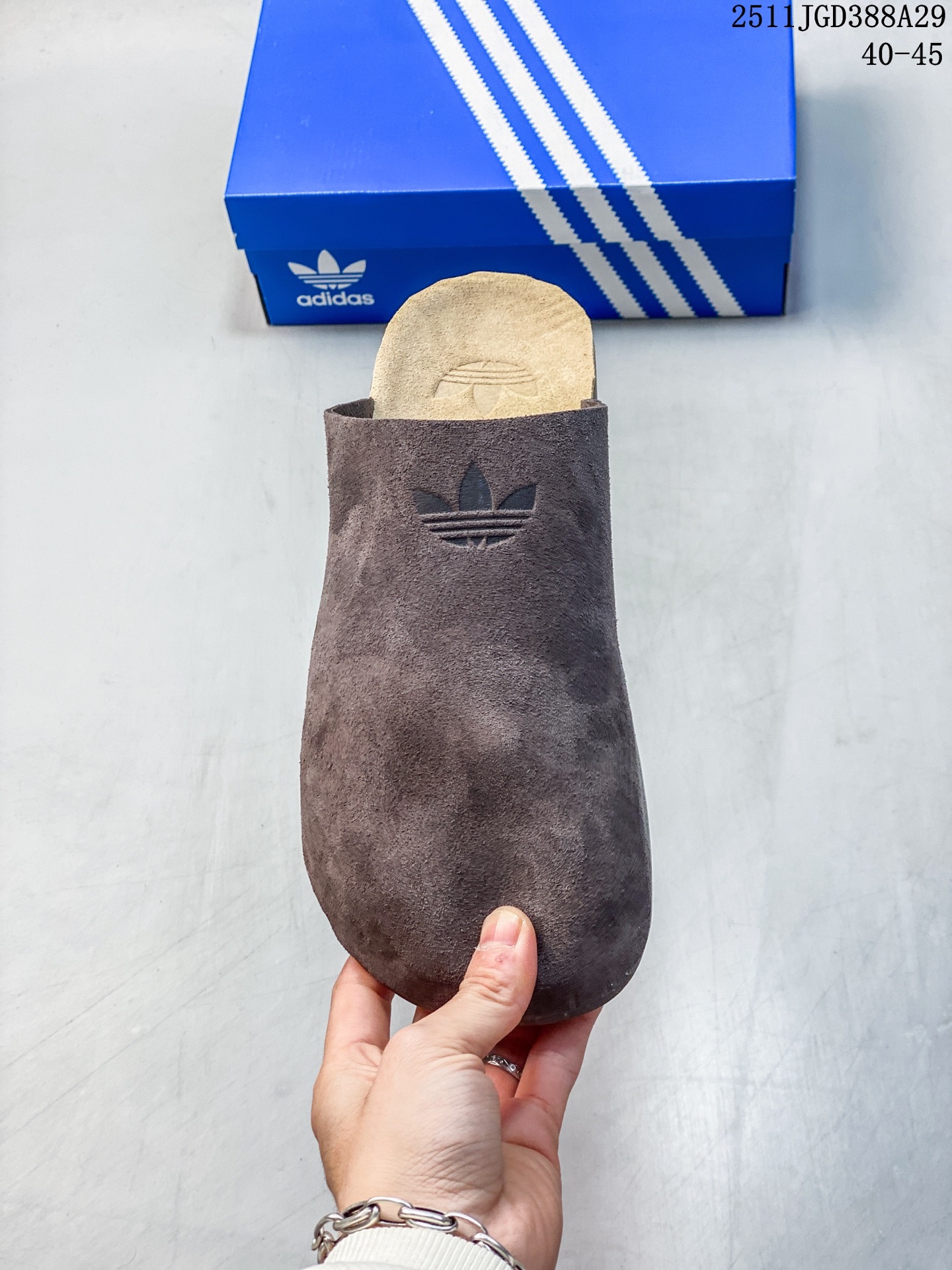 新品 阿迪达斯 adidasADIMULE舒适休闲拖鞋 穆勒鞋男女新款阿迪达斯官方三叶草 adidas Originals Adimule 拖鞋 复古舒适 百搭之选 包头拖鞋 它是时尚与舒适的结晶 让我一上脚就爱上 这款 Adimule 拖鞋的棕色很有复古感 能轻松拿捏各种风格 它的设计基于经典木底鞋轮廓 圆润的包头造型搭配简约的鞋面线条 尽显优雅气质 翻毛皮材质的鞋面 手感柔软细腻 摸起来那叫一个舒服 轻松提升整体造型档次 无论是搭配休闲裤还是牛仔裤 都能轻松驾驭 软木鞋床是这款拖鞋的一大亮点 它能根据脚步形态塑造出贴合脚型的支撑 就像踩在云朵上一样 给予双脚全方位的承托 长时间穿着也不会累 内衬采用舒适材质 亲肤透气 让双脚在鞋内自由呼吸 即使在炎热的夏日 也能保持干爽 橡胶外底自带防滑条纹 抓地力强 不管是走在光滑的瓷砖还是湿滑的地面 都能稳稳当当