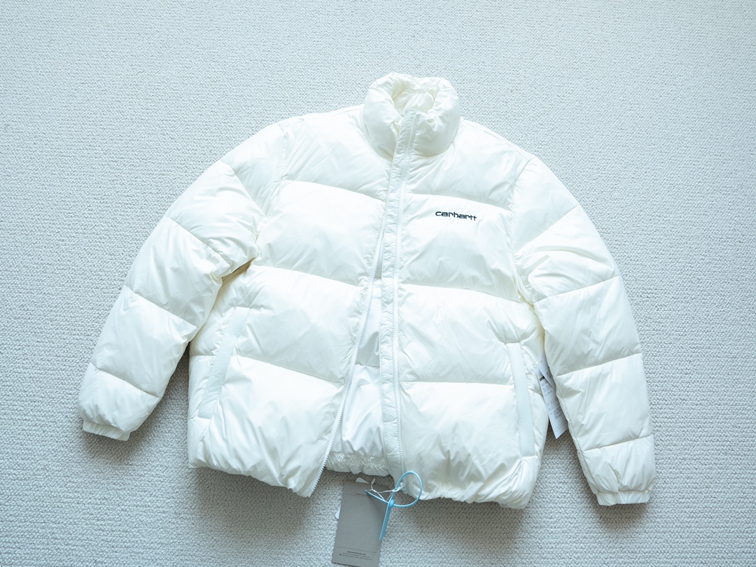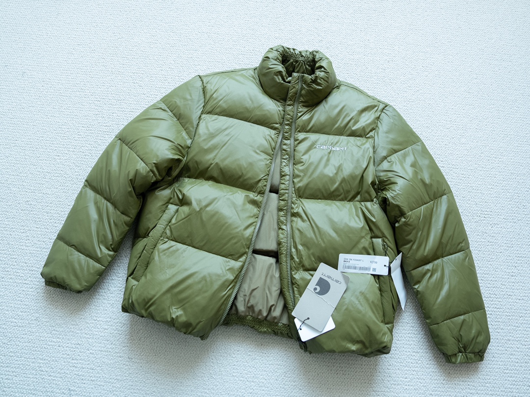 超级性价比单品 入手体验吧 内里填充80白鸭绒 不要怀疑就是羽绒 亮面非常好看 搭配也是极容易 品牌介绍 Carhartt Work In Progress WIP 虽然说是Carhartt的品牌支线 可成立于1989年的Carhartt WIP是一个独立的存在 瑞士企业 家Edwin Faeh以All American Concept之名将美国产品引进欧洲市场 经过精心改良 重塑剪裁 打造出更合时宜的设计 Carhartt的剪裁偏美版 很肥大 而Carhartt WIP在设计和剪裁上更合适我们亚洲人 十星品控 强推