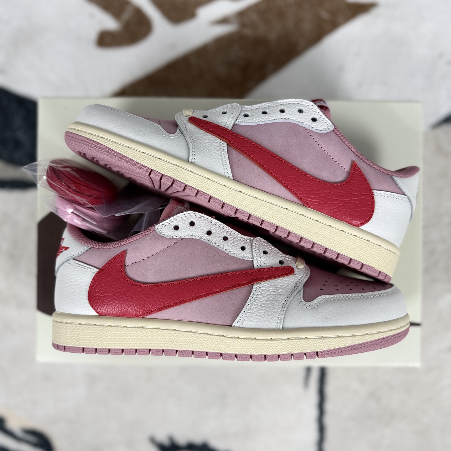 Travis Scott x Jordan Air Jordan 1 Low OG 倒钩 舒适百搭 低帮 复古篮球鞋 男女同款 粉白情人节