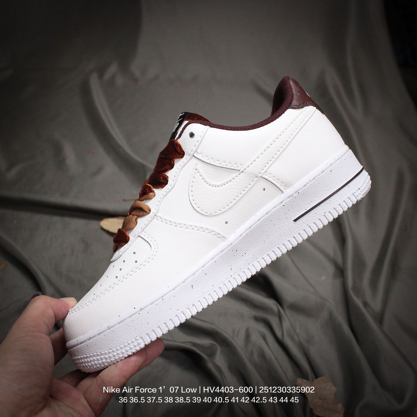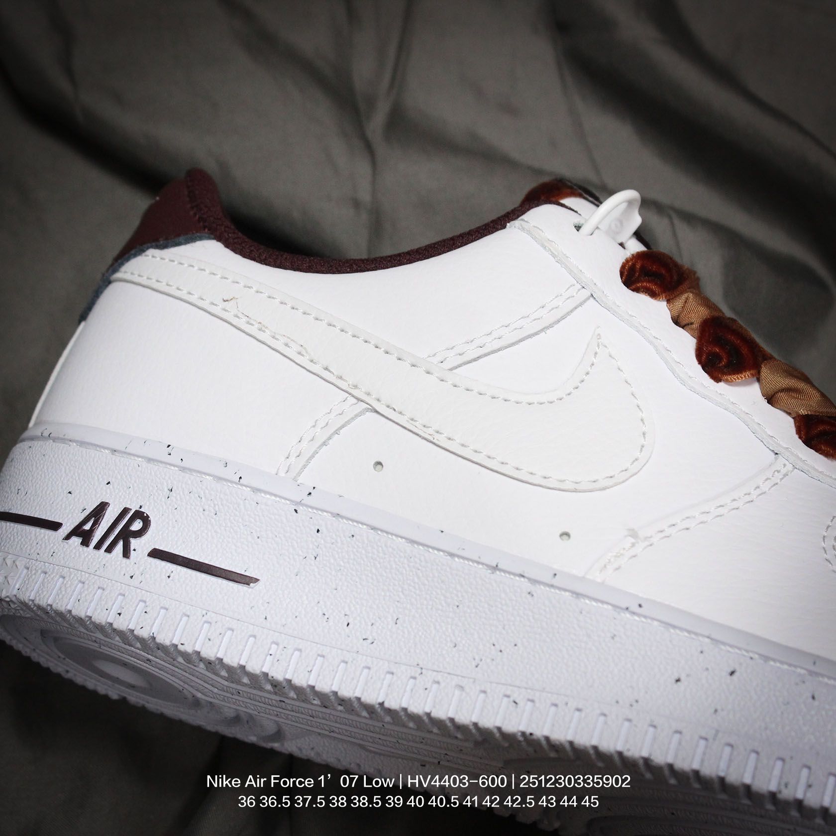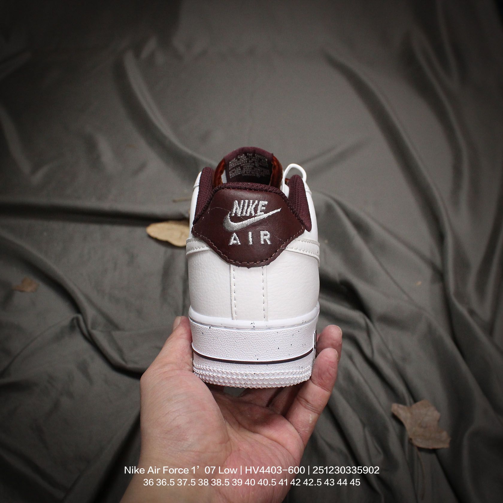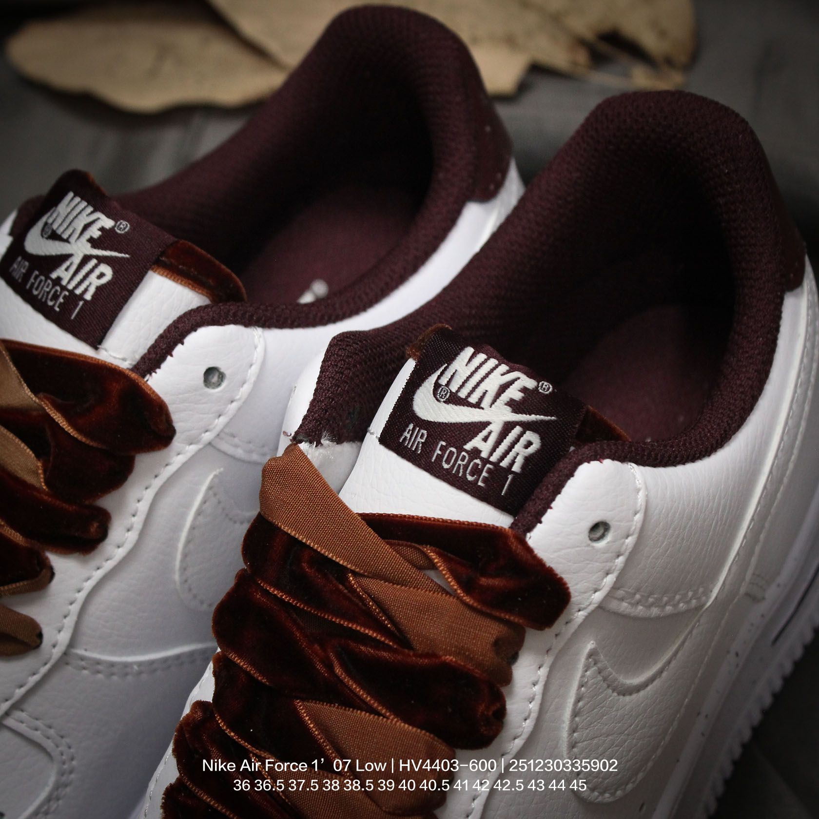 Nike 耐克 原楦原纸版数据开发版型 采用硬质牛剖皮革鞋面材质 内置全掌Air Sole气垫官方新色 耐克Nike Air Force 1 07 Low Next Nature White Wine red 空军一号经典低帮百搭休闲运动板鞋 皮革白酒红丝绒鞋带 HV4403 600