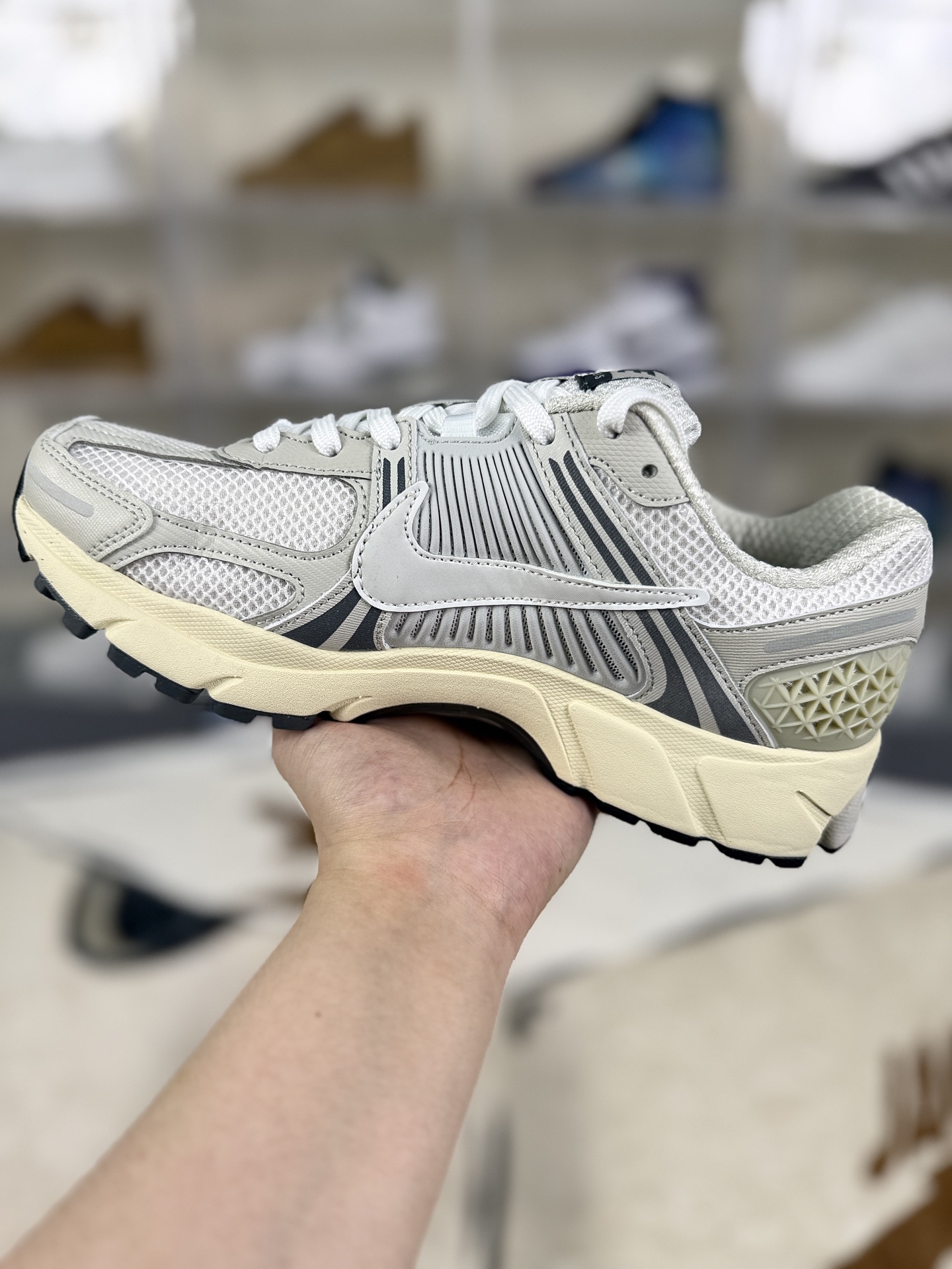 Nike Air Zoom Vomero 5是一款融合复古美学与现代科技的运动鞋 采用复古未来主义设计语言 鞋面由网眼布与合成材质拼接 结合皮革元素 营造层次感与精致感 后跟采用Zoom XReact泡棉 前掌搭载Air Zoom气垫 提供出色的缓震与回弹性能 实现快速离地 后跟中足有TPU贴片 侧边塑料鞋笼增强稳定性 外底橡胶贴片提升抓地力 独特鞋底轮廓 侧面Swoosh标志及塑料鞋笼设计 兼具时尚感与功能性 适合健身房或街头穿搭