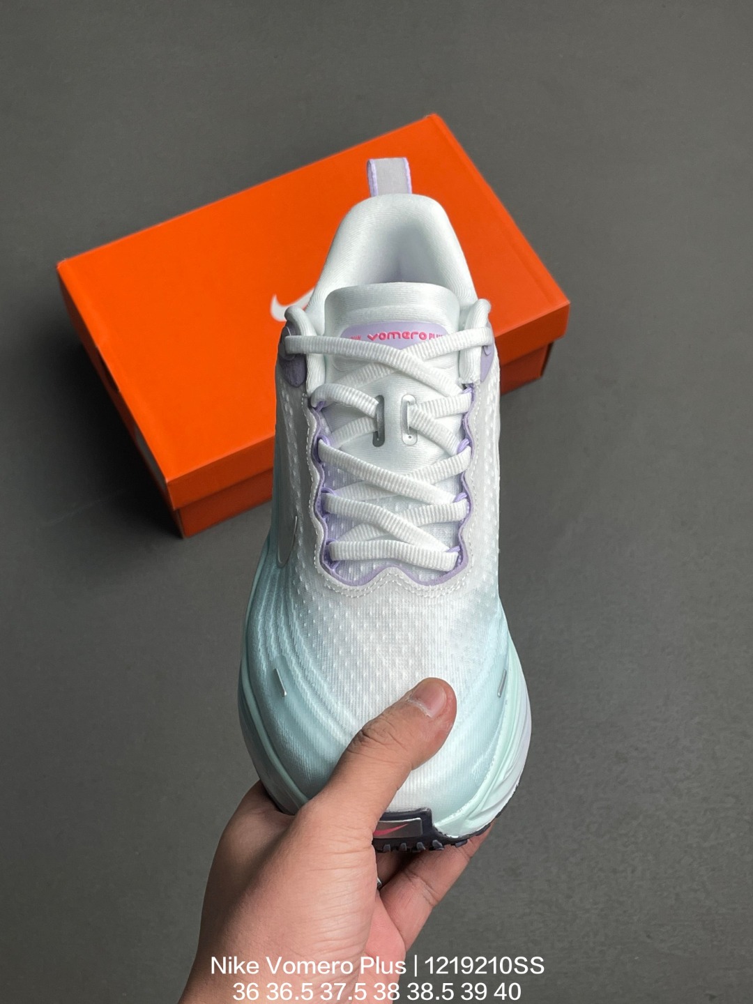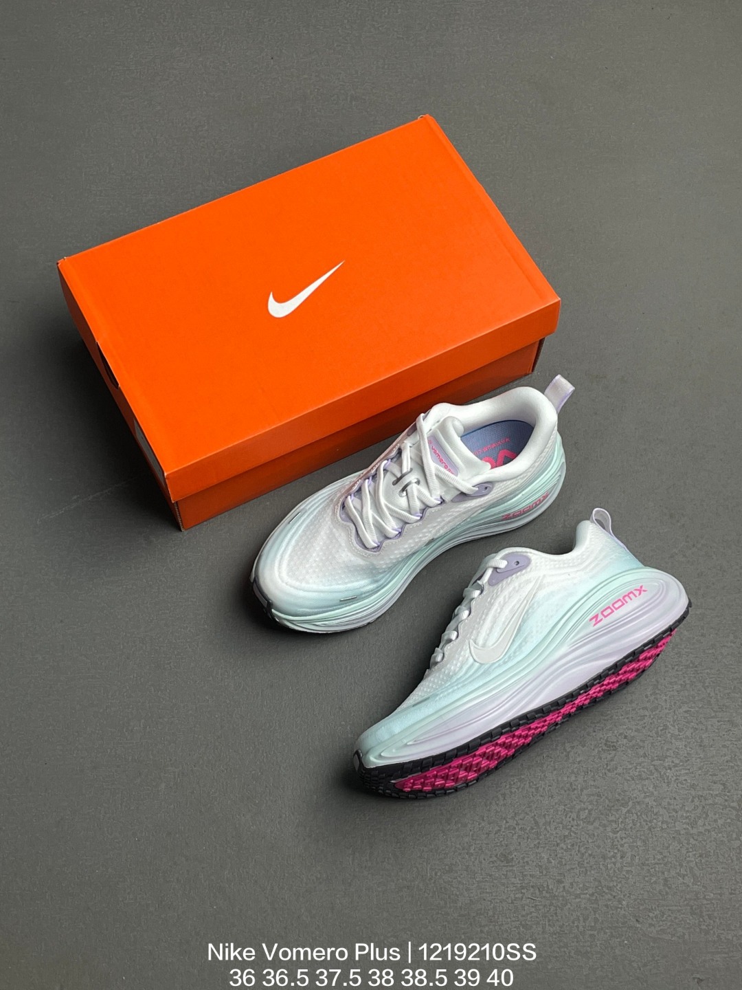 Nike 耐克 采用科技织法轻盈织物合成鞋面材质 ZoomX 泡绵中底 外置外置防滑耐磨橡胶底片造舒适迈步体验 助力日常畅跑 耐克Nike Vomero Plus Bright Mango 佛莫罗加强版系列低帮轻质厚底缓震公路透气休闲运动跑步鞋