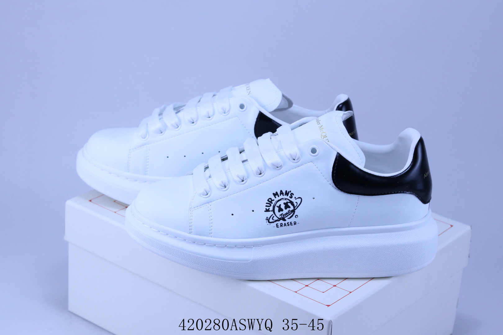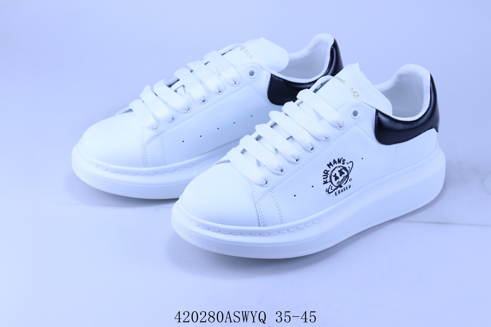AlexanderMcQueen 亚历山大 麦昆MCQ 情侣款运动小白鞋厚底增高闪尾光滑牛皮平底鞋休闲鞋 时尚男女板鞋潮运动鞋 涂鸦 420280ASWYQ 35 45