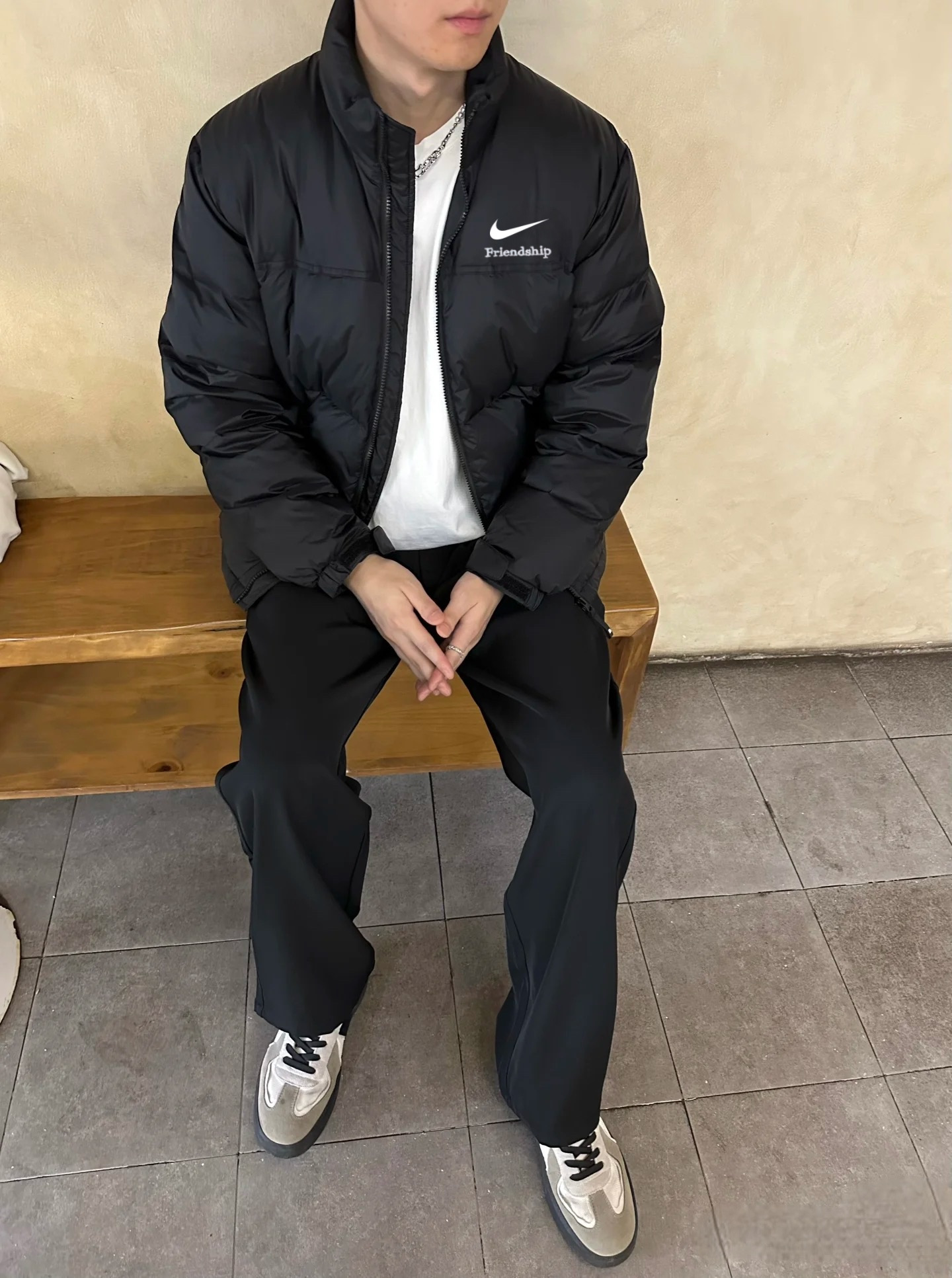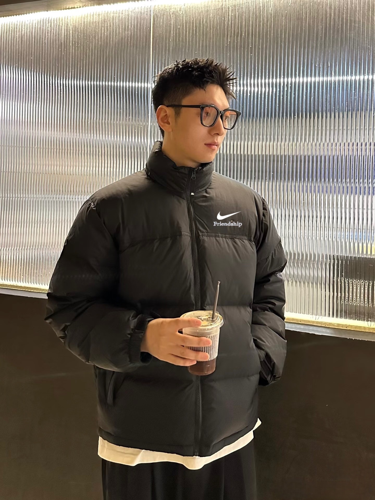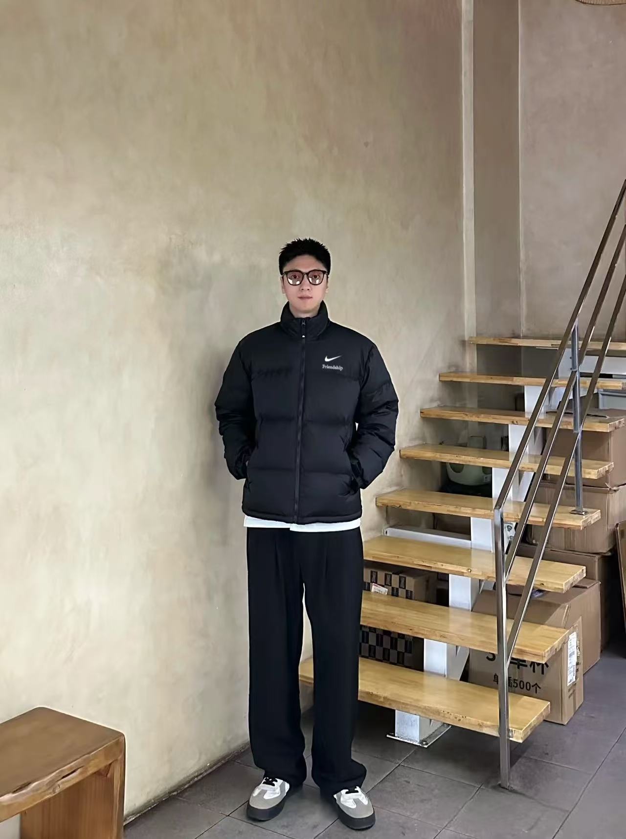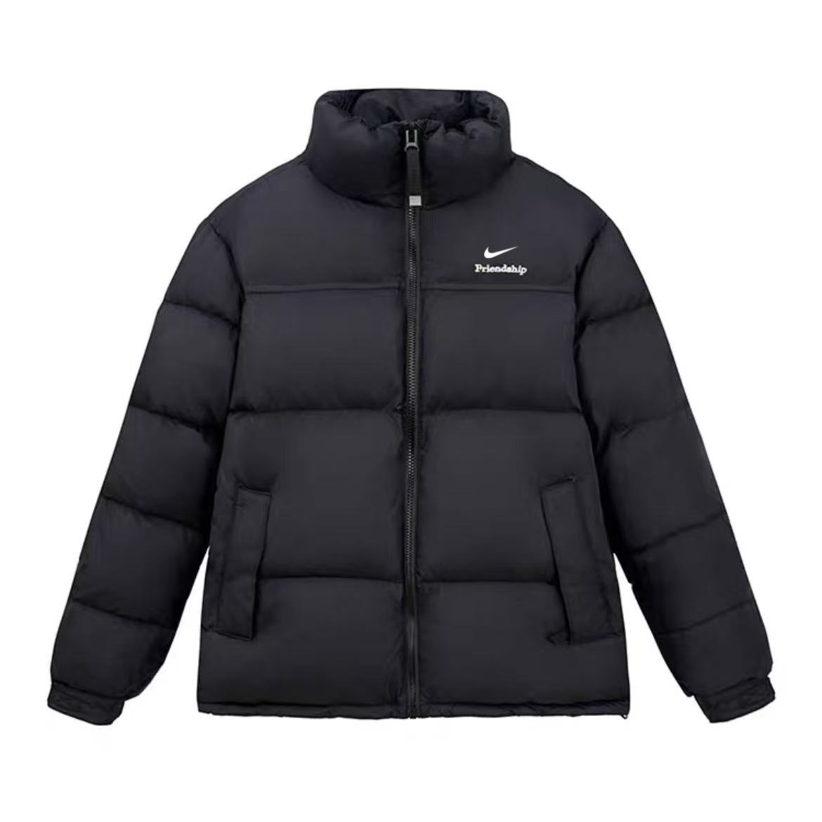 售后不停 特价70亏本清不退换 耐克Nike黑色经典立领情侣面包羽绒服