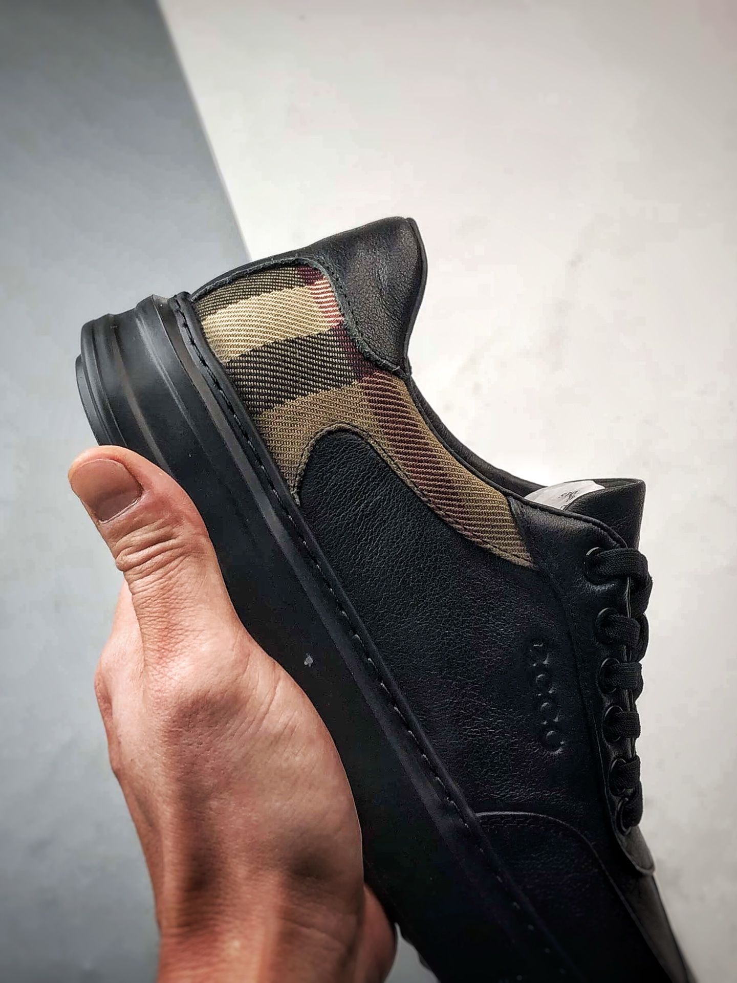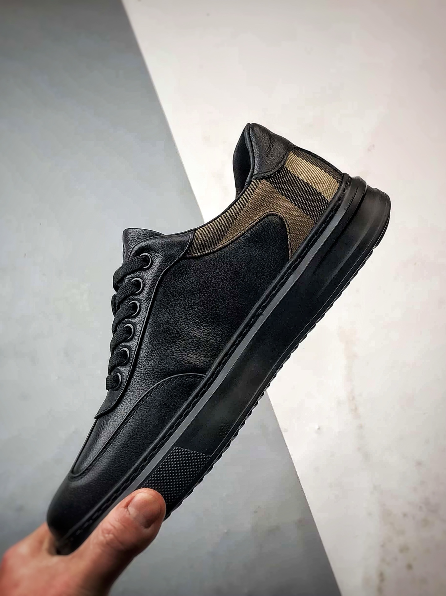 潮流百搭格子布拼接休闲板鞋 牛皮与牛皮剖层拼接鞋面 纹理自然 时尚个性 细腻柔软 出街有型 简约系带设计 可自由调节松紧 贴合脚型 PU中底 橡胶大底 轻盈柔韧 抓地力强 具有良好的防滑耐磨性 舒适耐穿 休闲百搭 简约利落