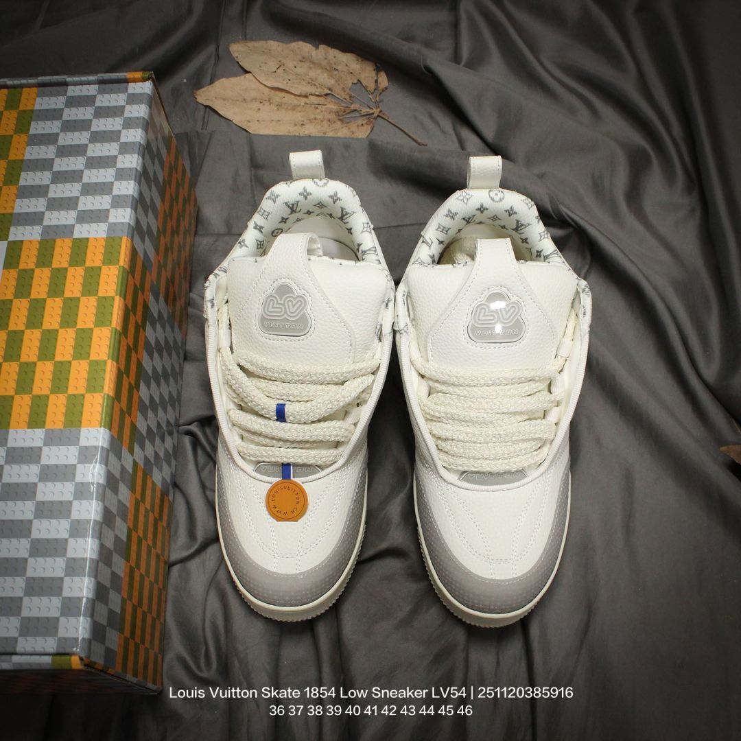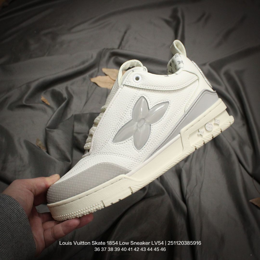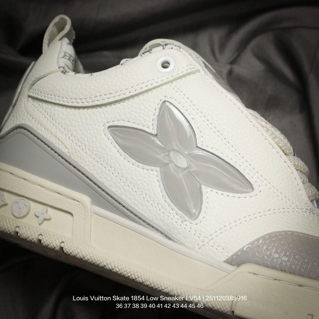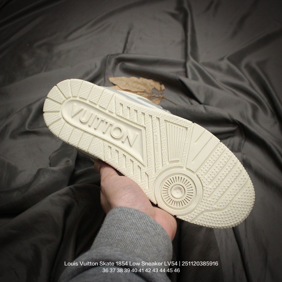 Louis Vuitton 路易威登 男女鞋 采用荔枝纹纤维革鞋面材质 灌注式高密度EVA脚感物料鞋垫 外置RB隔色厚实橡胶大底爆款 Trainer 继任者 LV 面包鞋 全新LV路易威登Louis Vuitton Skate 1854 Low Sneaker LV54系列低帮复古百搭休闲运动文化滑板板鞋