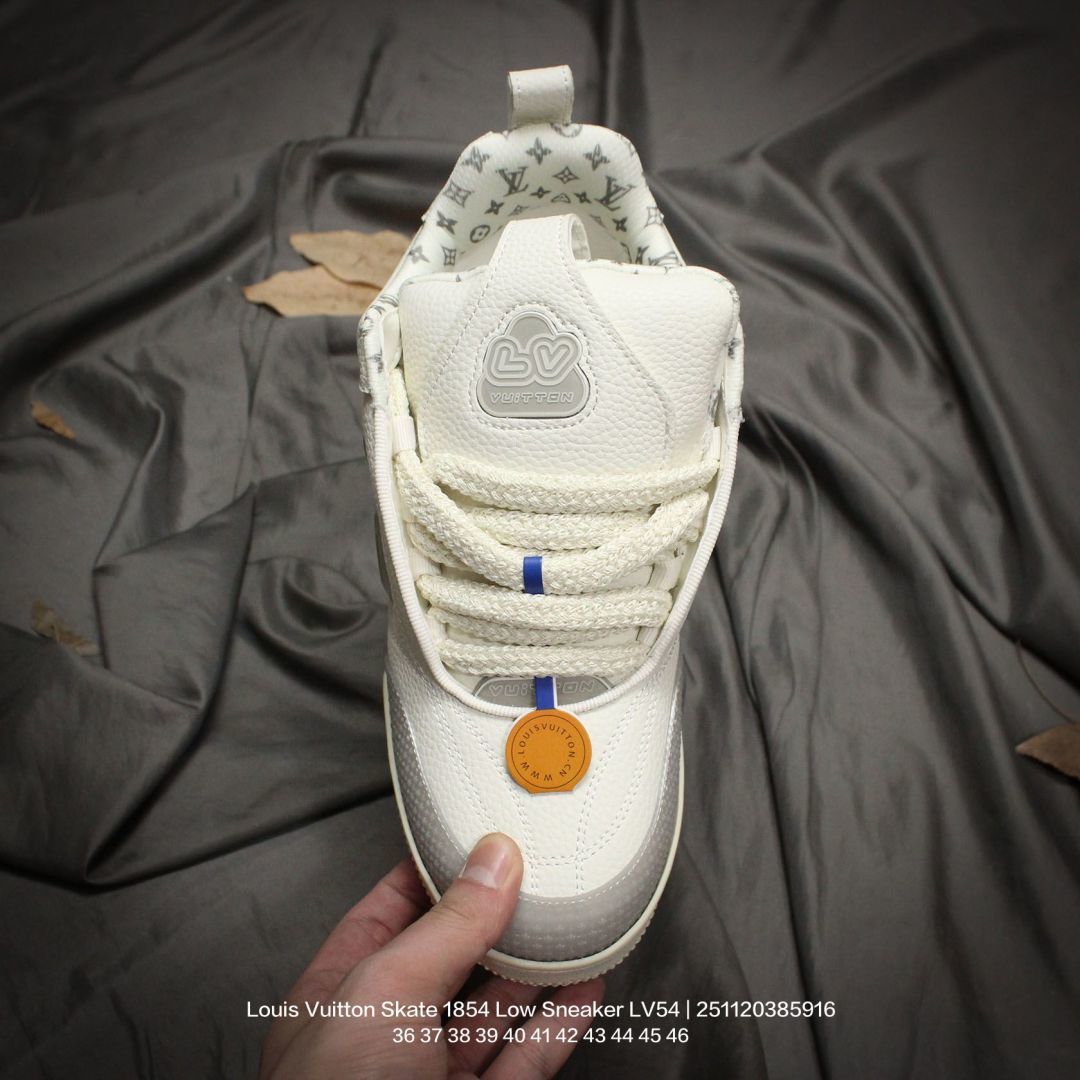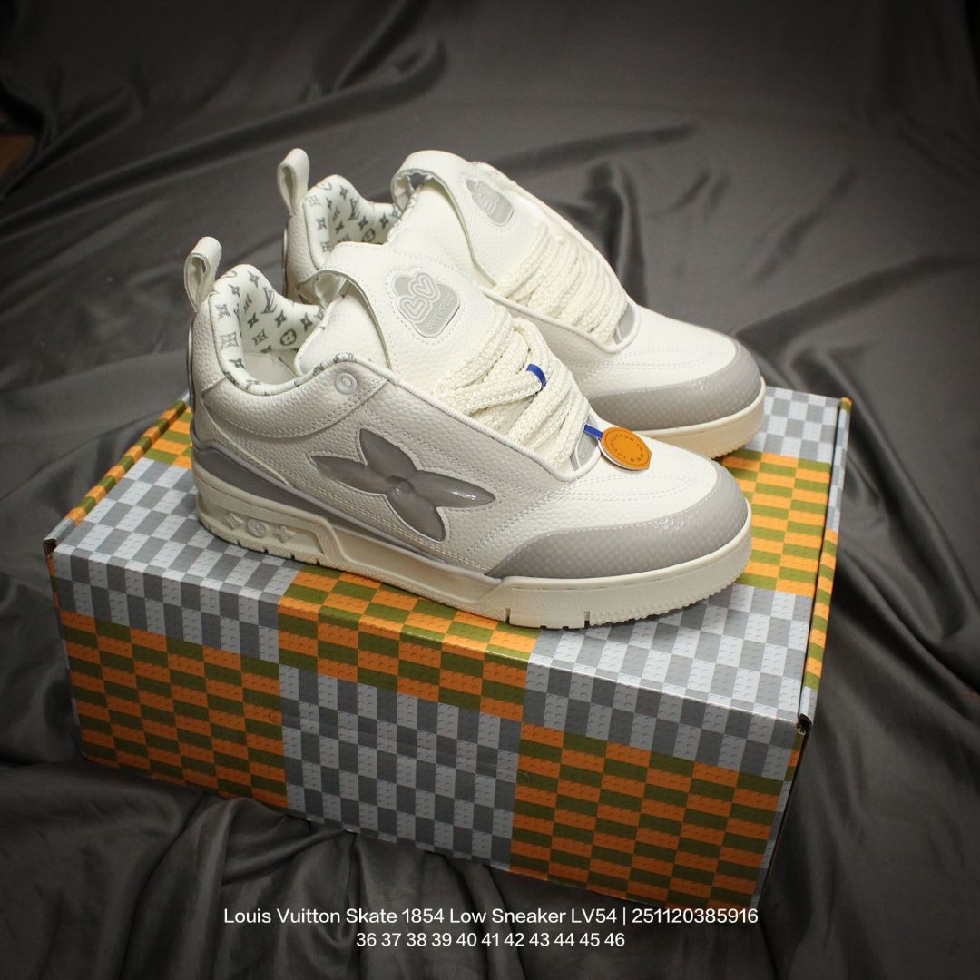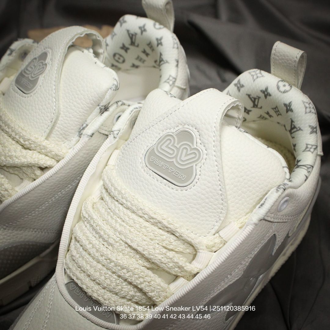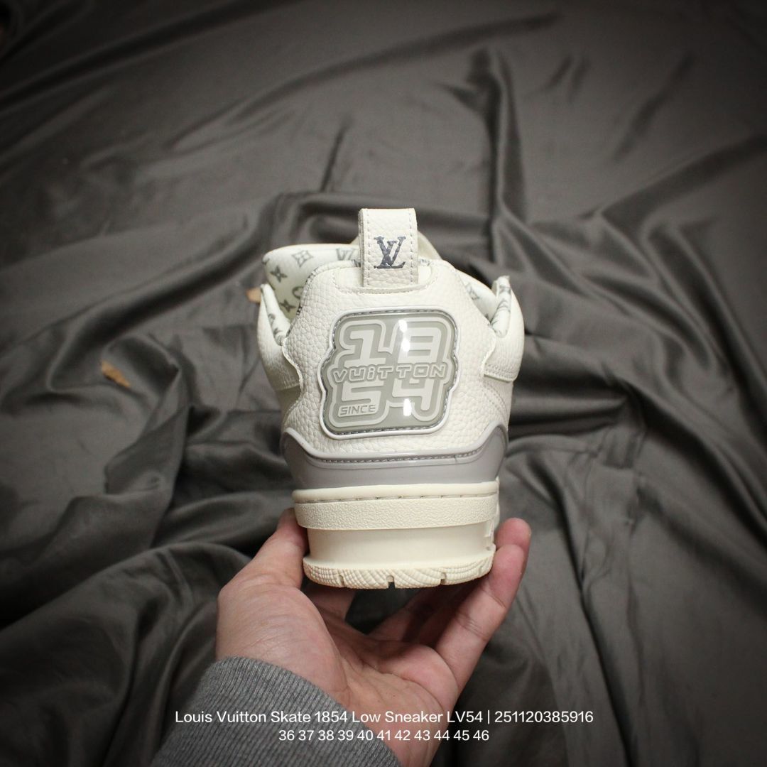 Louis Vuitton 路易威登 男女鞋 采用荔枝纹纤维革鞋面材质 灌注式高密度EVA脚感物料鞋垫 外置RB隔色厚实橡胶大底爆款 Trainer 继任者 LV 面包鞋 全新LV路易威登Louis Vuitton Skate 1854 Low Sneaker LV54系列低帮复古百搭休闲运动文化滑板板鞋