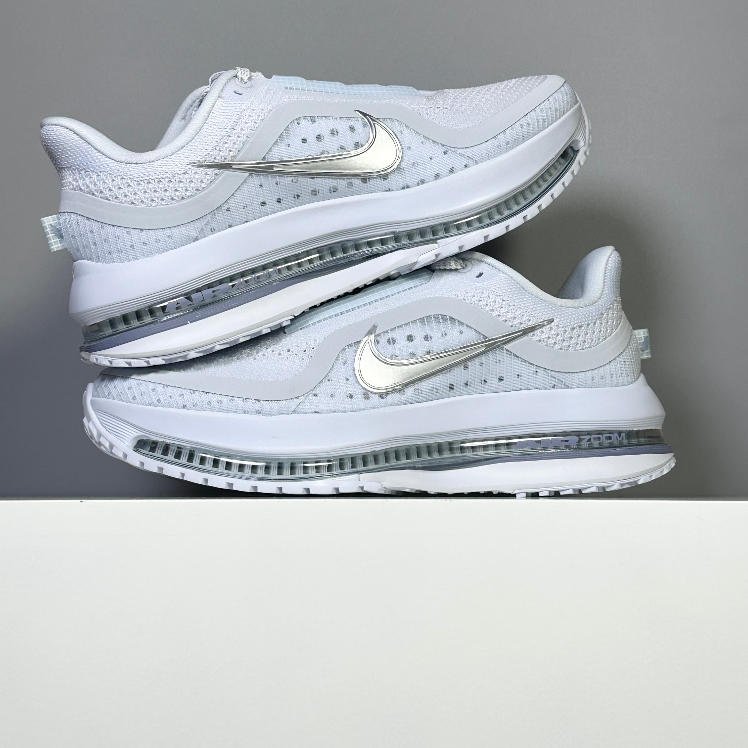 有史以来第一双拥有弯曲全掌的AIR ZOOM气垫 且结合ZOOM X 和REACT X 三明治的科技结构 从前掌开始以自然弧度延伸至后跟 能有效传给跑者从后脚触地到脚尖离地的力量 全掌可见的Air Zoom 首次在Pegasus系列中出现 模仿了Vaporfly的碳板曲线 增强了跑步时的流畅过渡