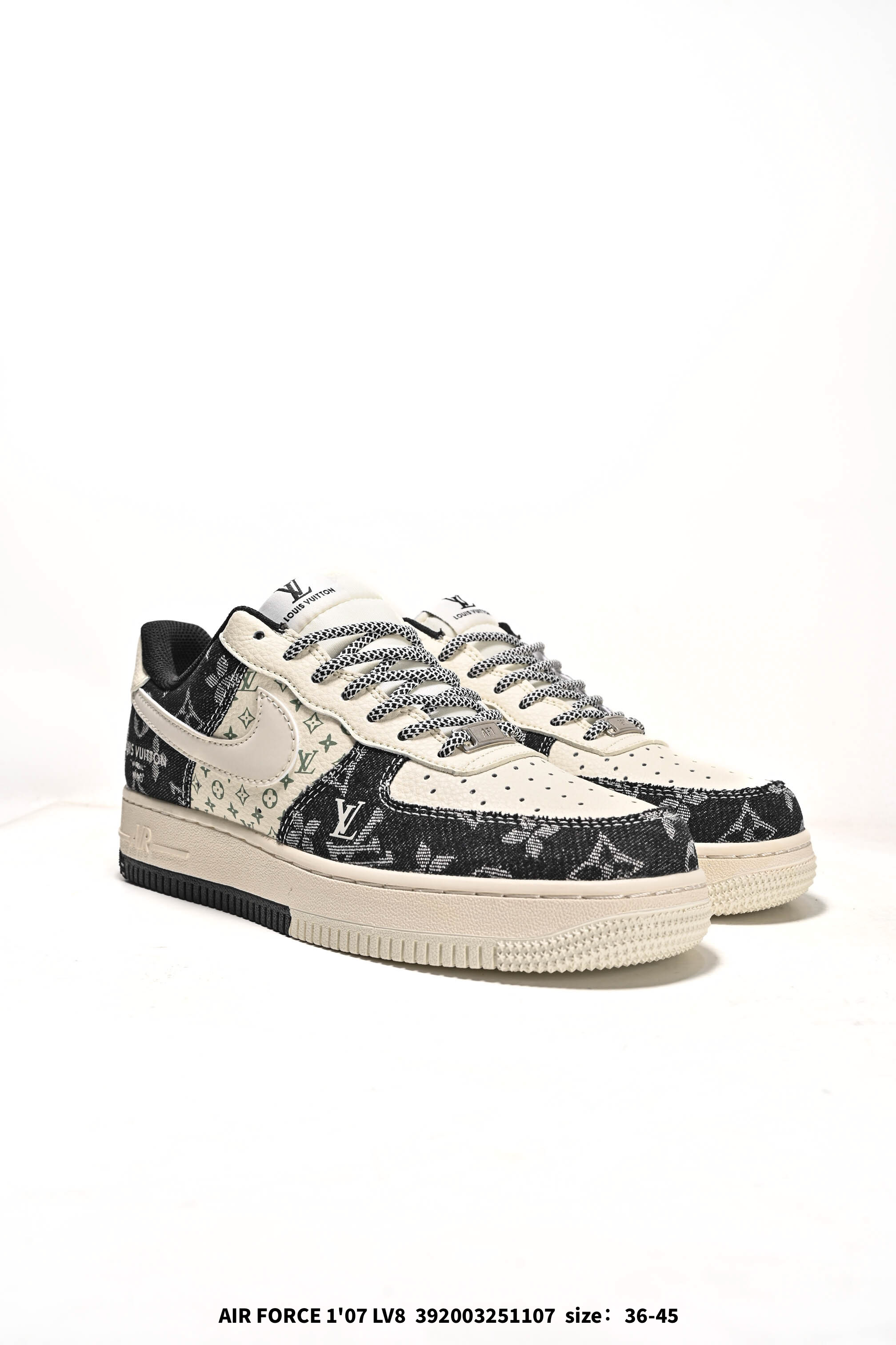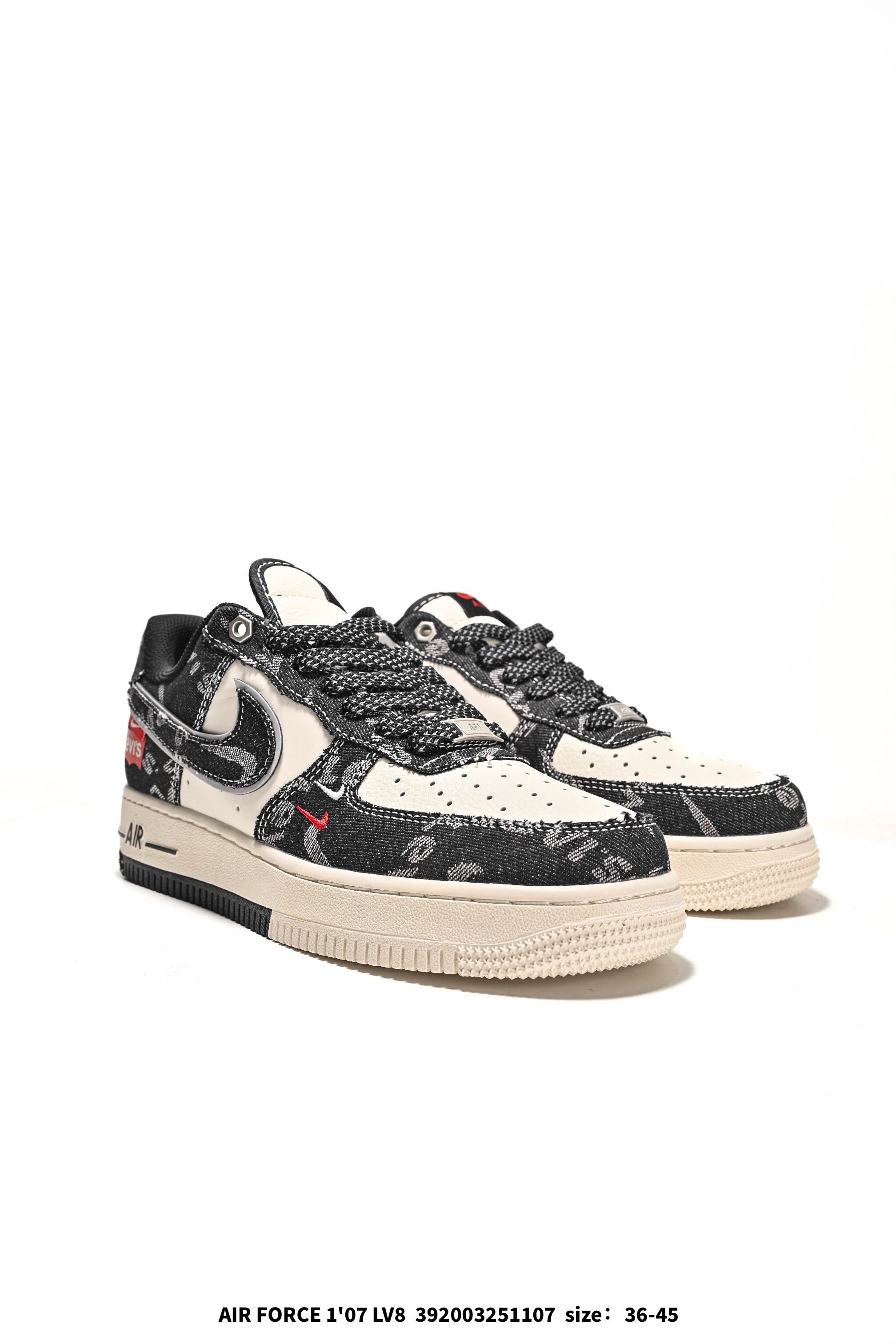 Nike Air Force 1 07 Low LV联名 猪八牛仔米黑 空军一号定制休闲板鞋