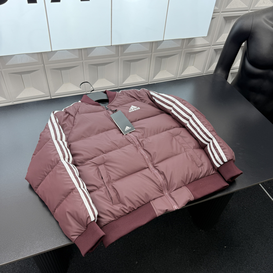 冬季热销爆款网红博主推荐款AD阿迪达斯立领羽绒棉服 经典三条杠 刺绣Logo 立领飞行服 三标齐全官网一致 放大看细节原相机实物拍摄 颜色 酒红色 尺码 L 4xl L 80 105斤 XL 105 120斤 2XL 120 140斤 3XL 140 160斤 4XL 160 180斤