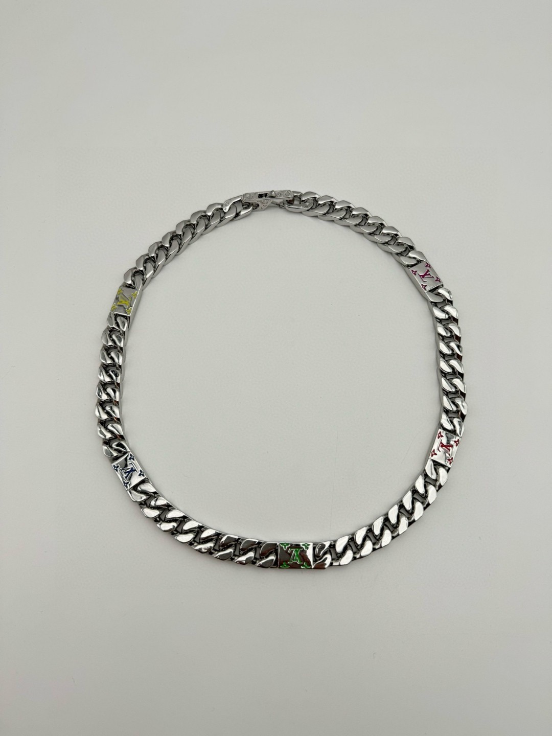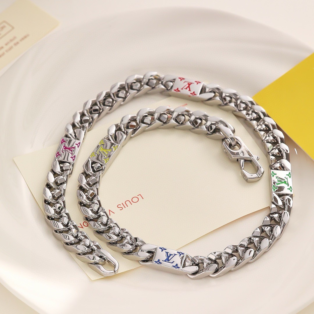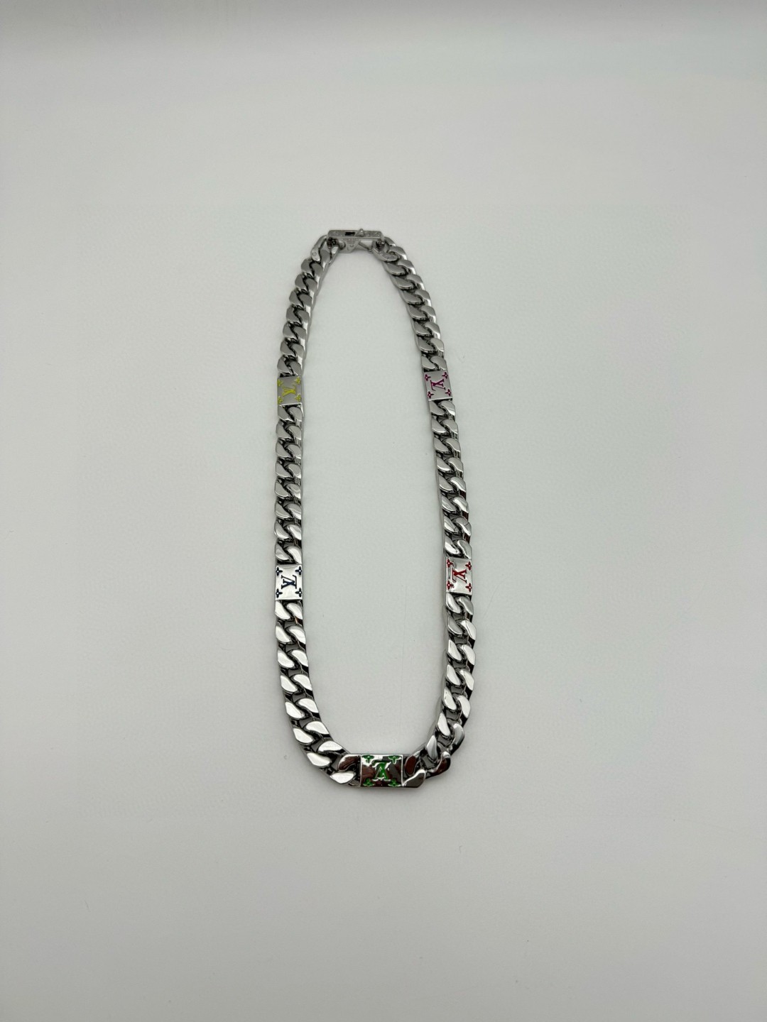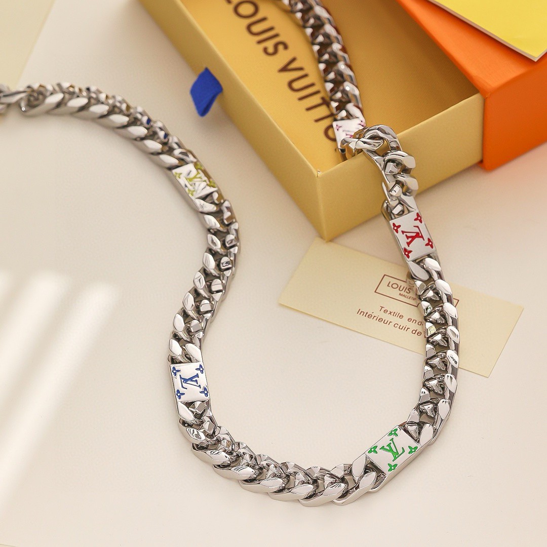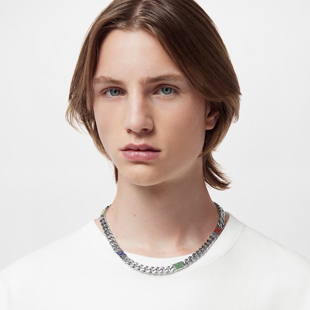 LV路易威登 彩色古巴项链 配全套包装 LV Mosaic 项链将 Tied Up 和 Cuban 链环彼此相扣 以缤纷珐琅 LV 字母和 Monogram 图案道出风雅意趣 可为男士衣橱注入潮流风尚 所属系列另有手链和戒指可选