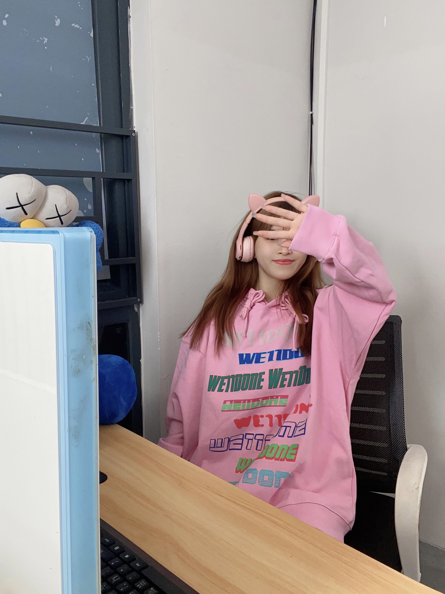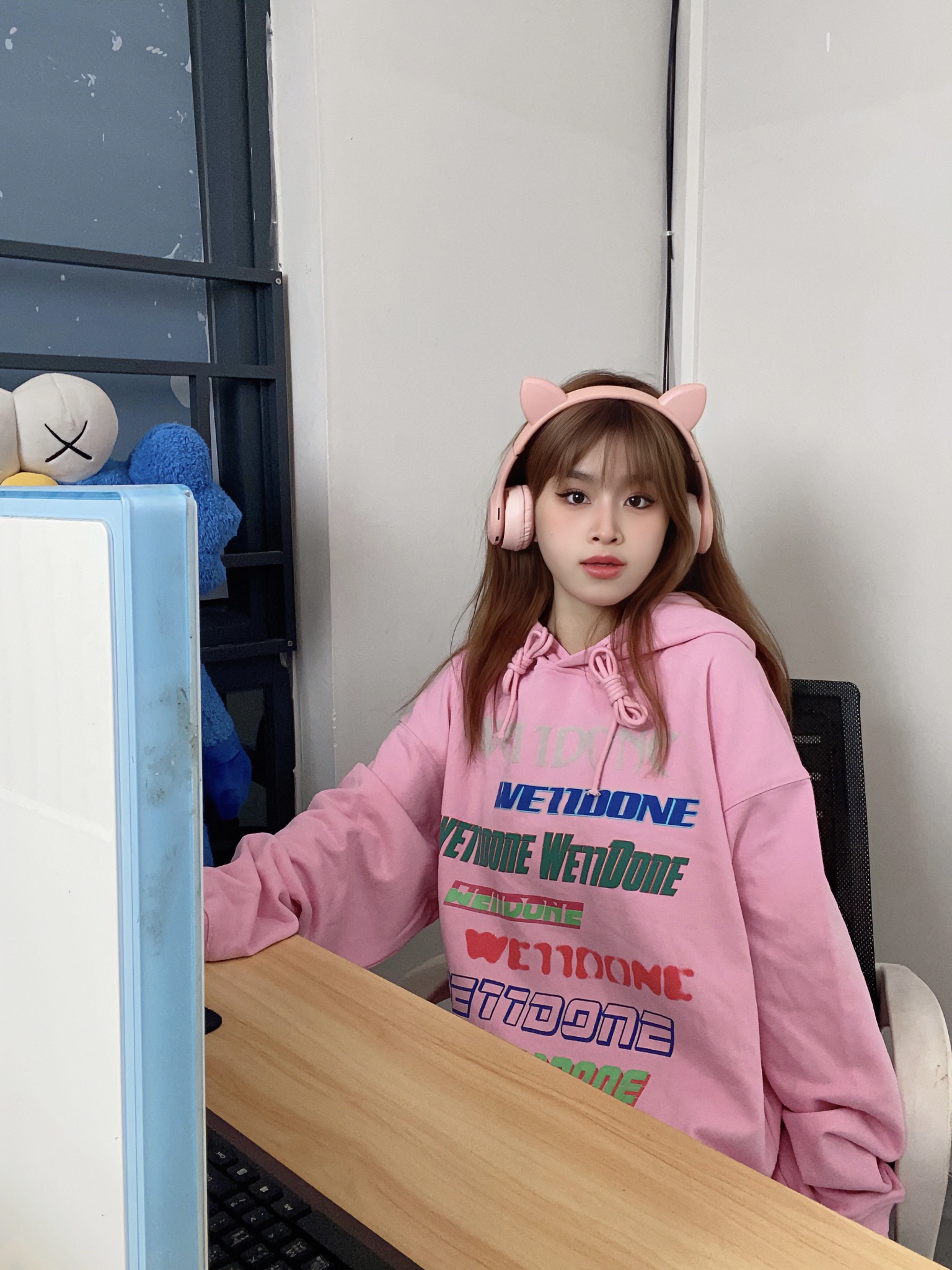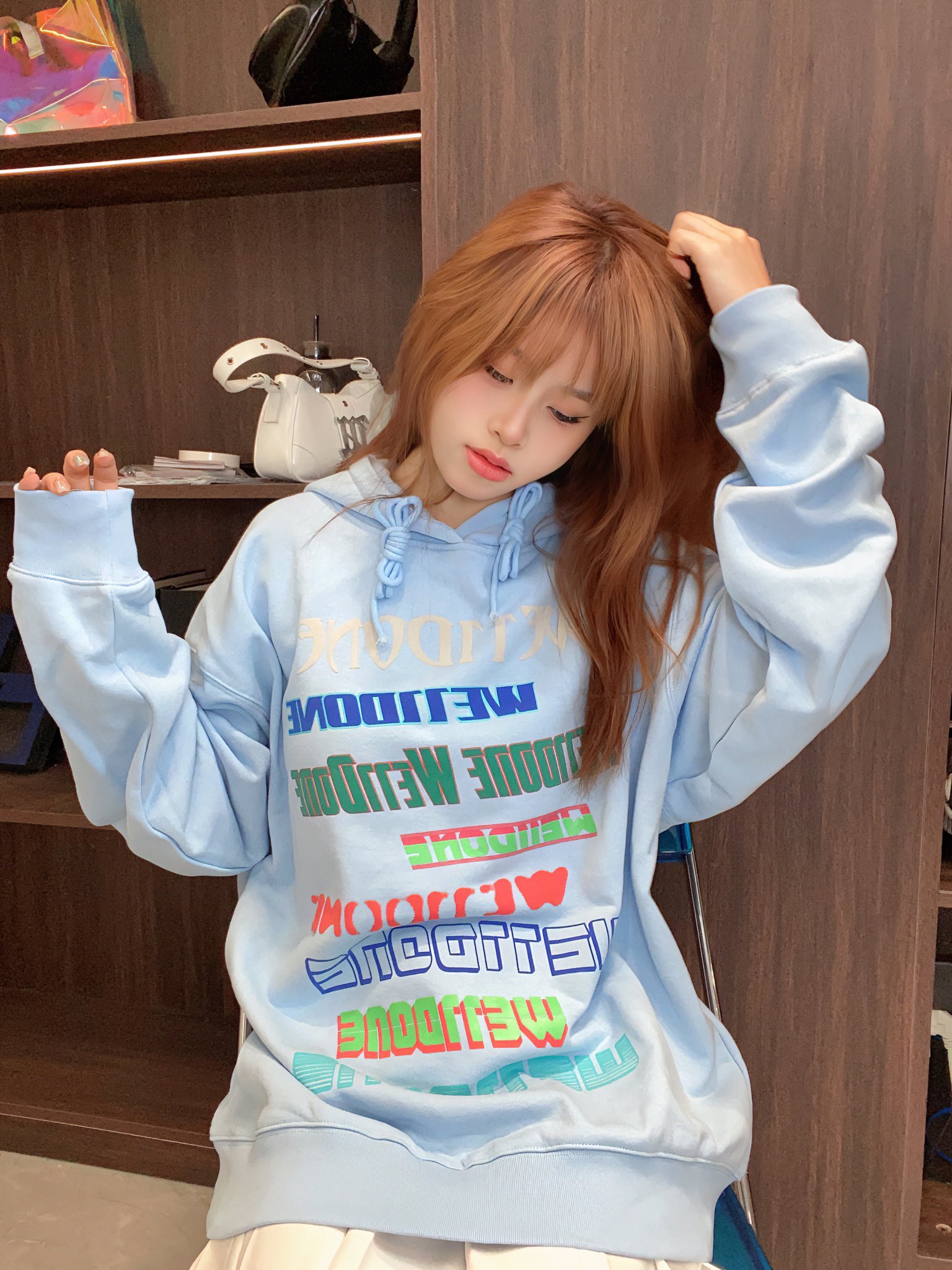 D53WE11DONE旗舰店秋冬新款夜光弹幕字母立体发泡印花连帽卫衣