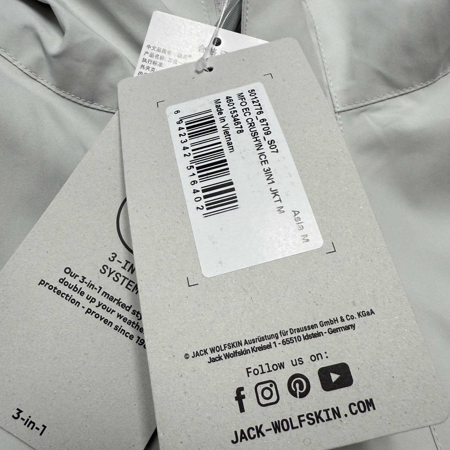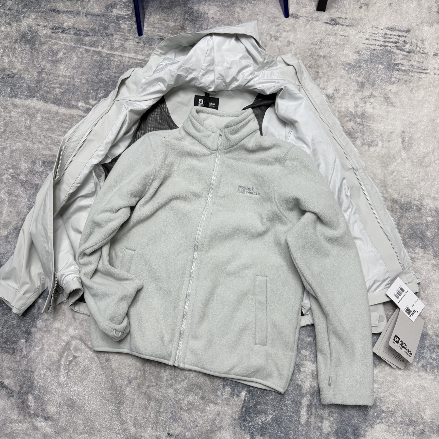 由于是原单货 所以这件冲锋衣可以与其他狼爪同拉链系统的内胆任意组合