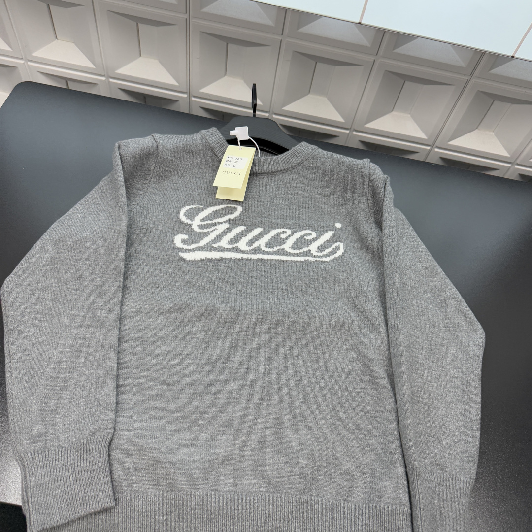 冬季热销爆款网红博主推荐款Gucci古驰针织毛衣 胸前字母图案 三标齐全官网一致 放大看细节原相机实物拍摄 颜色 灰色 尺码 L 4xl L 80 105斤 XL 105 120斤 2XL 120 140斤 3XL 140 160斤 4XL 160 180斤