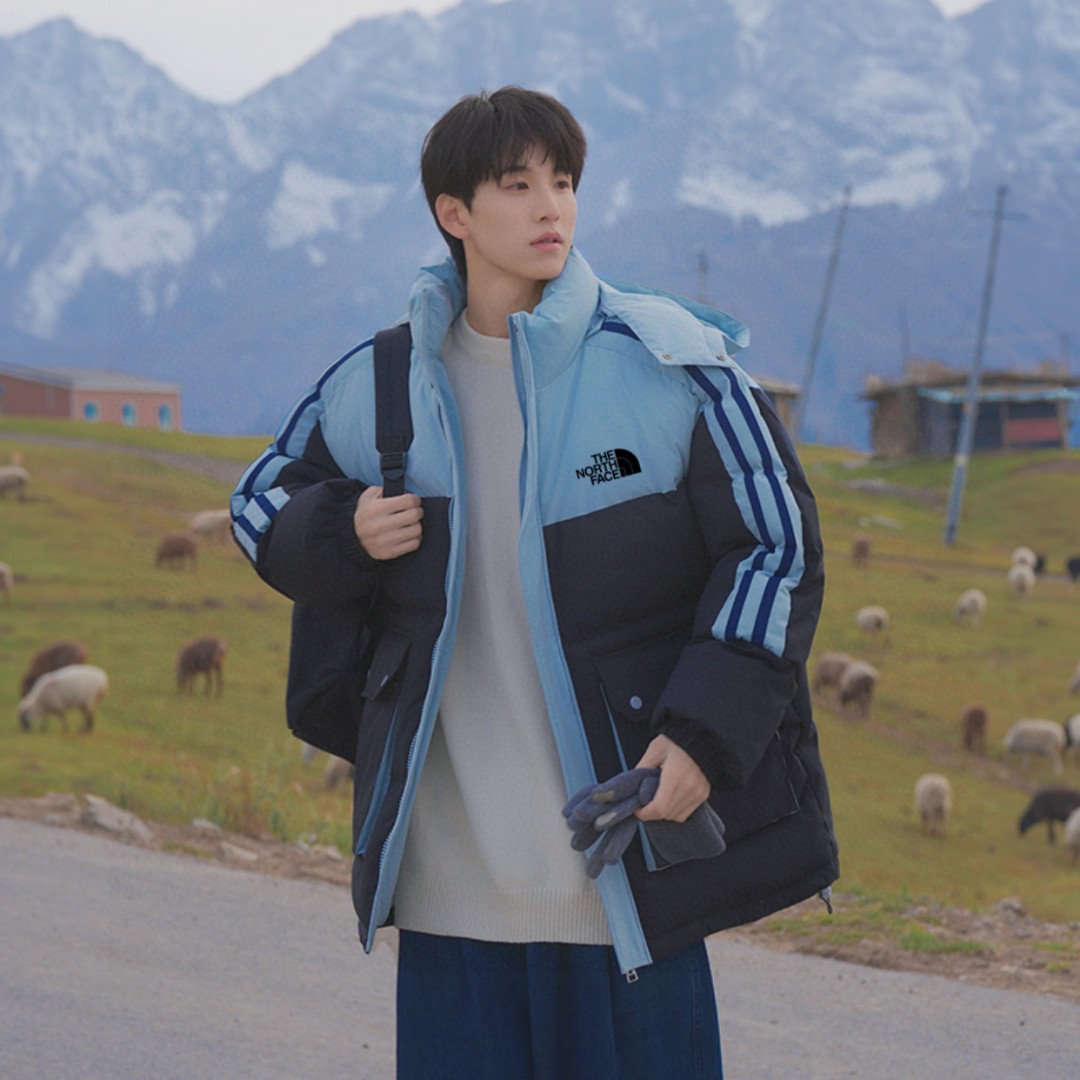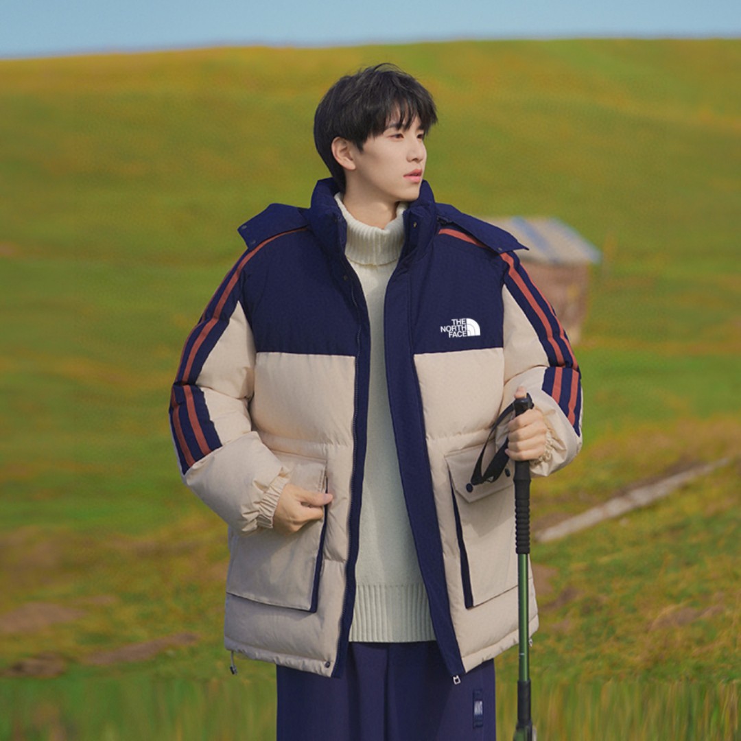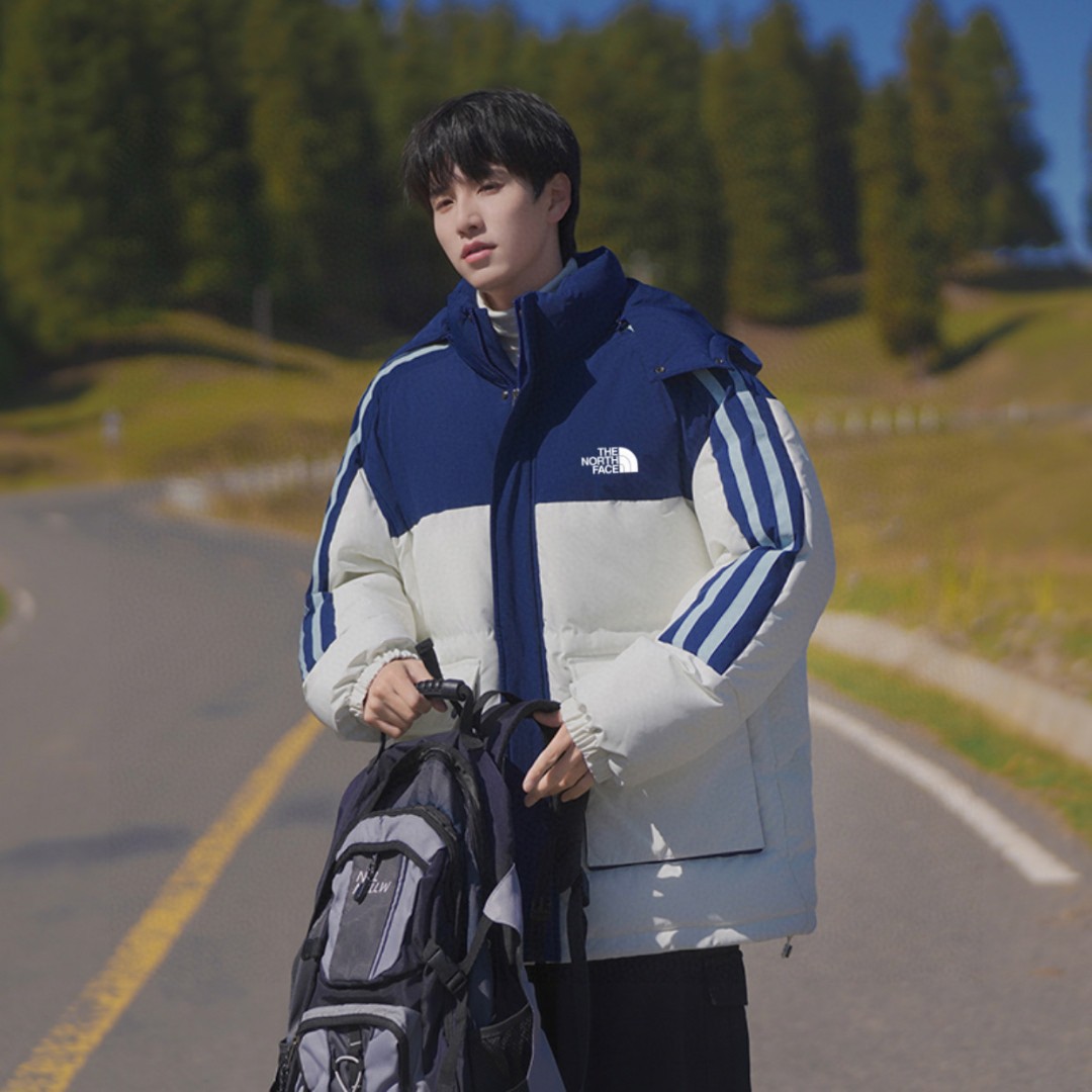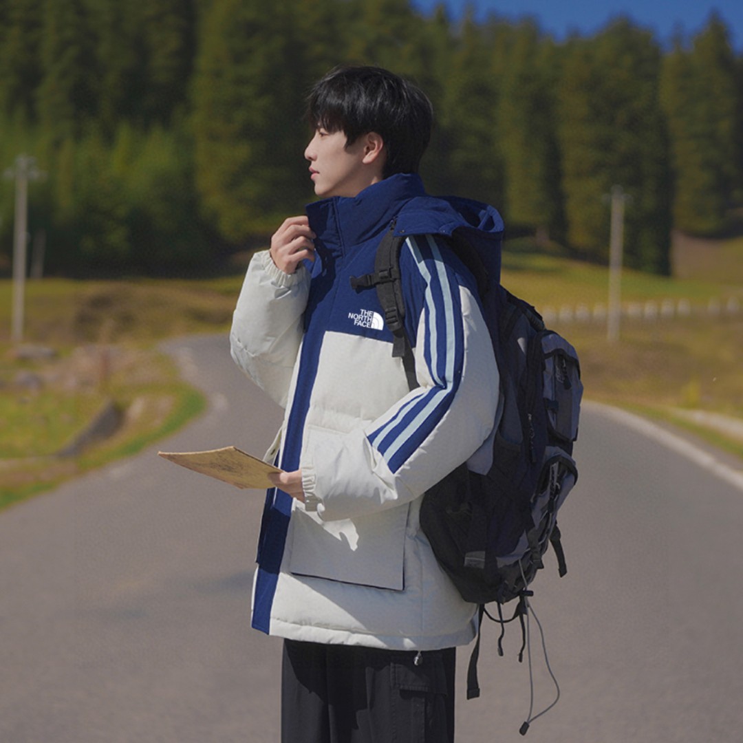 The North Face TNF北面 25FW冬季海外版专柜限定撞色拼接魔术扣连帽羽绒棉服面包服棉衣外套 男女同款