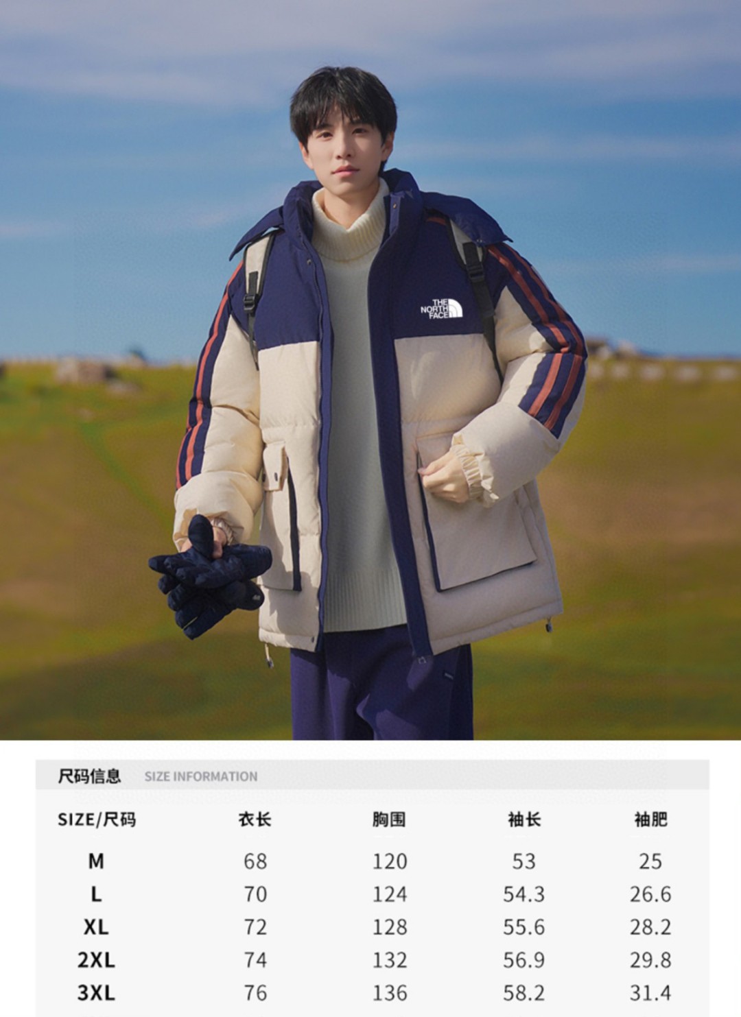 北面专柜最新系列 采用多重撞色拼接设计 再融入条纹元素 防风门襟魔术扣连帽设计 有效阻止外界冷气流灌入 胸前北面LOGO印花 下摆处立体大口袋设计 再保持保暖性的同时又兼顾实用性