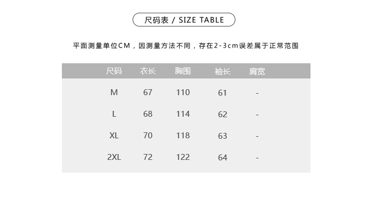 尺码 M L XL XXL