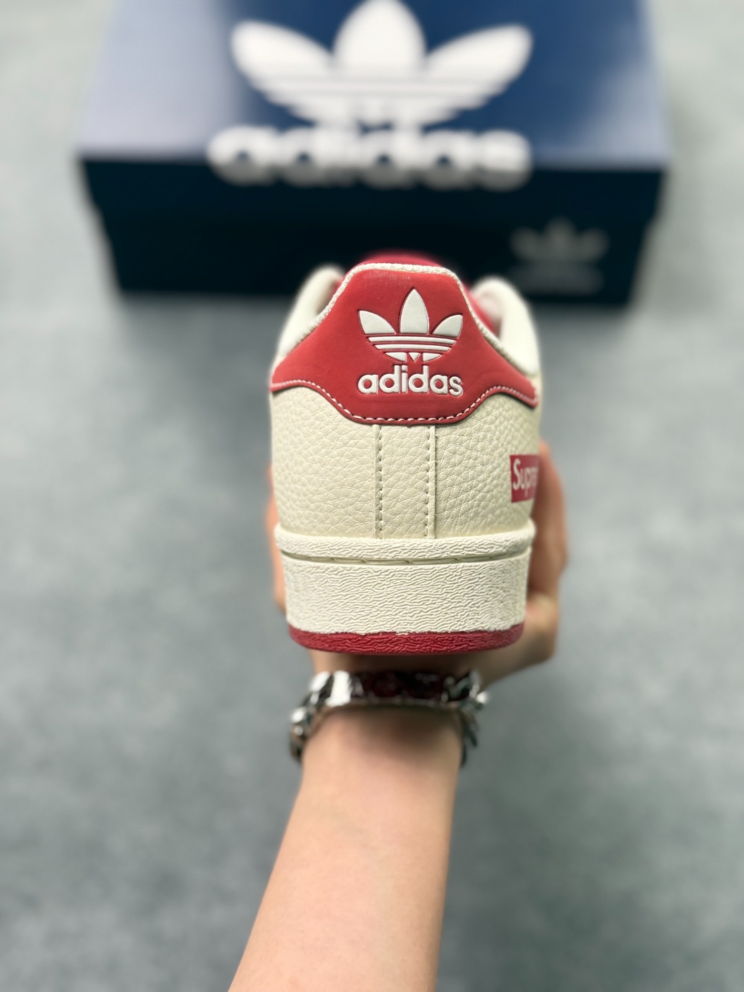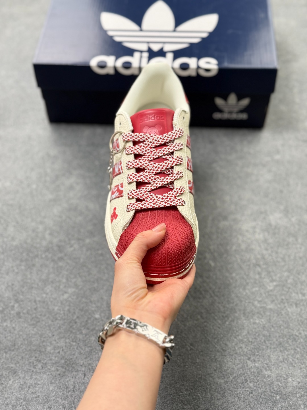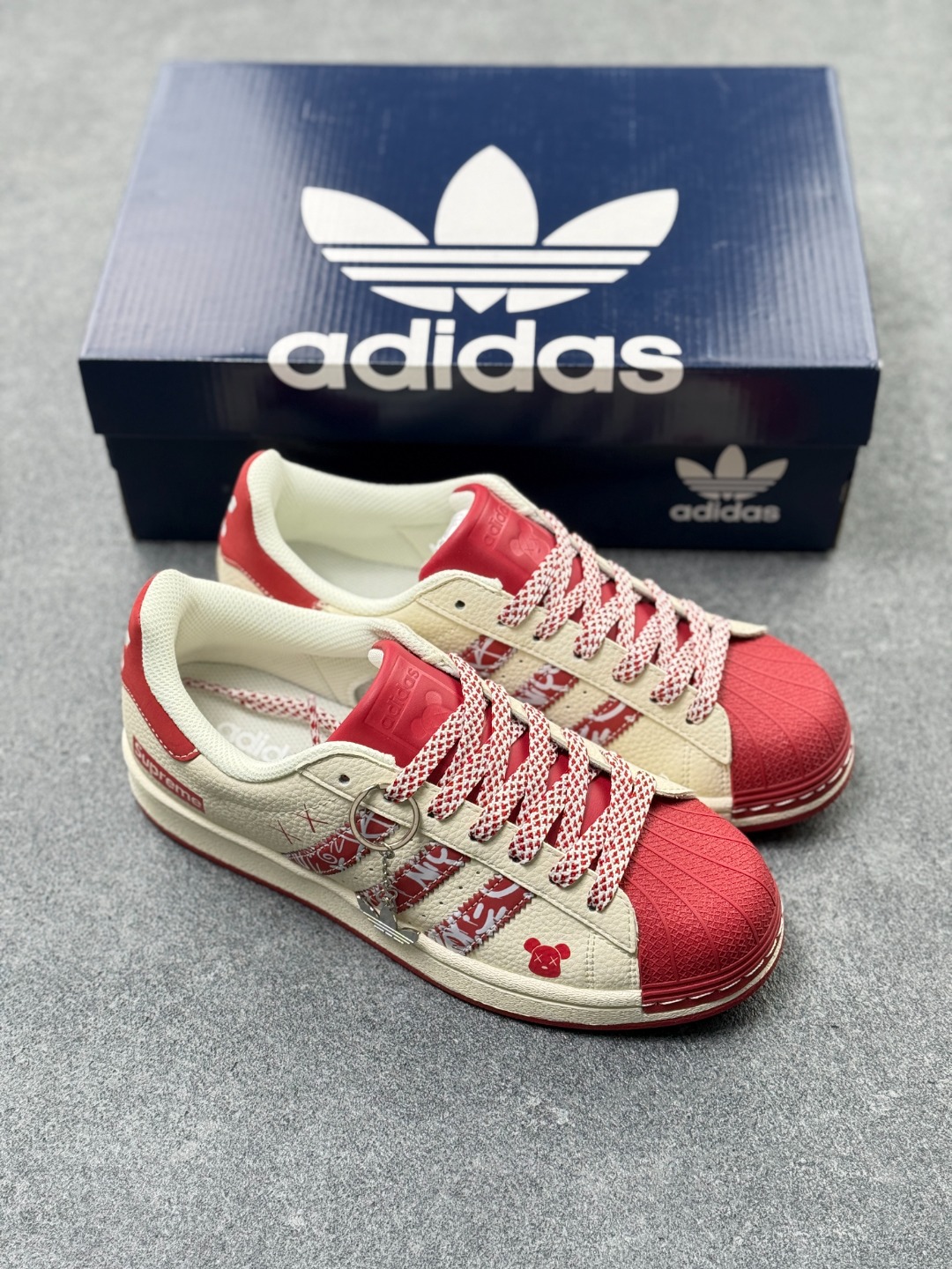 纯原 CLOT x AD Originals Superstar 贝壳头暴力熊联名限定 贴合柔软皮料米红配色 这双鞋的整体设计思路和风格可以说很CLOT 鞋款整体选用了易穿搭的米色作为主色调 而加厚的锯齿形外底以及标志性的贝壳头无疑把鞋款的独特属性进一步展现出来