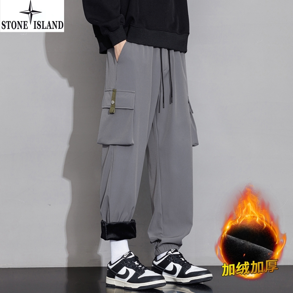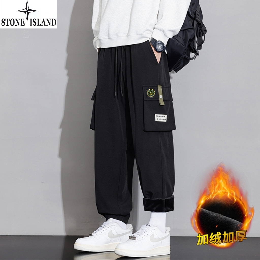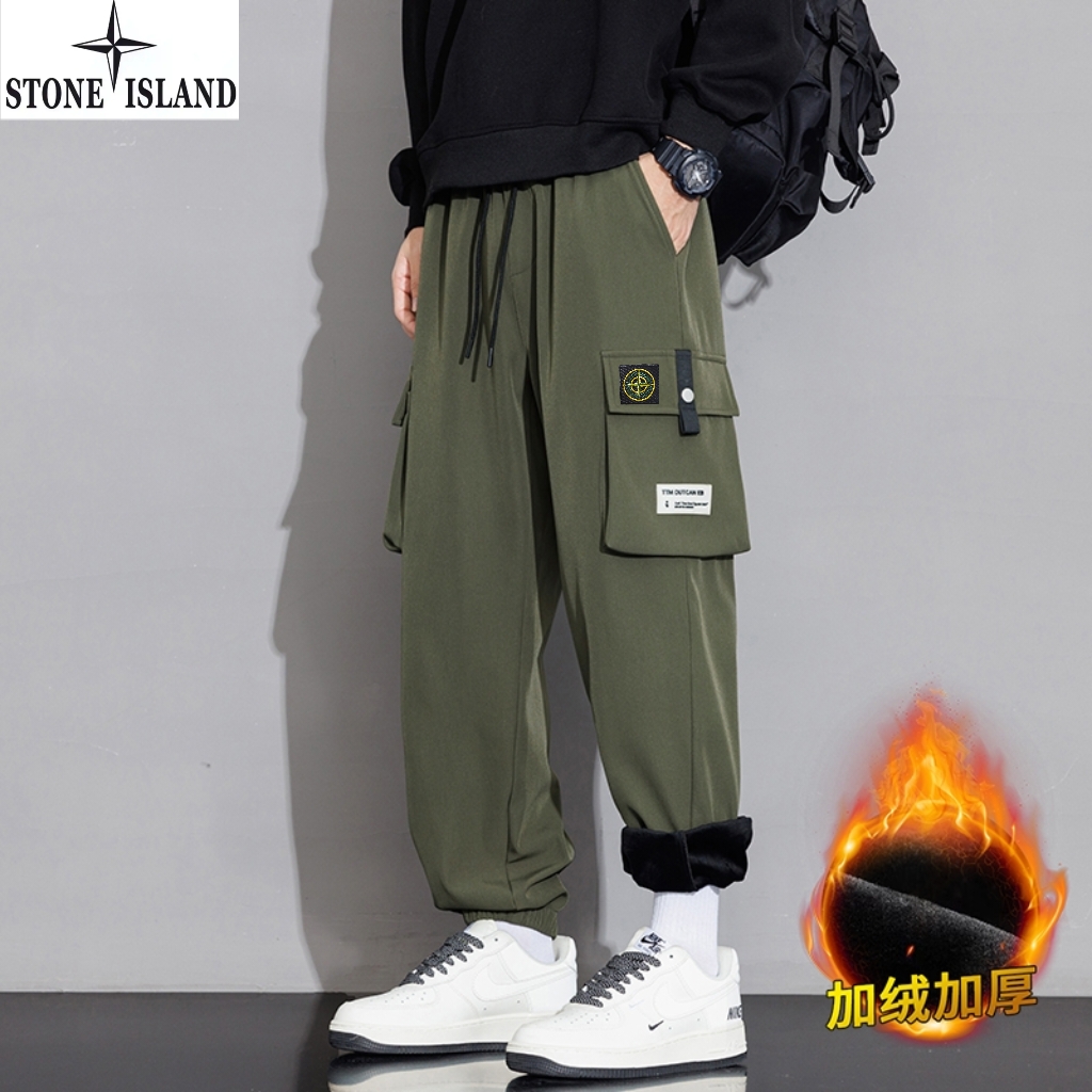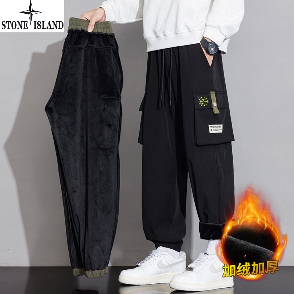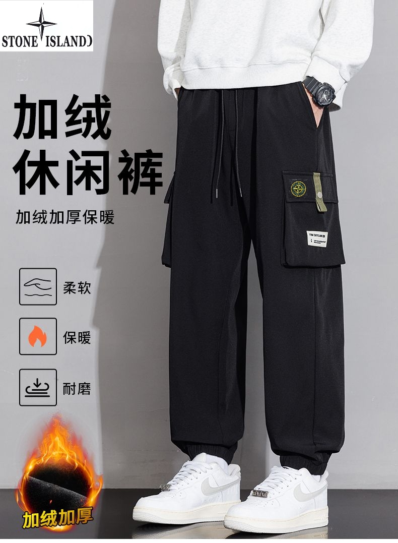 石头岛Stone island冬季新款 男女同款松紧腰抽绳加绒加厚保暖工装裤 男士工装休闲裤 束脚裤长裤