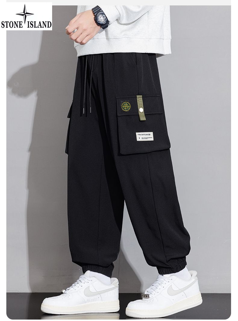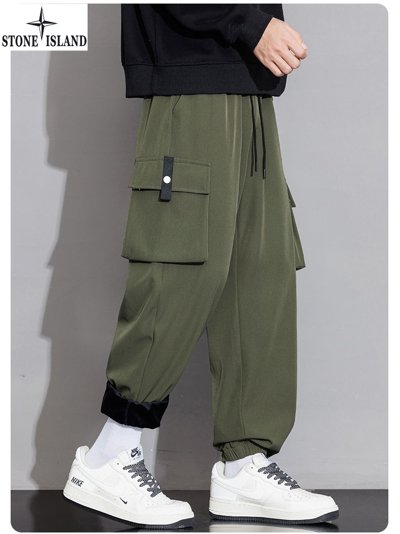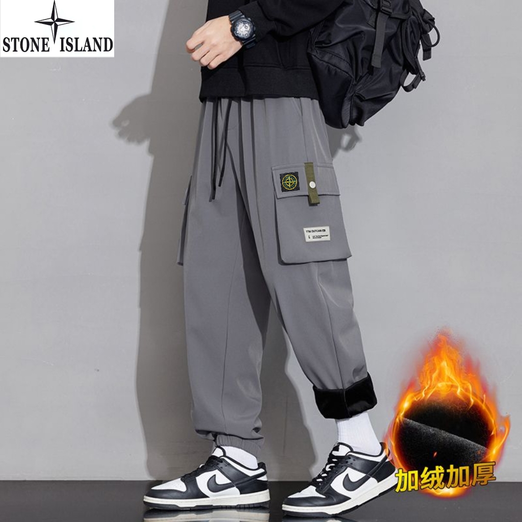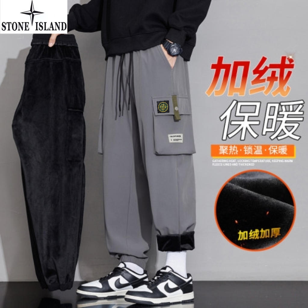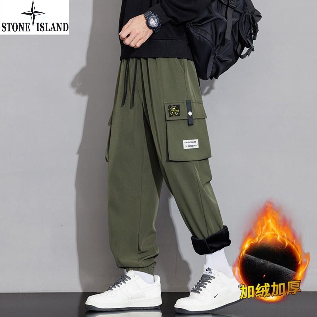 石头岛Stone island冬季新款 男女同款松紧腰抽绳加绒加厚保暖工装裤 男士工装休闲裤 束脚裤长裤