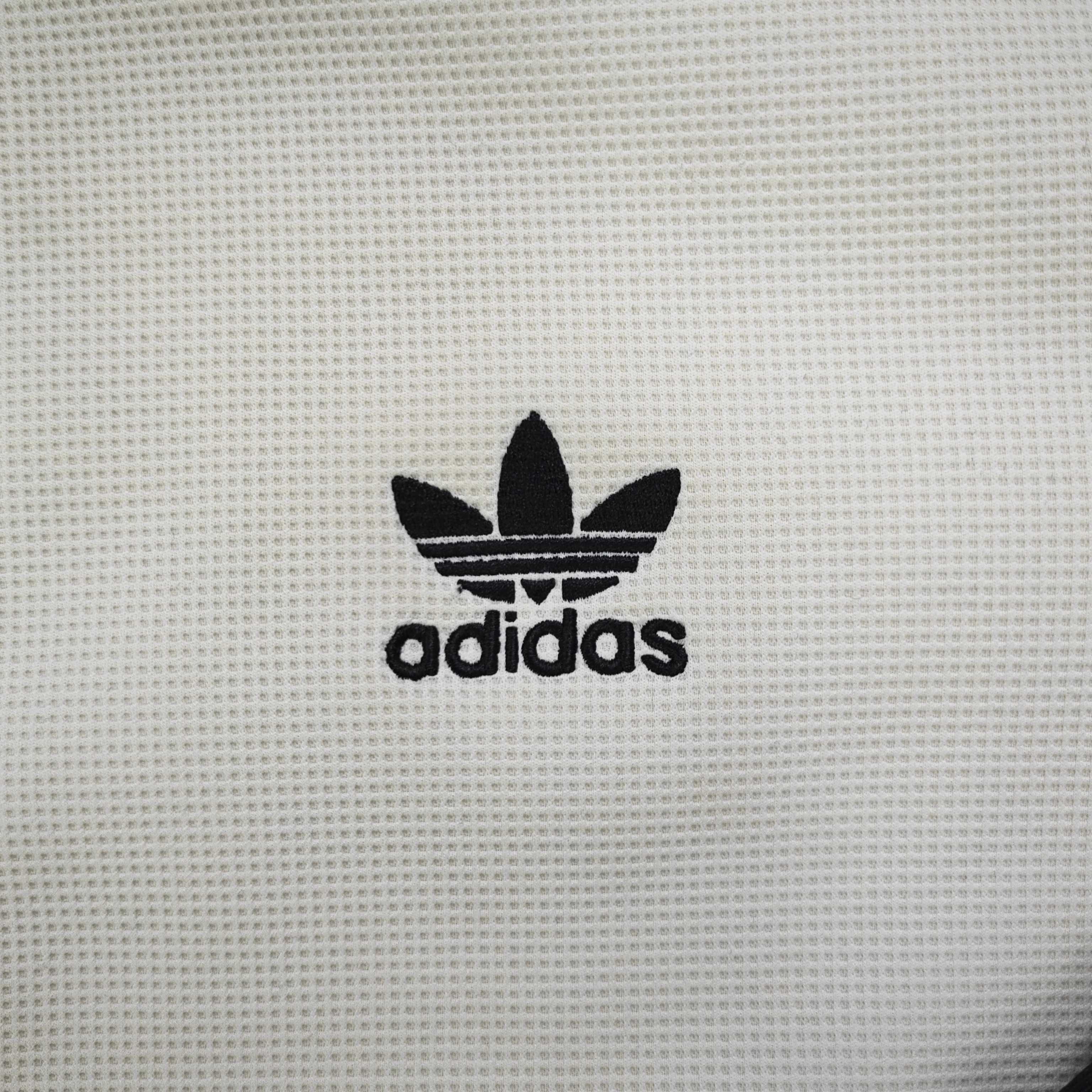 标志性三条杠 胸口小三叶草标低调又有辨识度 整体是干净耐看的复古调 不管走休闲风还是轻复古路线都能无缝适配