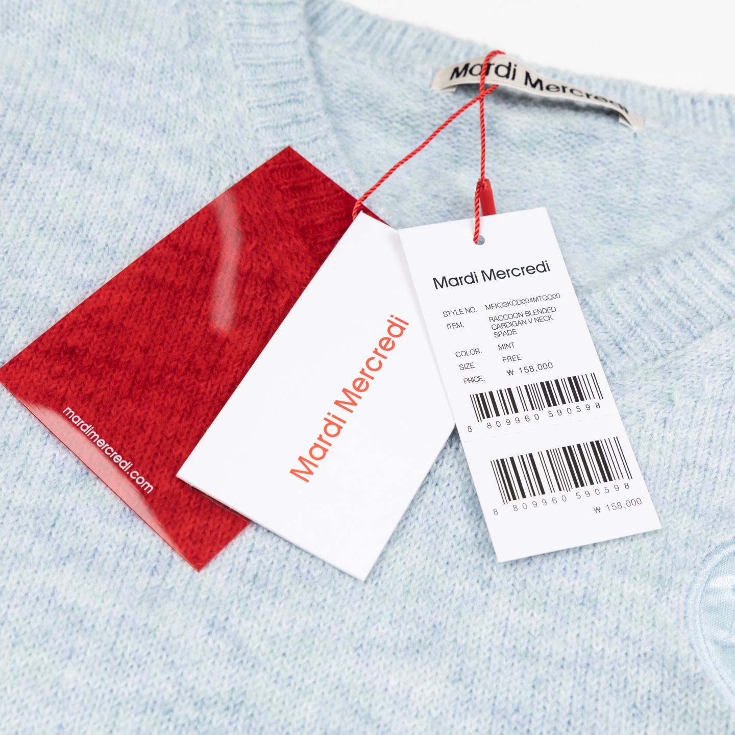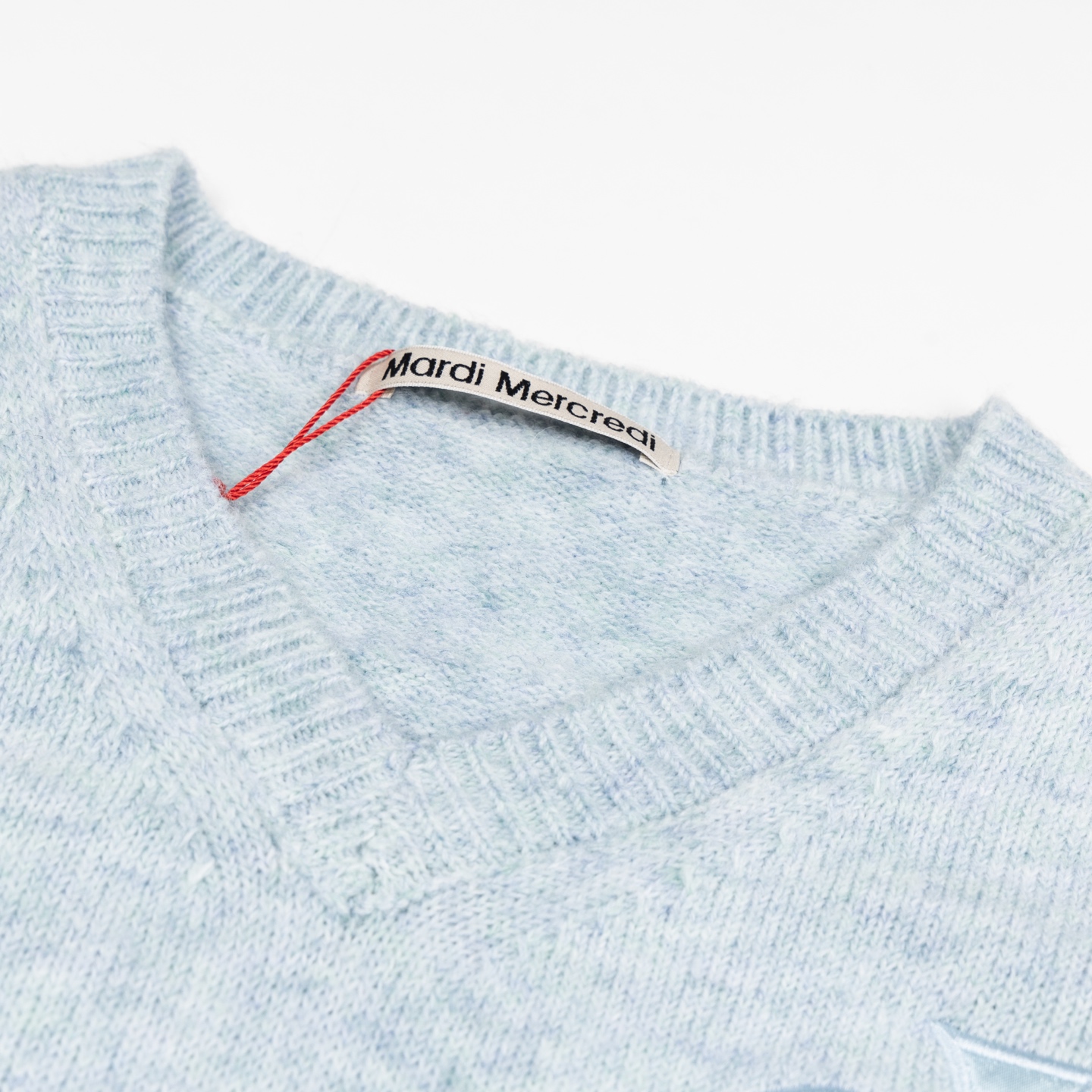 NAB L16 MARDI MERCREDI 早春系列V领缎面黑桃长袖休闲毛毛衣 女款