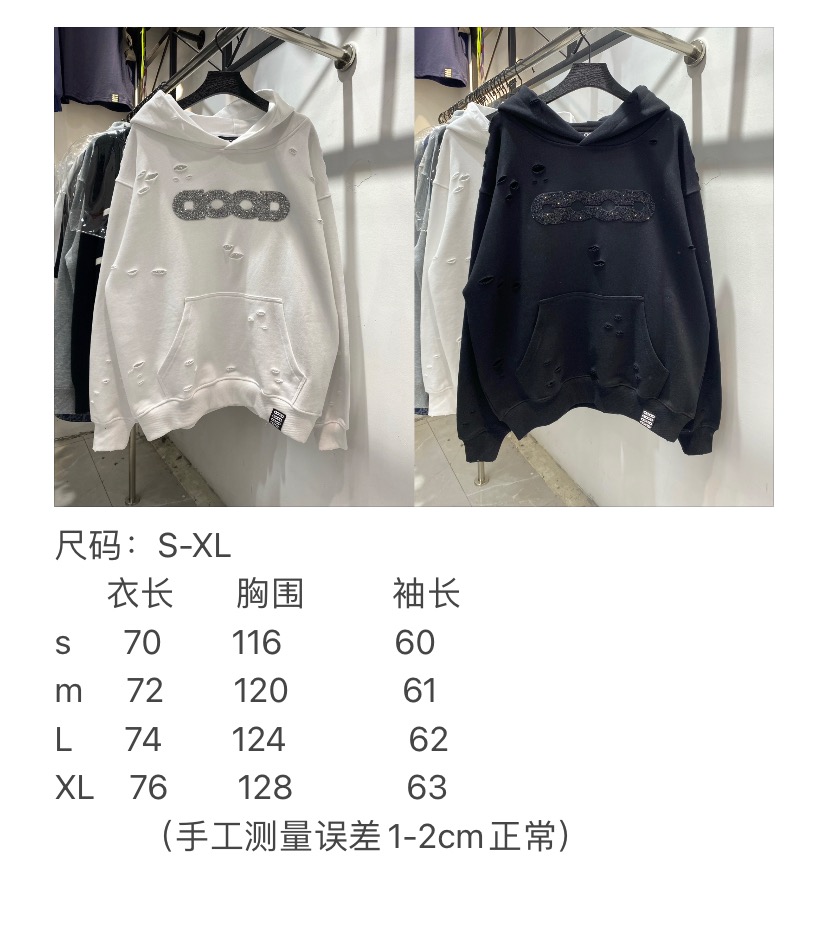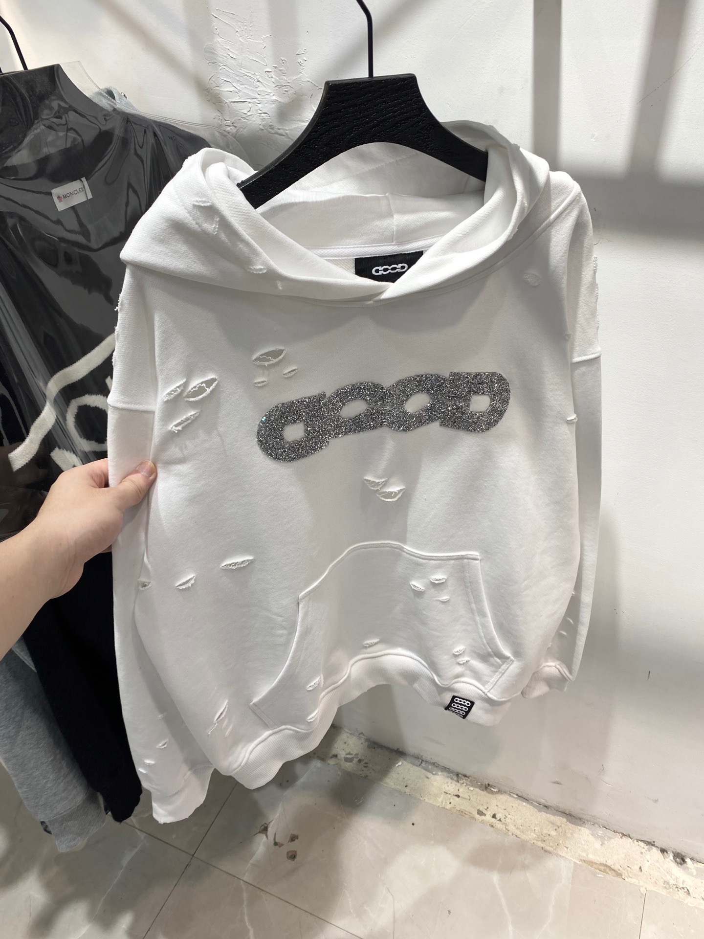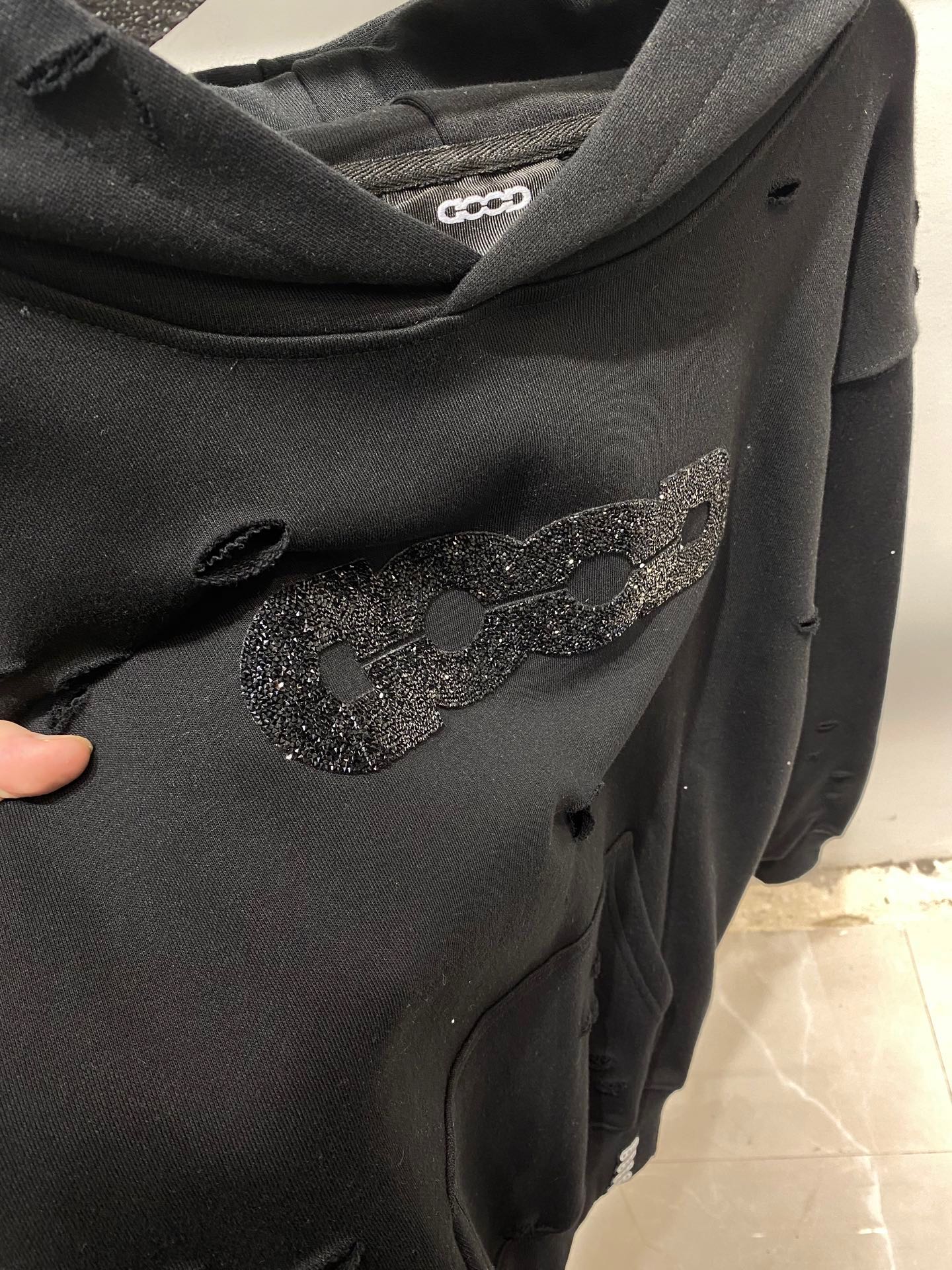 GOODBRAND碎钻磨破工艺长袖连帽卫衣