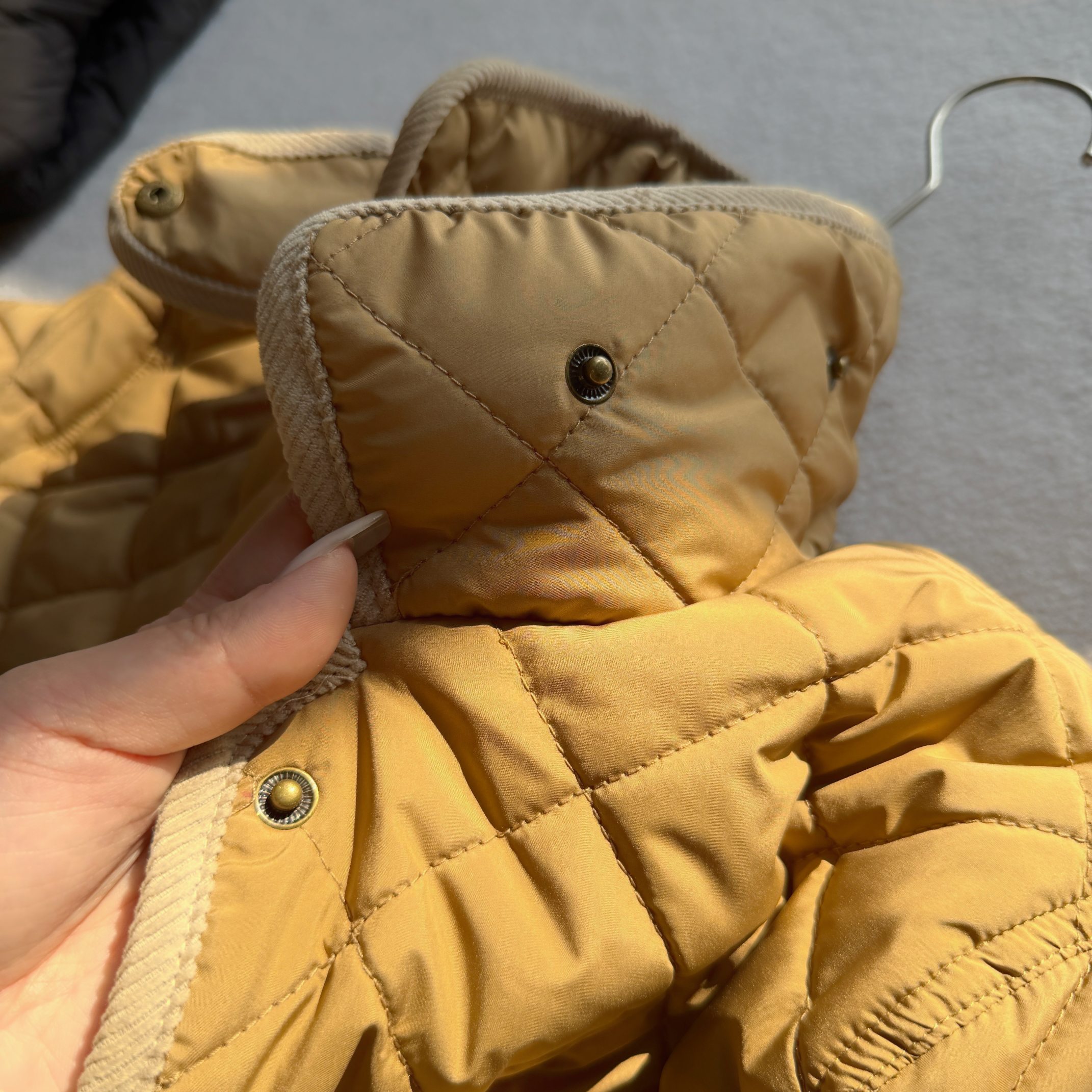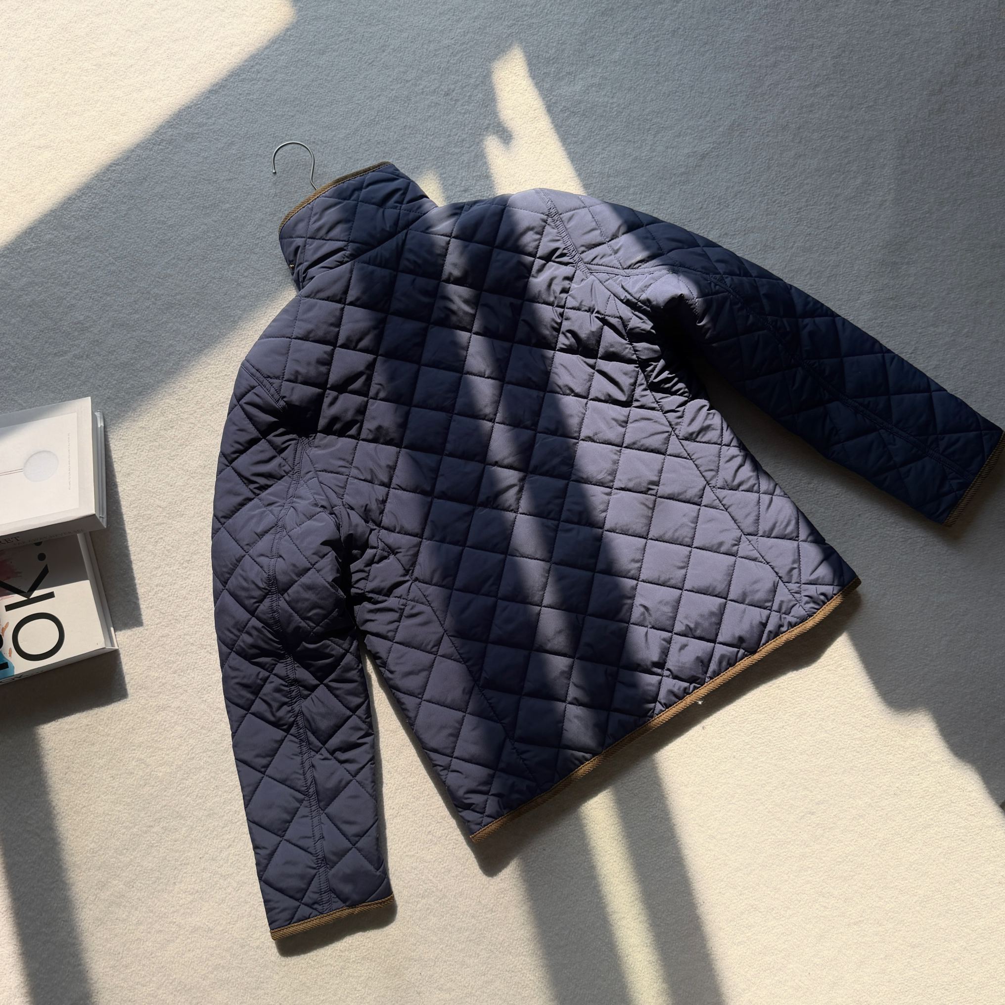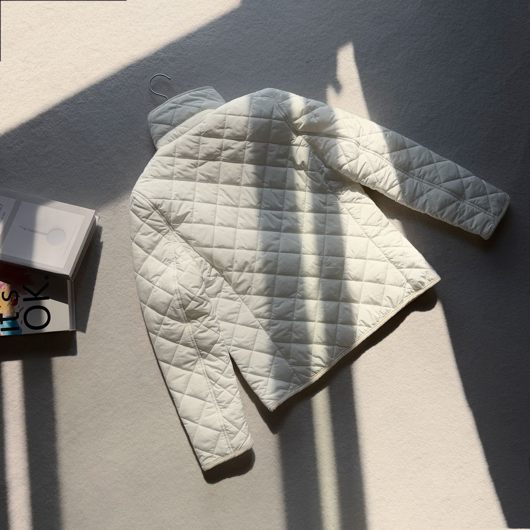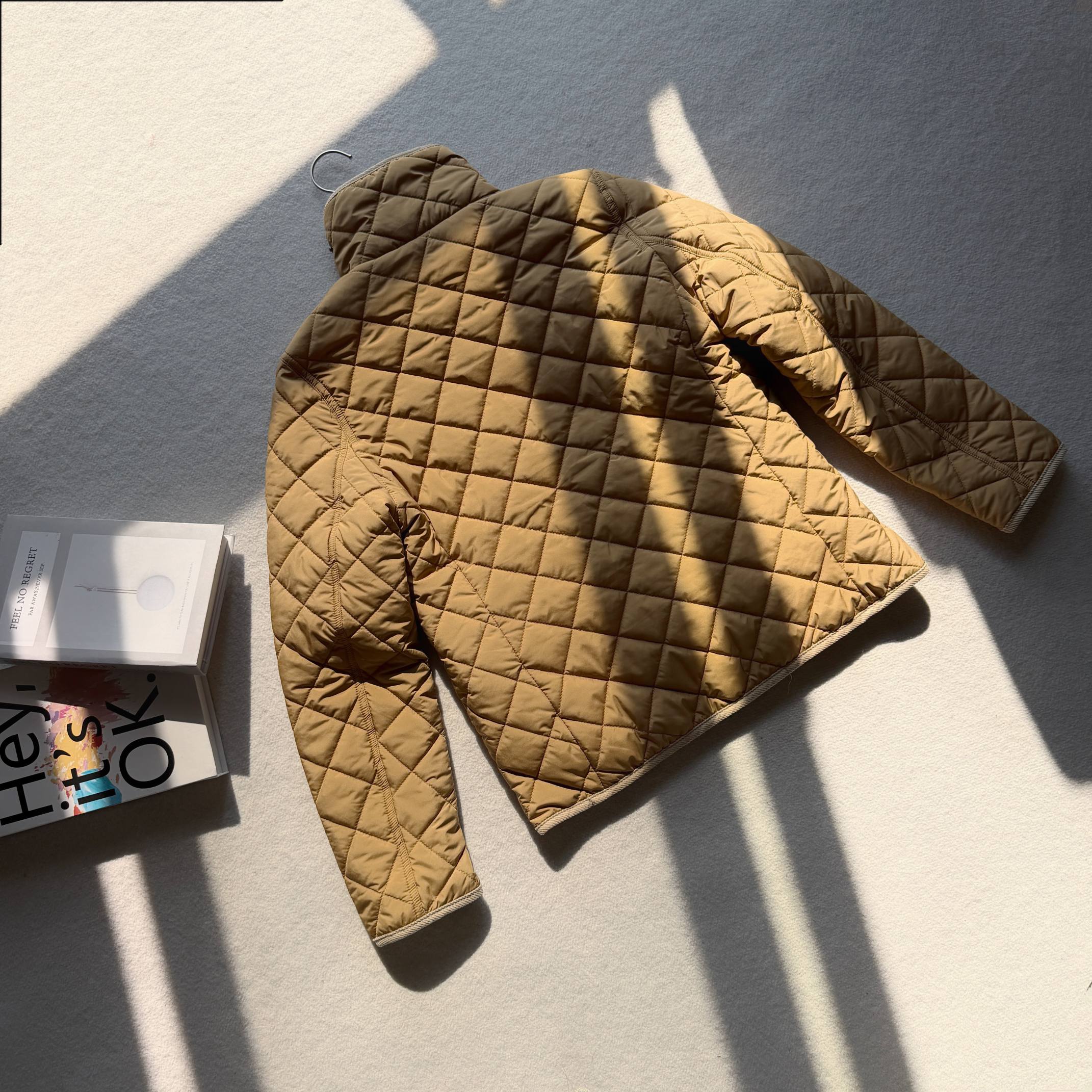 官网同步发售 经典菱格亨利领夹薄棉外套 简约不失格调 绣花机必须是进口的高密百灵达绣花机 在绣花前每一件裁片都是裁剪前做好了花位定位格裁剪 做绣花时做好了白线定位才能保证每一件衣服的绣花都是在格子的中间 版型大差不差 菱格纹理削弱了棉服的膨胀感让版型挺括立体
