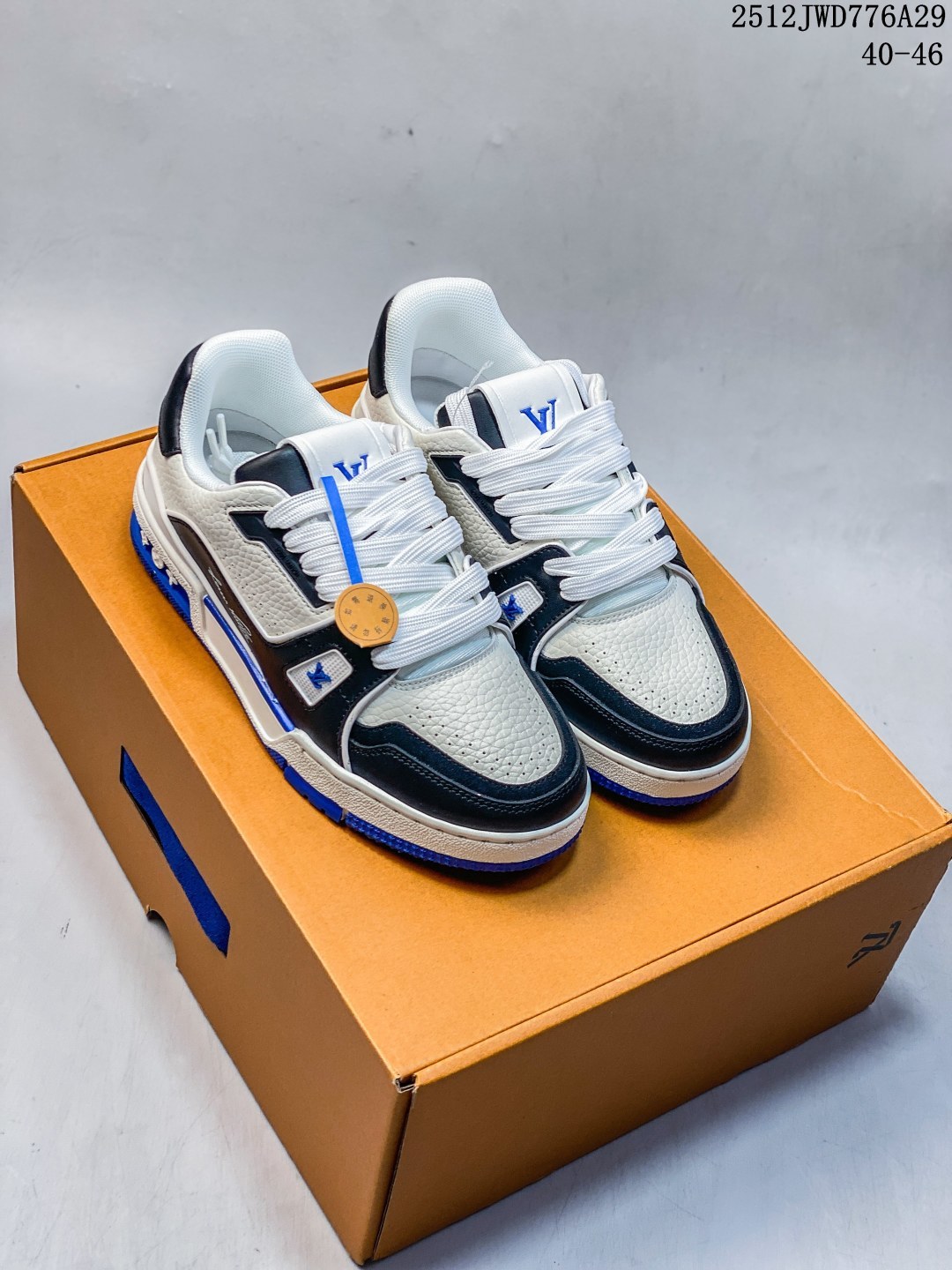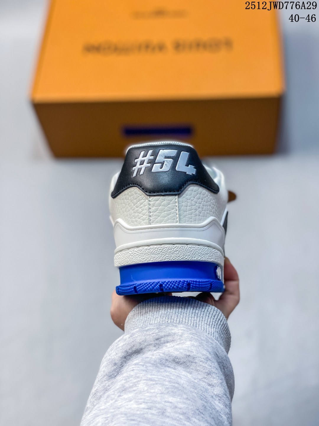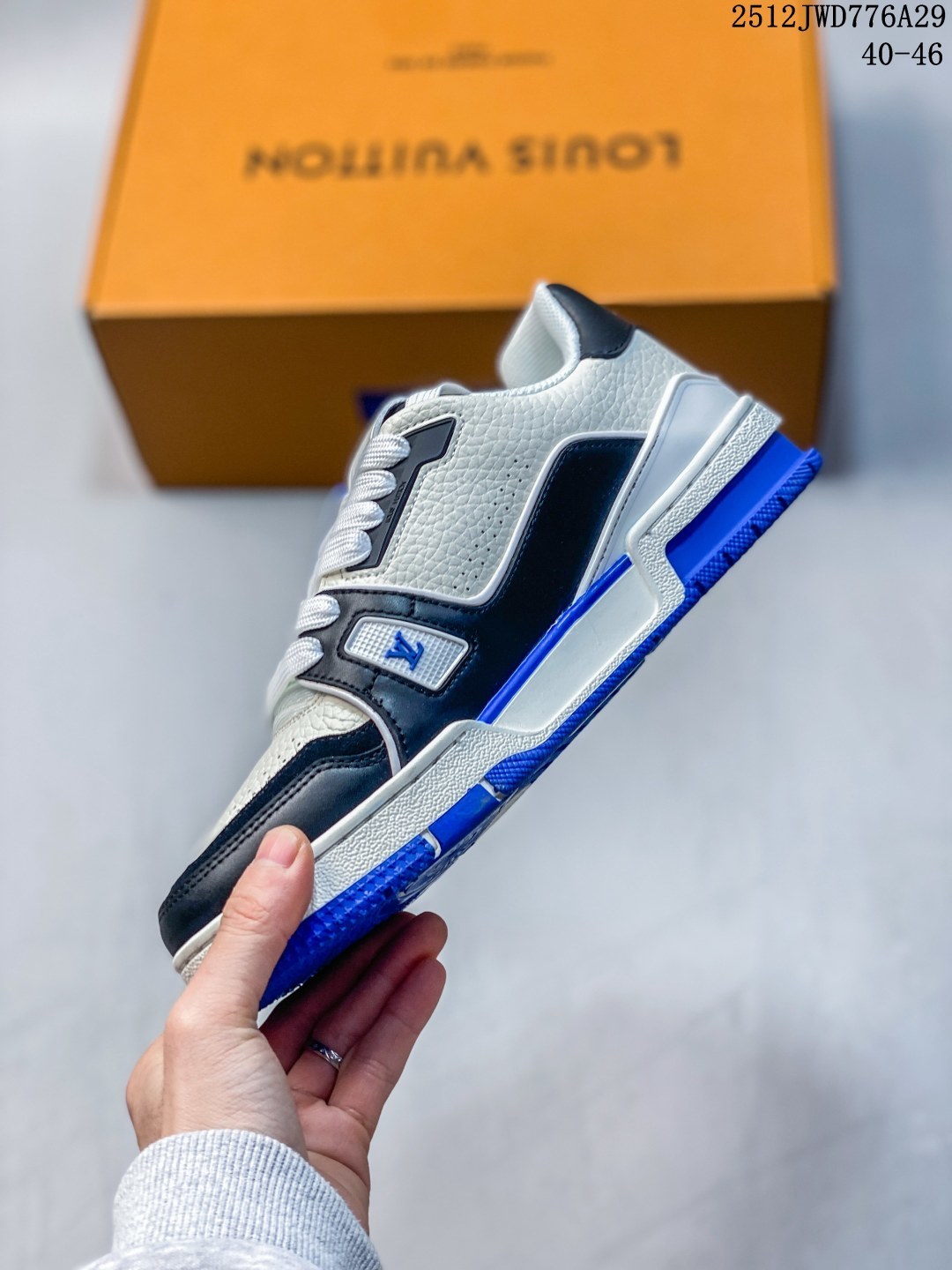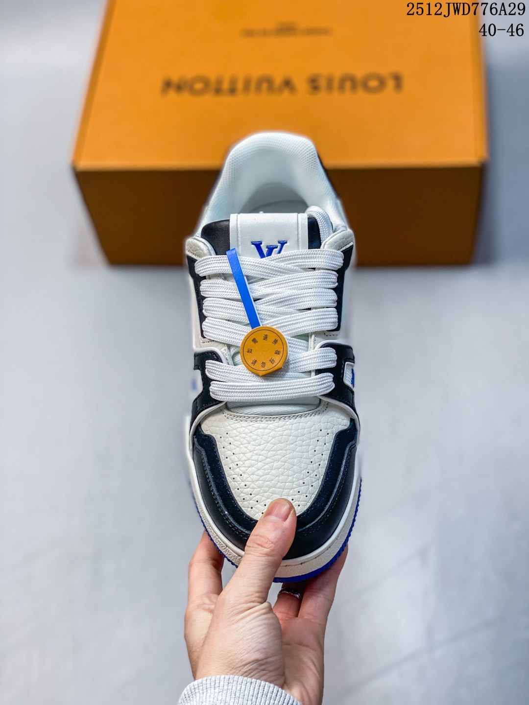 公司级 路易威登 Louis Vuitton LV路易威登板鞋 时尚运动鞋潮厚底增高男鞋 舒适防滑底和百搭性霸屏整个时尚娱乐圈 细节调整完美主义 采用柔软皮革拼接鞋面 独家开模大底 侧边采用3D打印标志性Logo 尽显贵族时尚气息 配带正品全套包装 全新LV路易威登Louis vuitton Trainer Sneaker Low 休闲运动文化百搭板鞋