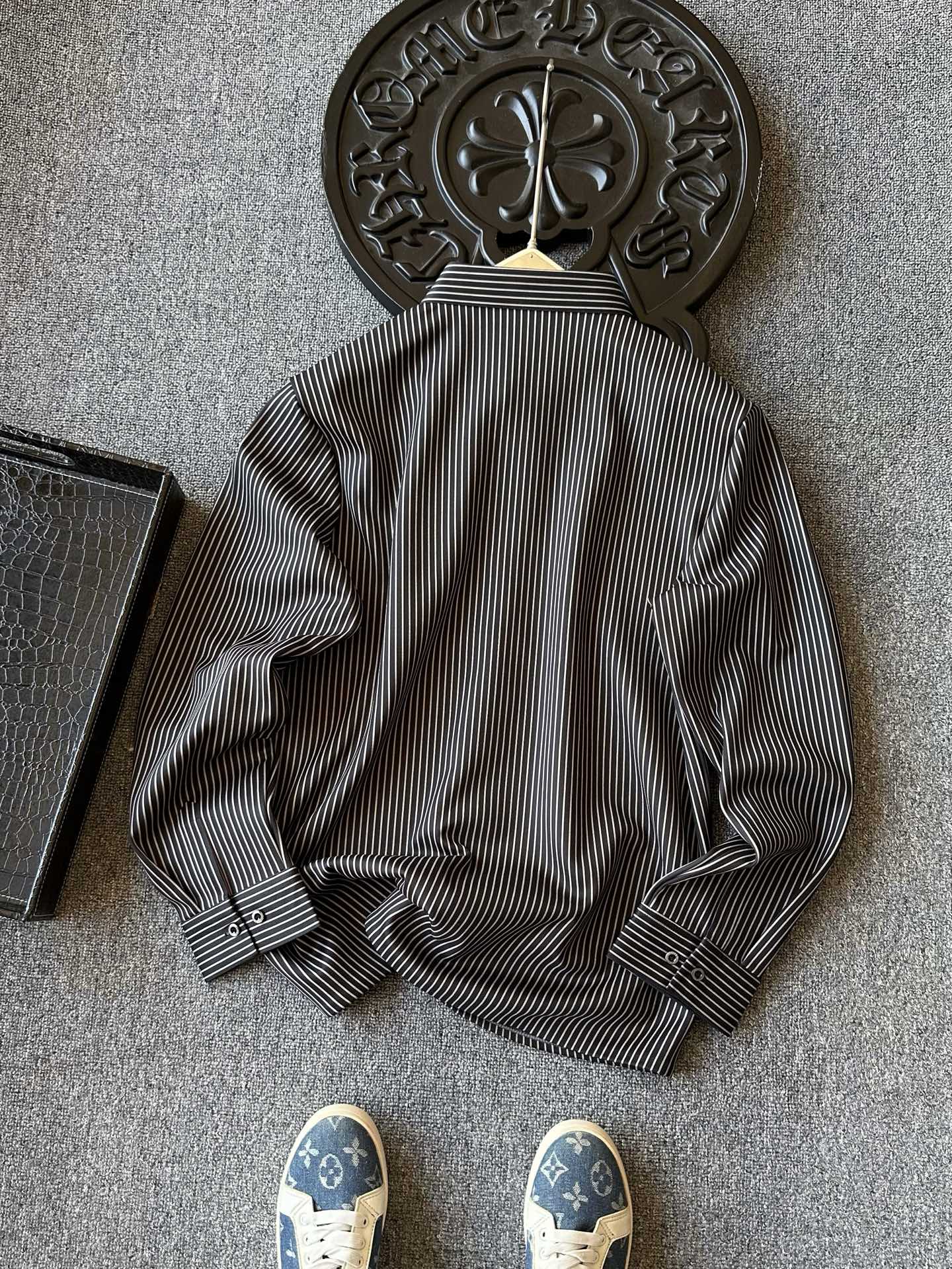 细节细节再细节 普拉达家商场新款条纹长袖加绒衬衫 精致都市商务休闲系列 胸前进口TPU激光雕刻Prada小仆人公文包logo 摸起来带有立体质感 十分精致 内里精湛做工 拼接处做了套结加固细节可圈可点