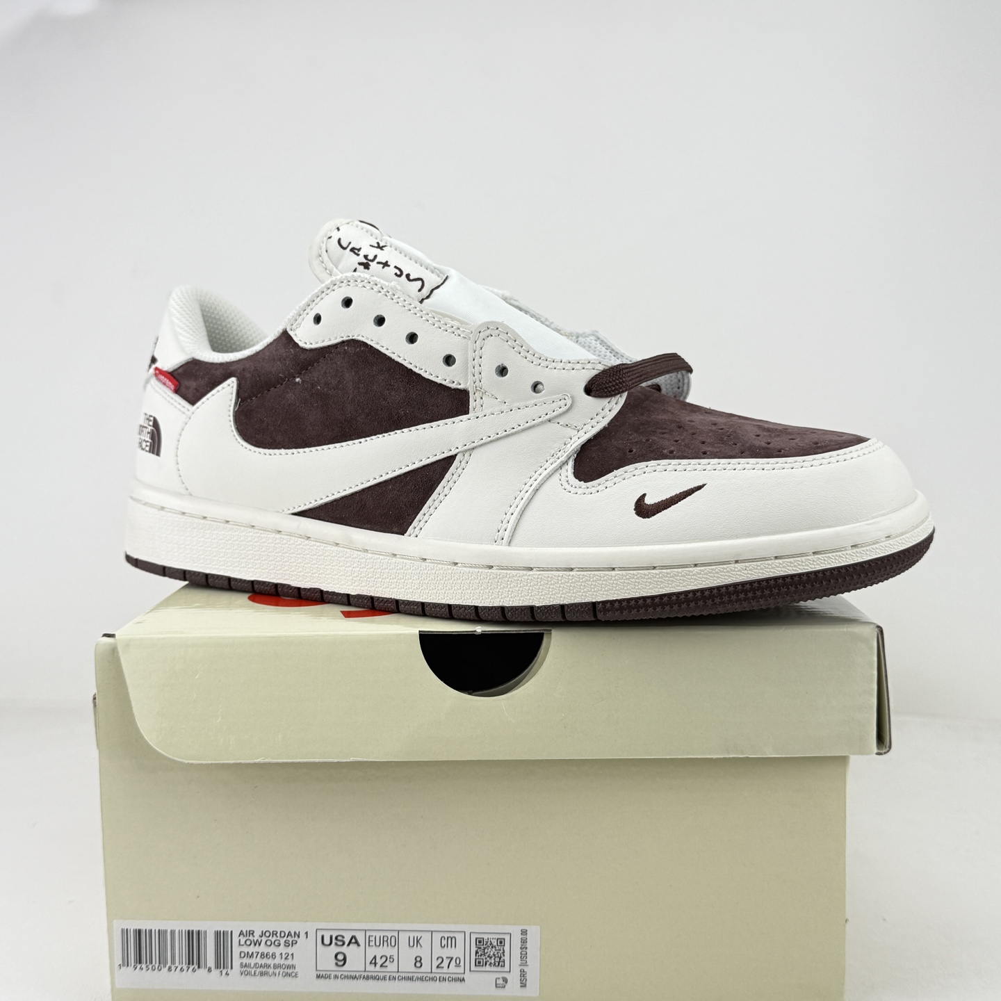 海外爆款限量发售 Travis Scott x Fragment Design x Jordan Air Jordan 1 Low OG SP 北面三方联名 米棕猪八革 多方联名合作融合了Travi灰勾s Scott 独特的音乐风格 藤原浩个性的设计风格以及Jordan品牌的经典元素 使其成为一双具有独特身份和价值的鞋子 清新而立体的外观加上联名标识更突出了其独特身份 这种配色方案显示出活力和时尚感 在视觉上引人注目 鞋身的质感和细腻的细节处理使其显得高端而格调十足 这款 倒钩 联名是设计与创意完美结合 融合多方的个性风格是一款备受瞩目的潮流鞋款 低帮休闲板鞋 定制鞋盒 大厂纯原品质出货 超高清洁度 皮料切割干净无任何毛边 细节完美
