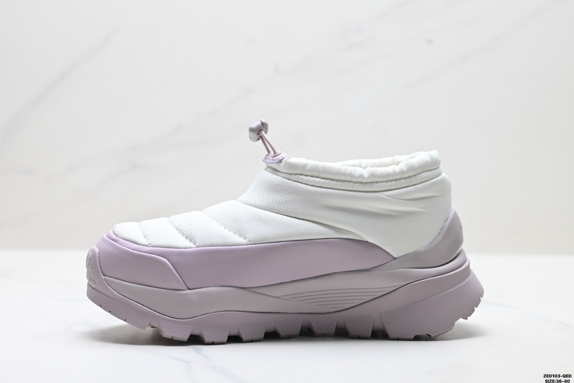 鞋口抽绳设计 不漏风 穿脱十分方便 高弹中底 外置米其林防滑大底 采用TPU模压定型鞋面材质 植入式羊毛里衬 包头式EVA轻翼科技 具有外底防滑耐磨性和良好的弹性
