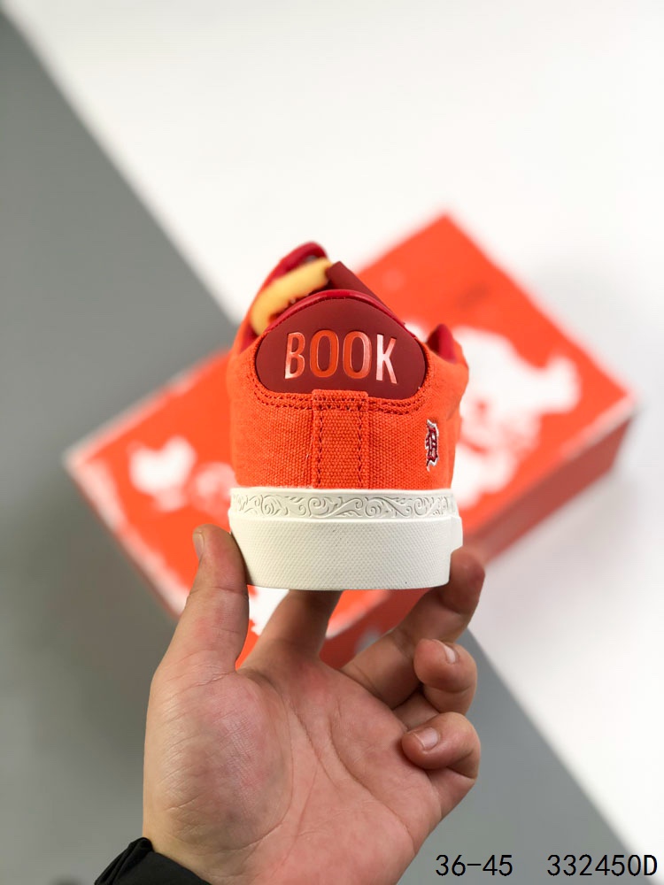 Nike Book 1所采用的工装风格帆布与斜纹布让鞋身具有更强的耐用性 而绒面皮革和贯穿前脚掌的真皮材质在强化鞋面的同时 还为穿着者带来舒适和无需适应的熟悉脚感 鞋跟处提拉环的灵感则来自书脊 Chapter One 字样的刺绣代表正在进行中的章节 也意味着Devin Booker的故事还在继续