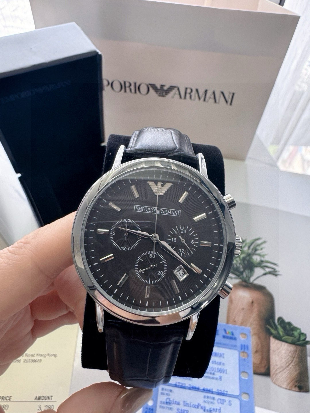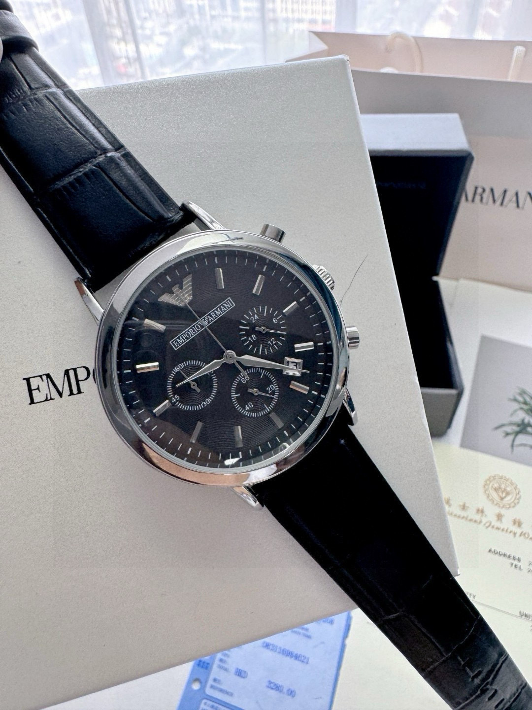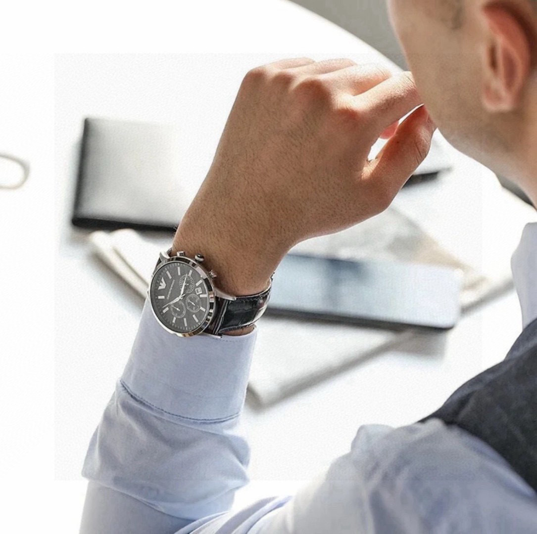 所见所得高品质阿玛尼皮带黑面男士手表Armani 阿玛尼经典休闲商务款 男士皮带手表 黑色表盘 三眼设计 小牛皮表带石英表 表盘直径42mm 矿物质玻璃镜面 清晰高透 设计超级精致 表盘表带都十分简约大气 整个气质马上不一样了 小红书剁手款 男神钟爱款 上班不失风度 体现男性硬朗之风和成熟稳重的气质 休闲商务不二之选 无佩戴支持退换 配专柜全套包装