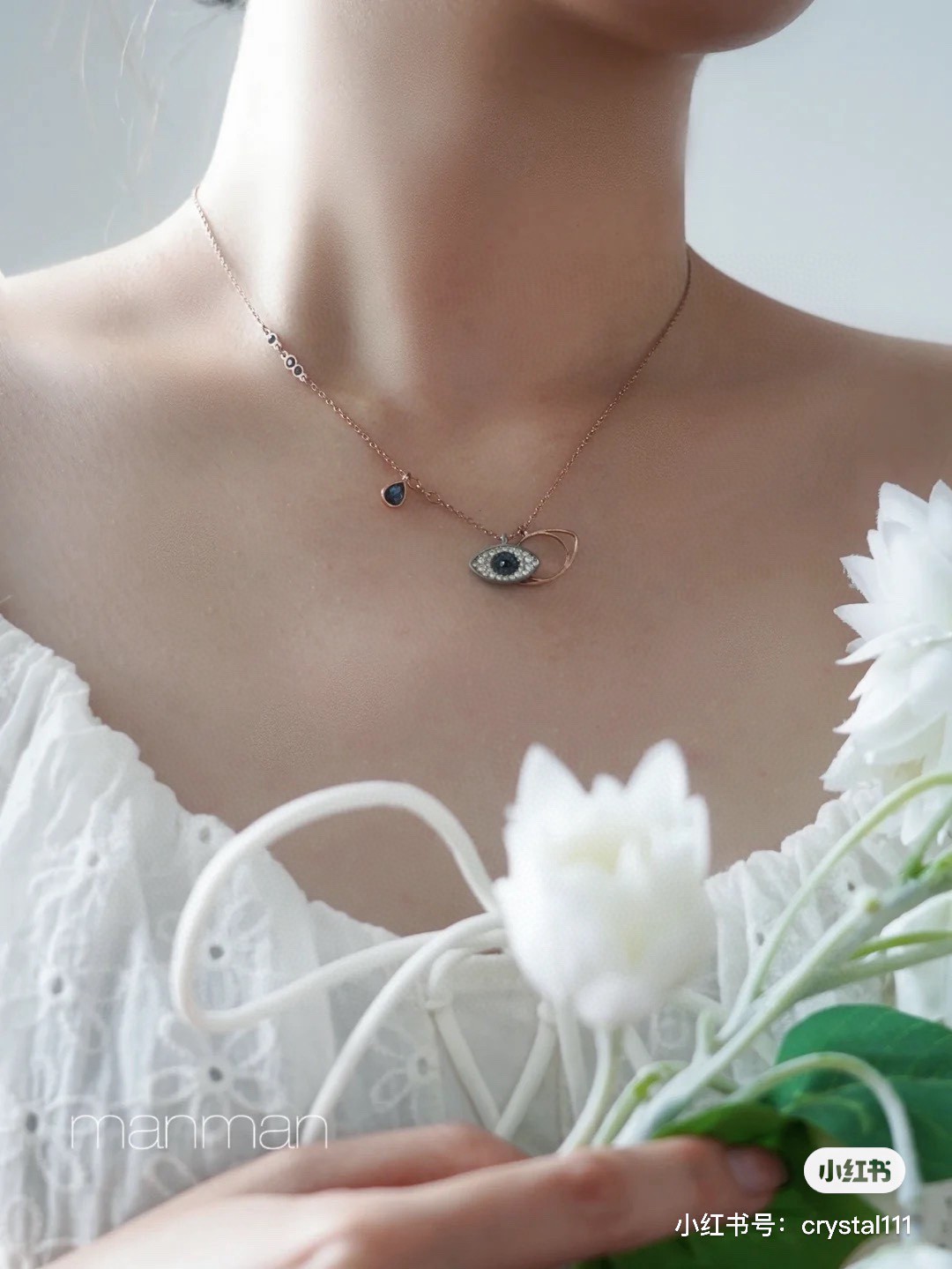 蓝色即如神秘的大海 又如奇幻的天空 随着光线折射出不一样的色彩 是大海送给小美人鱼的礼物吗 米兰达可儿的眼睛设计 寓意很美 代表所有的坏运气 恶魔之眼都能帮你带走 会给你带来好运气 Miranda Kerr 米兰达 可儿 与施华洛跨界联合设计 实现时尚与激情的碰撞 这款融入多种镀层的 Duo Evil Eye惊艳项链 以镀玫瑰金色金属 密镶仿水晶和蓝色仿水晶 营造瞩目耀眼的对比效果 除带有两枚眼睛装饰和一颗蓝色水滴形仿水晶外 此项链更融入了方便调校尺寸的搭扣 让佩戴时更舒适贴合 展现您时尚迷人的风采 这款融入多种镀层的Duo Evil Eye链坠 可为装扮增添神秘魅力 此链坠有两枚分别密镶蓝色 黑色和透明仿水晶 及以镀玫瑰金色金属打造的眼睛装饰 并搭配一条带有深蓝色仿水晶的镀玫瑰金色饰链 随附一条饰链 带上它尽显风情 让你在每个场合更添优雅 链长 45CM可调节 颜色 玫瑰金 银色 材质 仿水晶 多种金属润饰 系列 Swarovski Symbolic