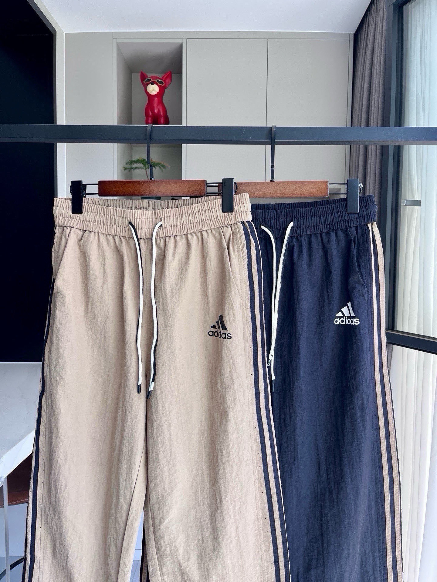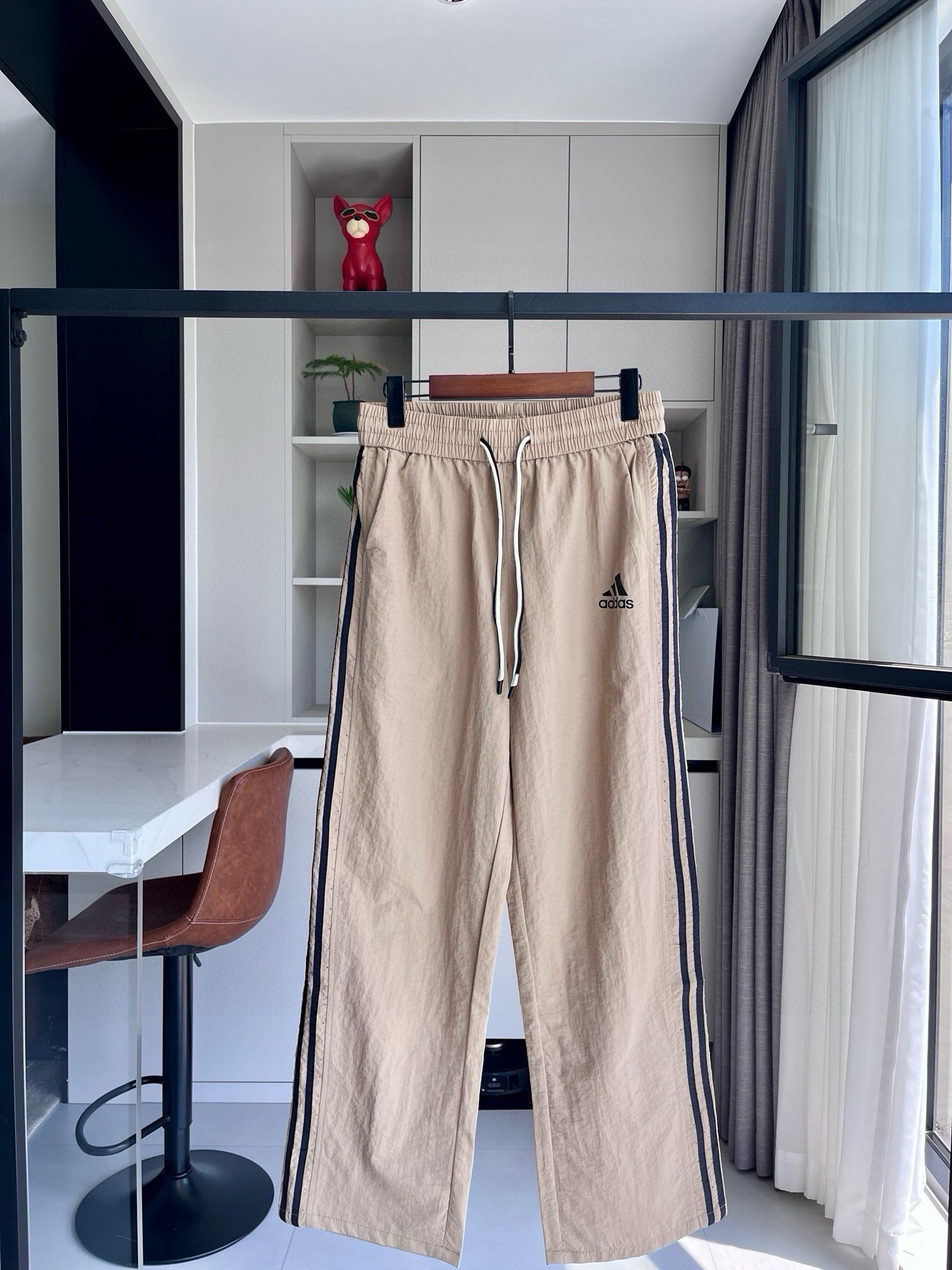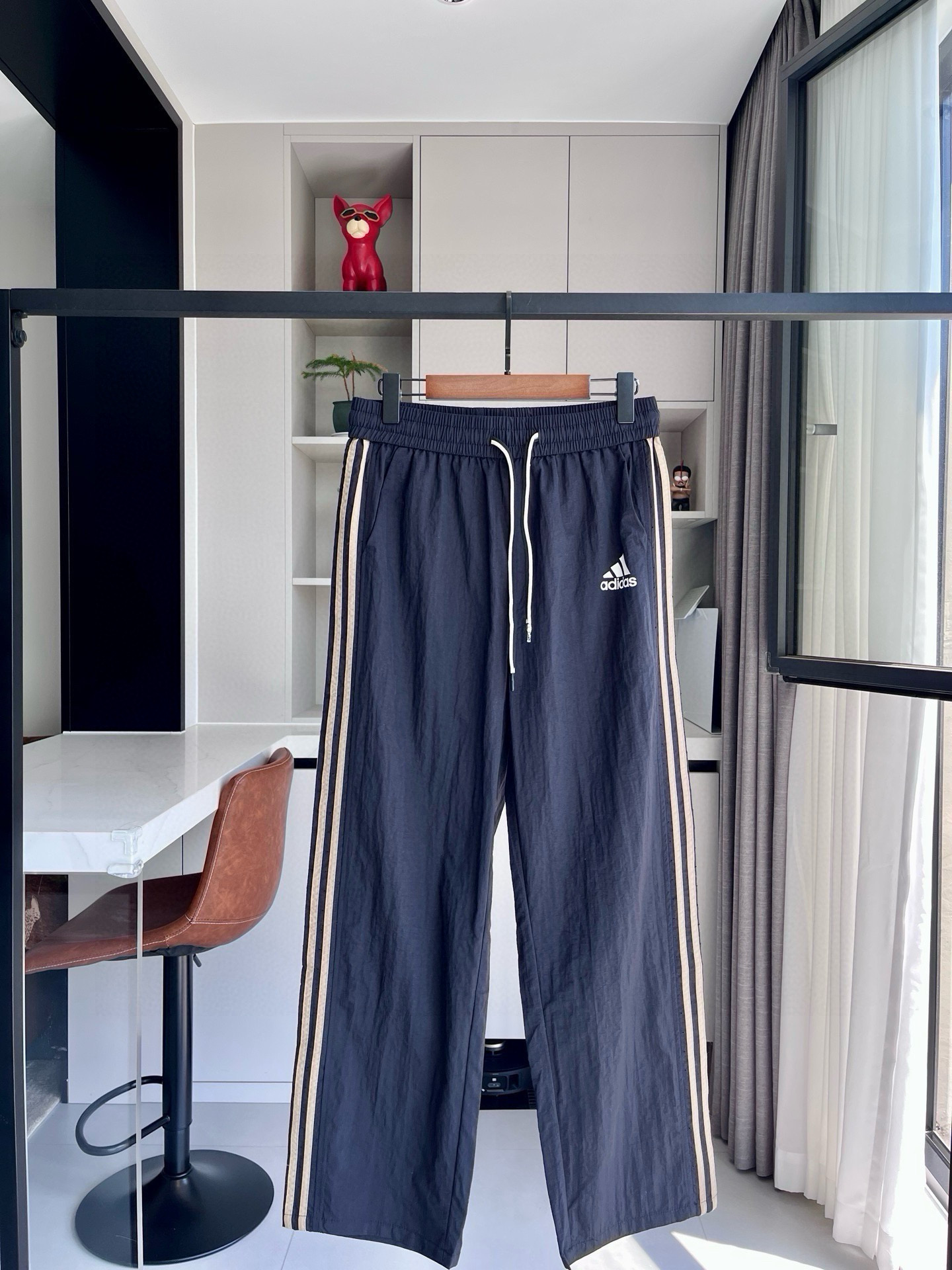 阿迪三条杠运动直筒裤