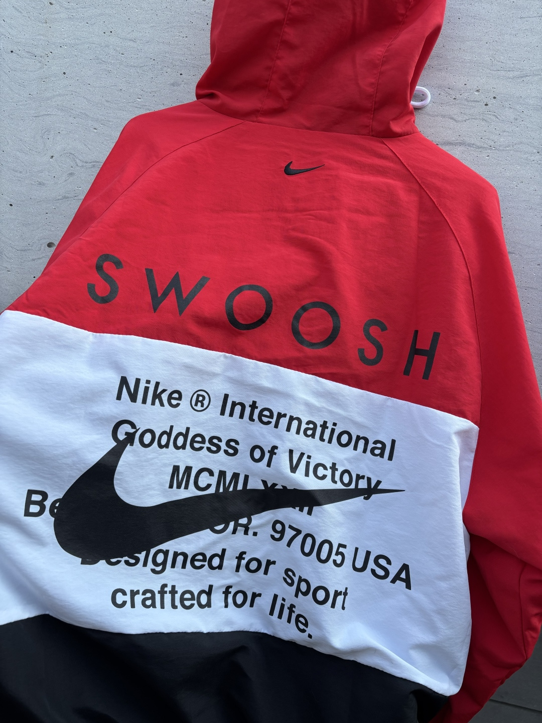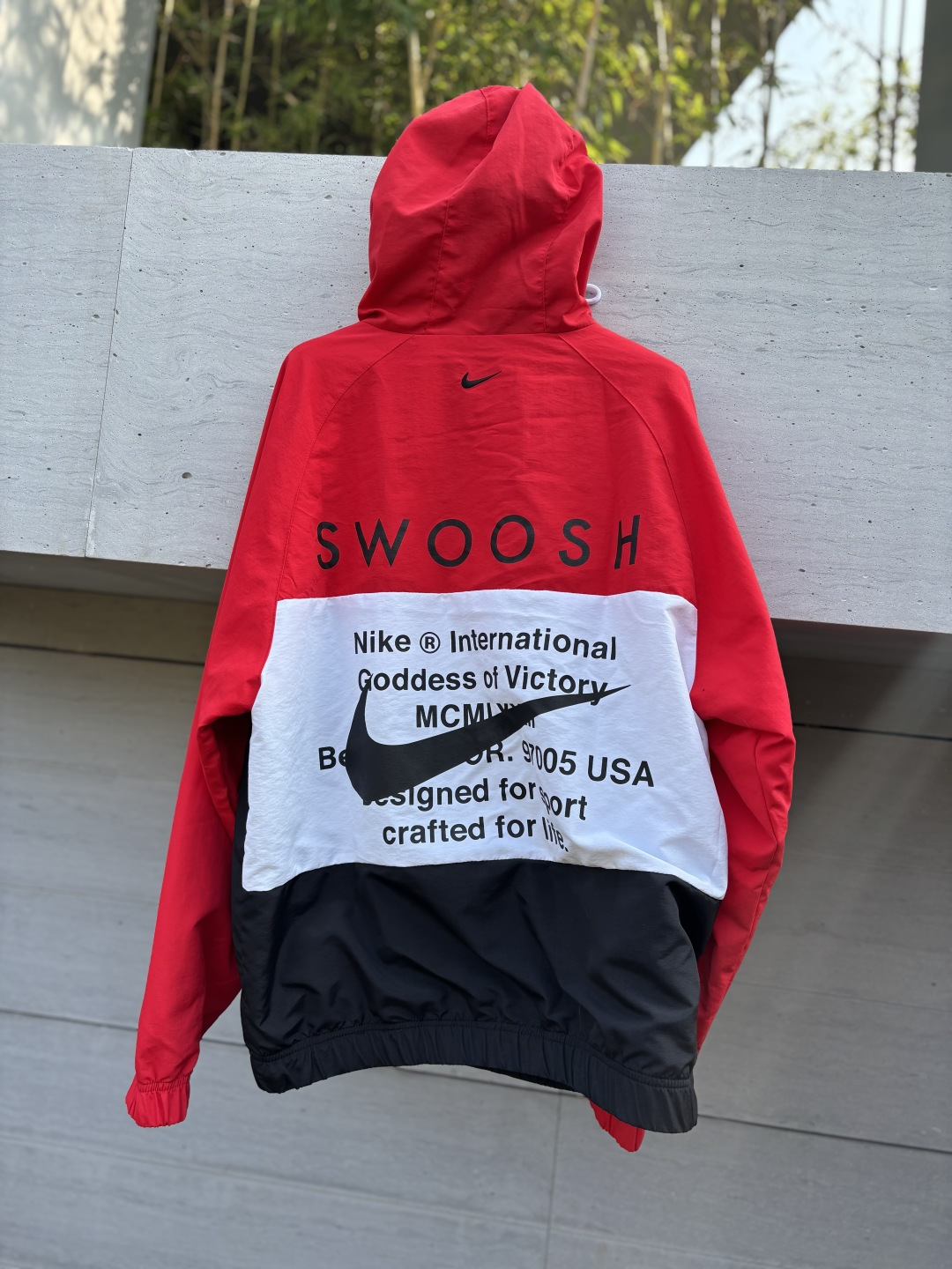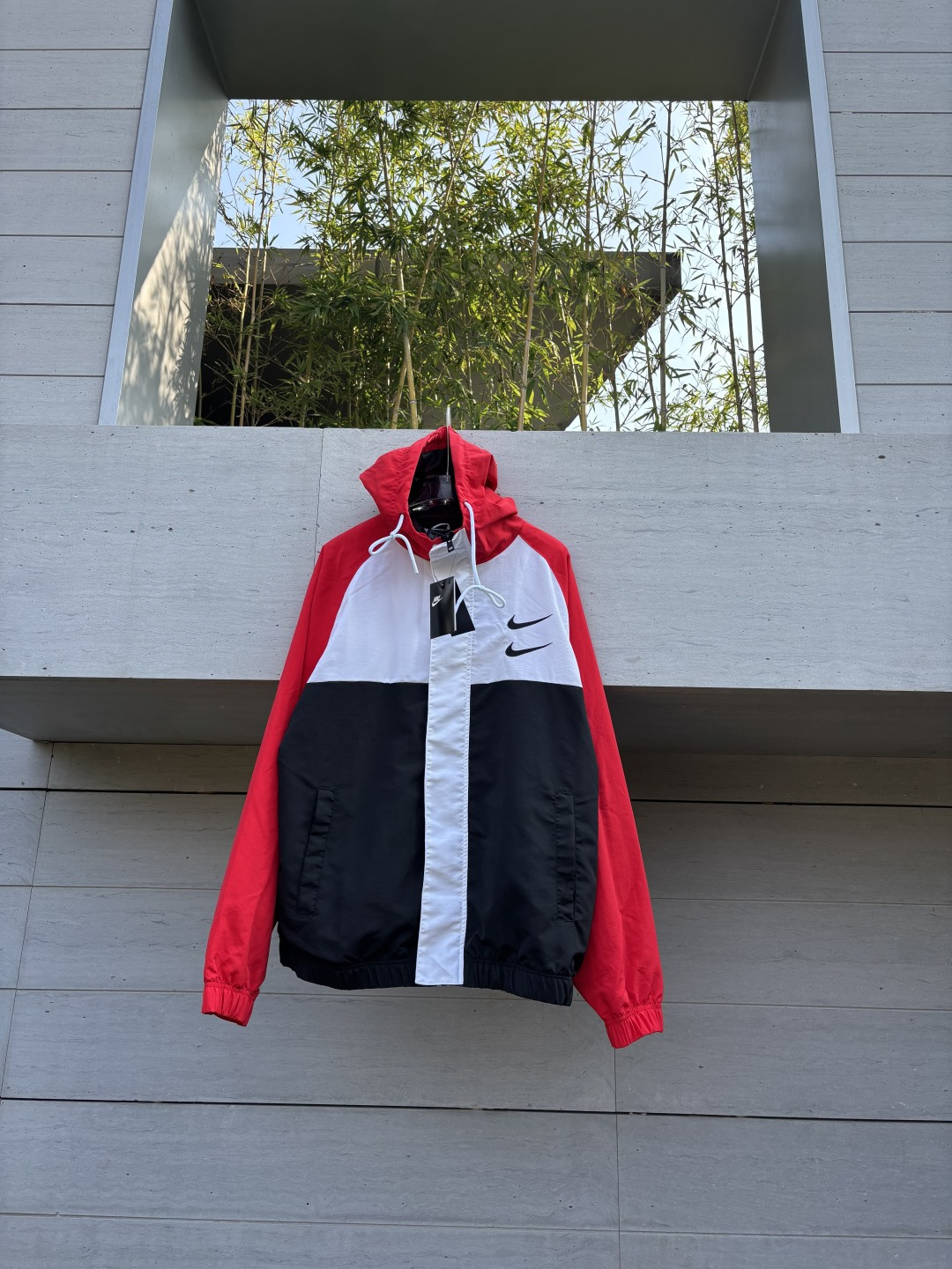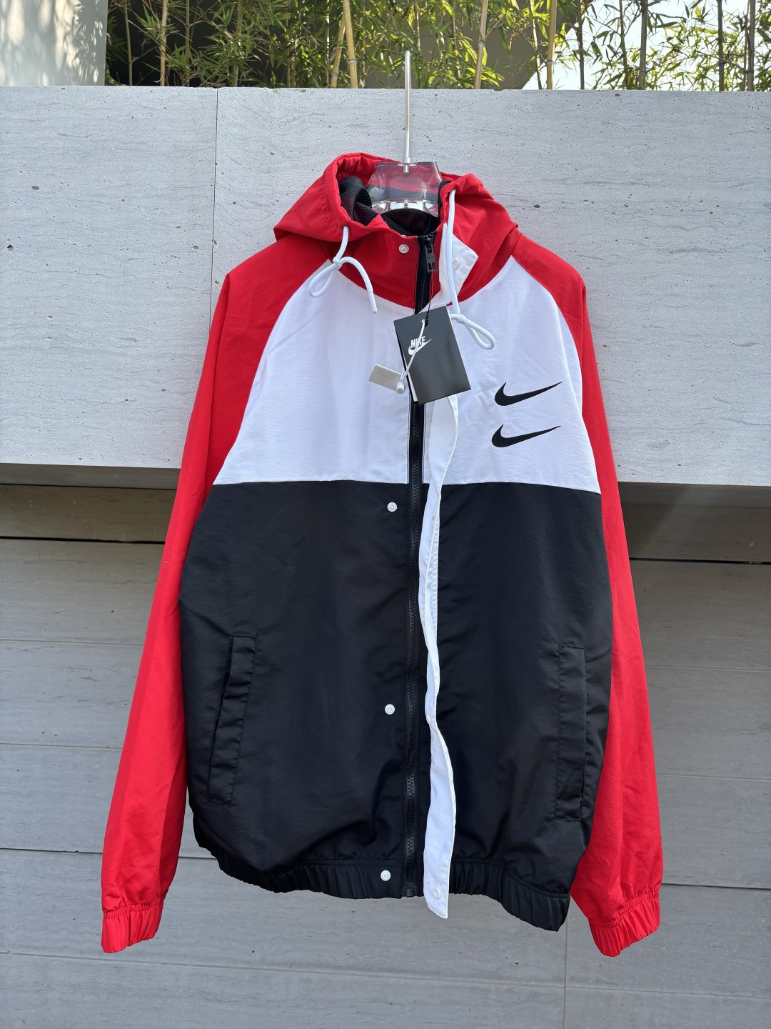 𝗡𝗞双勾𝗕𝗜𝗚 𝗦𝗪𝗢𝗢𝗦𝗛拉链款夹克黑红 春秋潮牌运动风衣情侣大LOGO薄款休闲连帽刺绣透气拼接外套 实用的一款打球必备外套 此款无论是版型 还是面料都绝对无可挑剔的